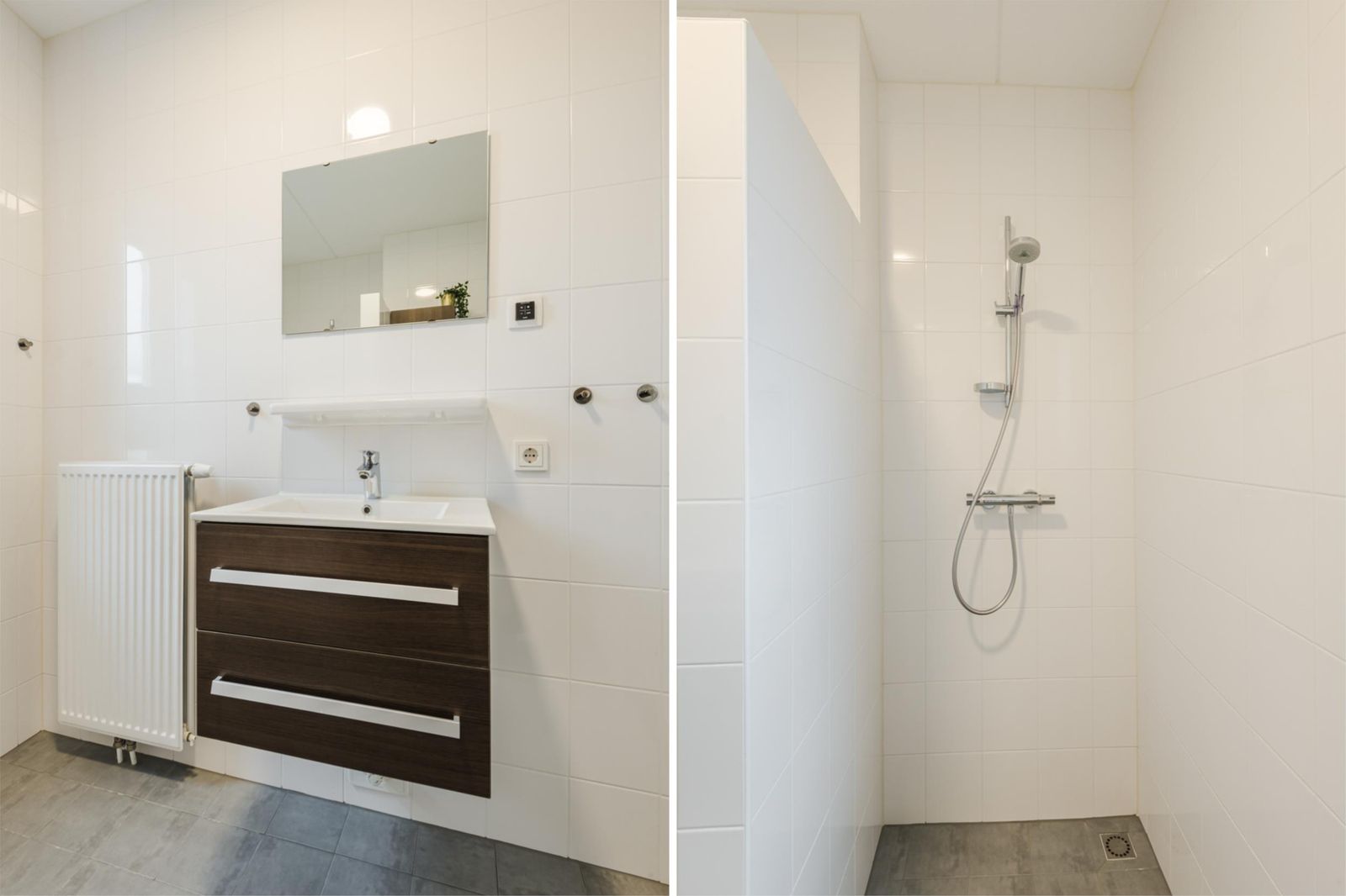 Overloop, 3 mooie slaapkamers, fraaie badkamer betegeld tot het plafond met inloopdouche, 2e toilet en een luxe wastafelmeubel.