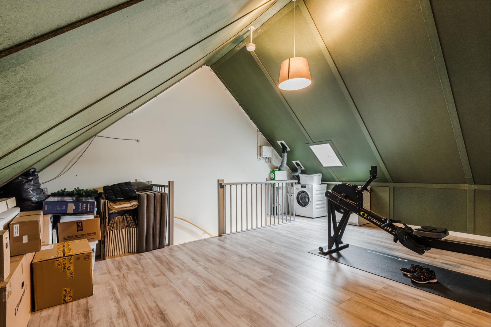 Vaste trap naar zolder met aansluiting voor de wasmachine. Hier kunt u door een scheidingsmuur en dakraam te plaatsen een 4e slaapkamer creëren. Ook hier ligt een mooie laminaatvloer.