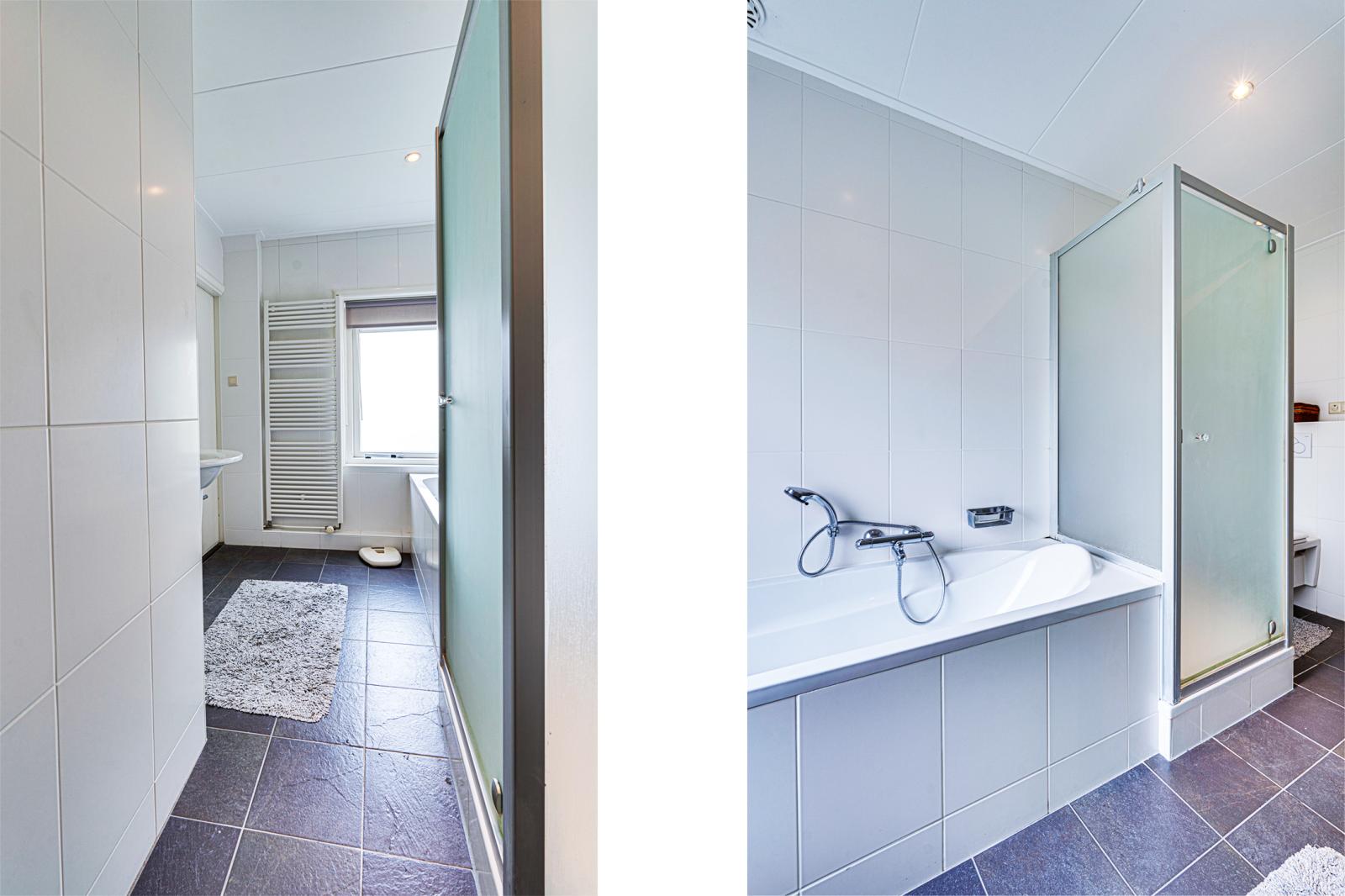 De badkamer die tussen deze twee slaapkamers ligt is zowel vanaf de overloop als vanuit slaapkamer 2 toegankelijk. Je beschikt hier over een ligbad, douche, toilet en wastafel.