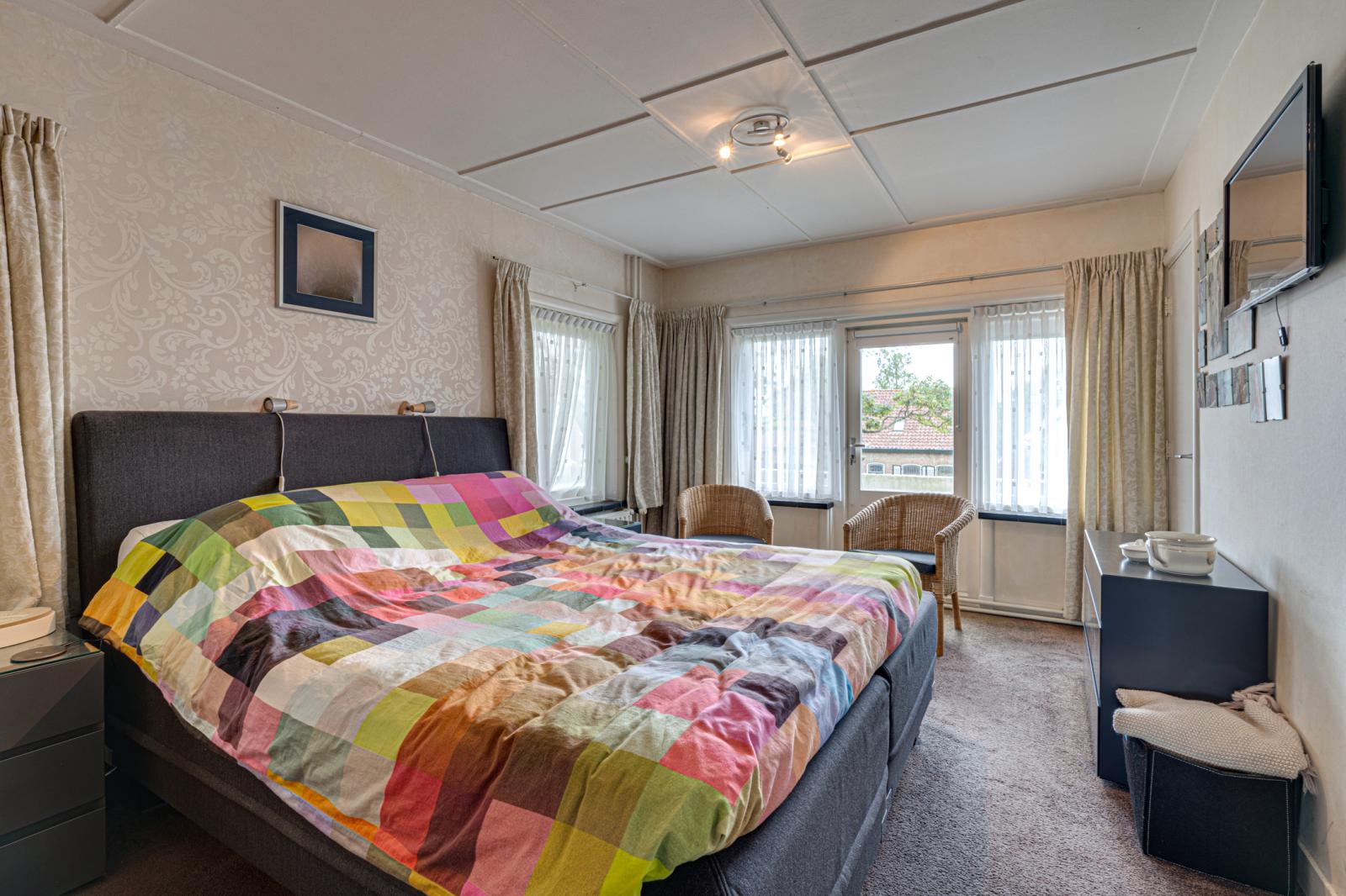 Slaapkamer 1 is ca. 14 m2 en beschikt over een balkon aan de zijkant van het huis.