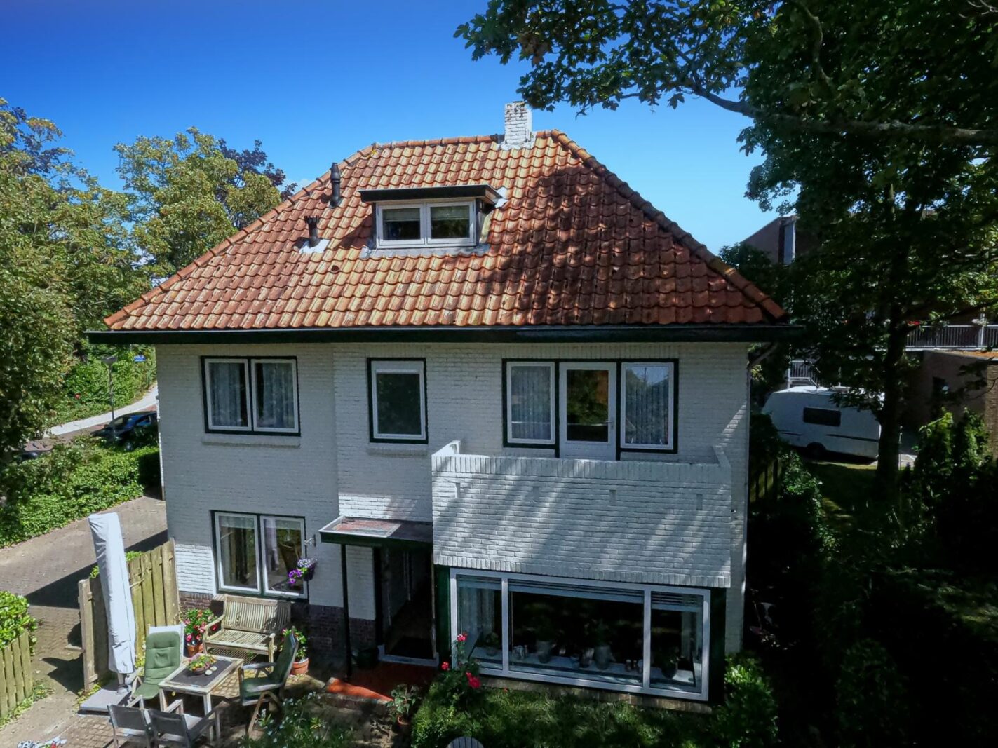 Rondom de woning is veel ruimte voor het parkeren van meerdere auto's op eigen terrein.