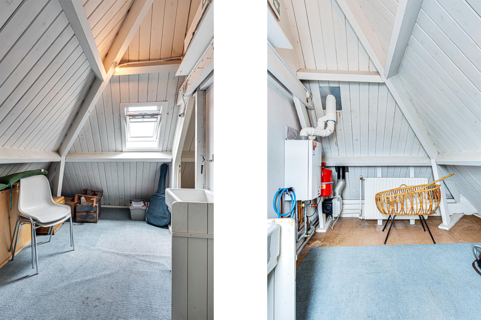 De zolderverdieping is met een vaste trap bereikbaar.
