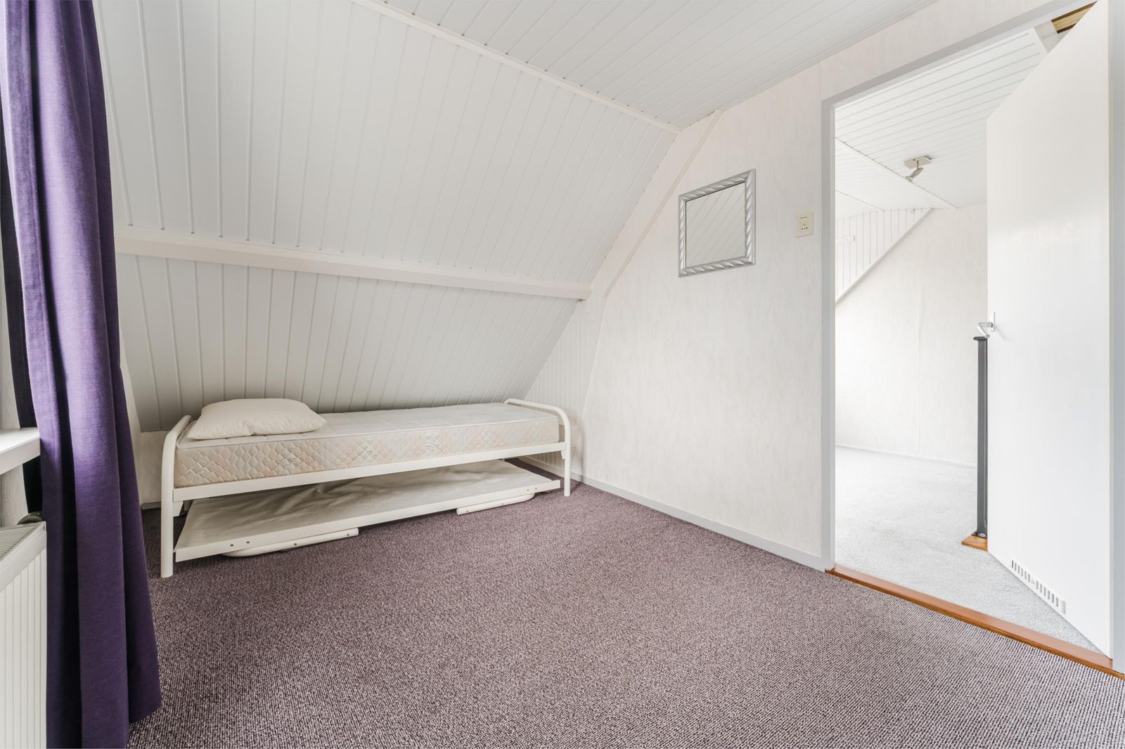 Tweede verdieping: vliering/zolder over hele lengte van bovenverdieping (voor opslag, extra kinderkamer of uitbreidingsmogelijkheid voor kamers eerste verdieping).