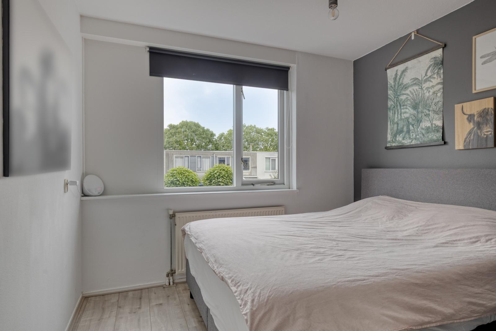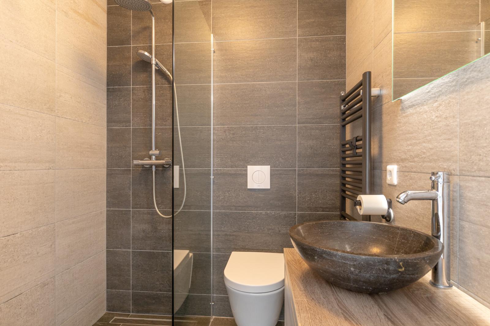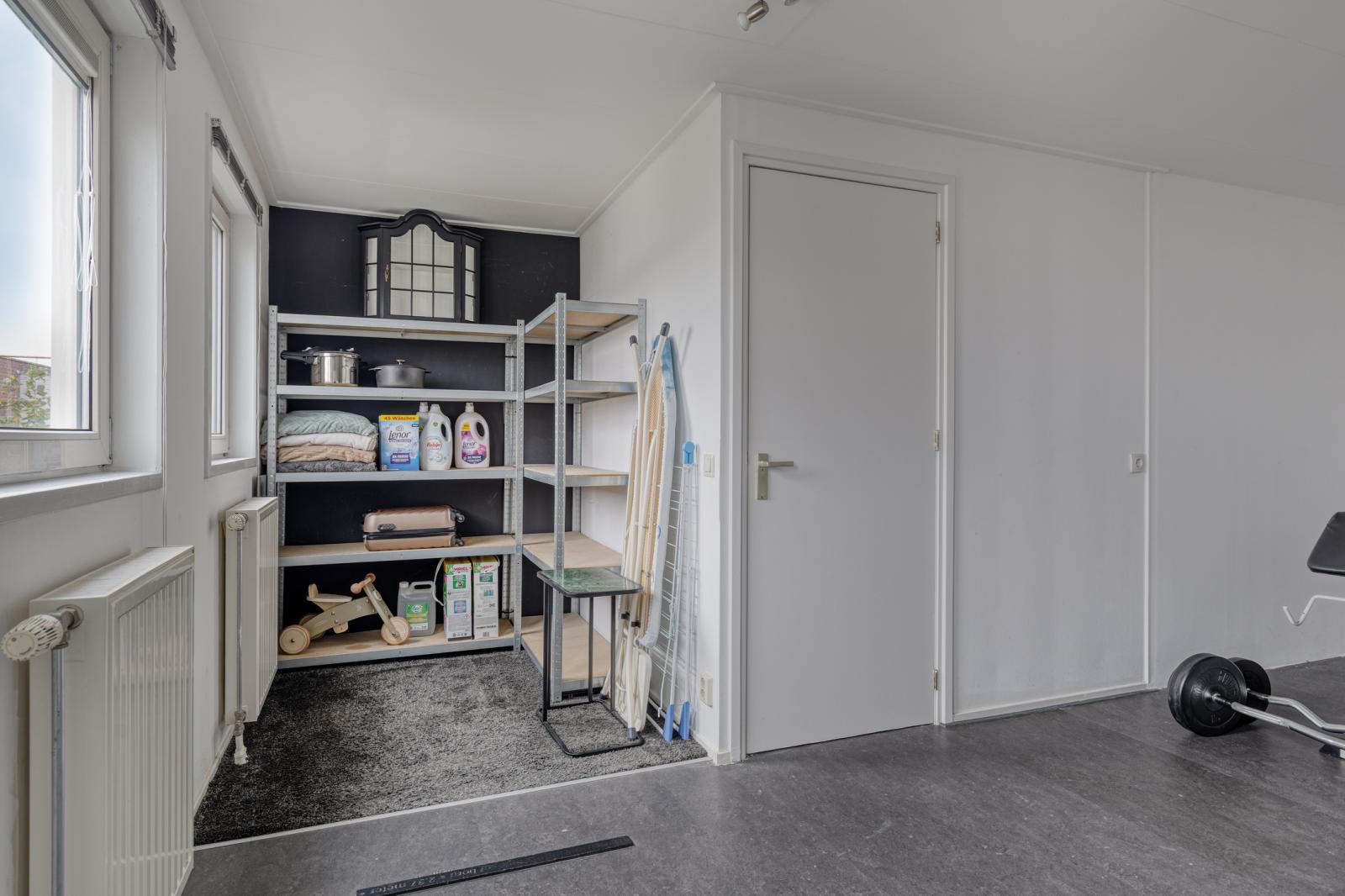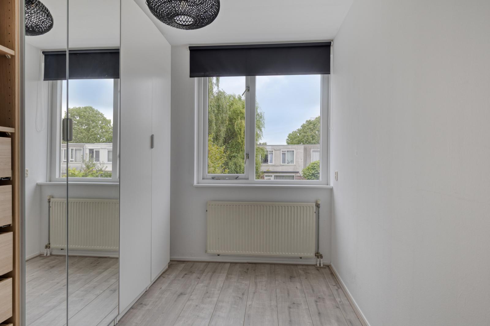 Eerste verdieping: overloop met vaste trap naar de tweede verdieping. Aan de voorzijde van de woning een slaapkamer van ca. 17 m². Een moderne badkamer voorzien van inloopdouche, wastafel(meubel) en toilet. Aan de achterzijde twee slaapkamers respectievelijk ca. 6,8 m² en ca. 9 m². Tevens is er nog een handige ruimte voor de wasmachine en de droger, hier bevindt zich ook de CV-ketel (2021).