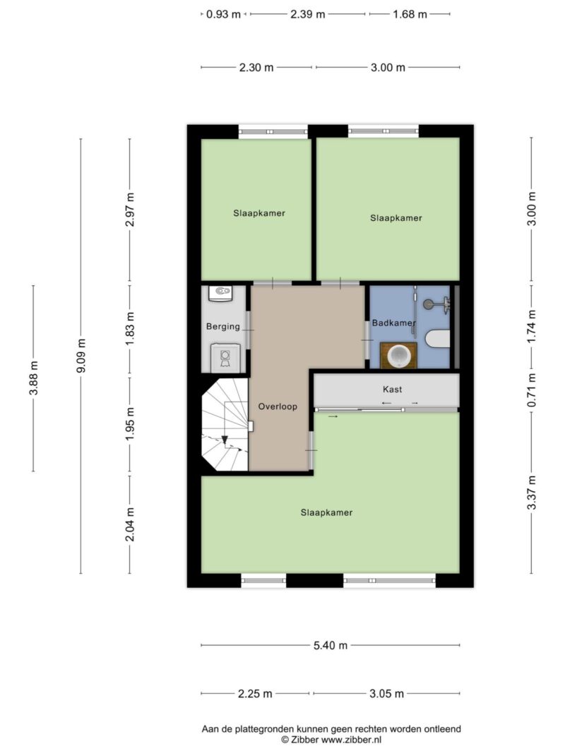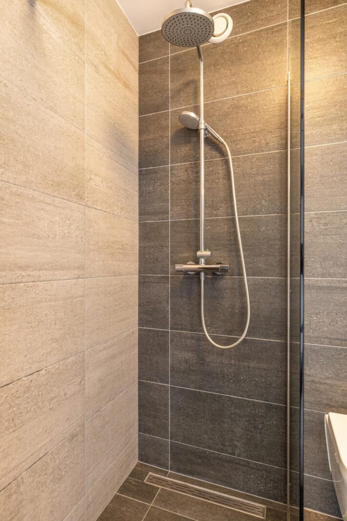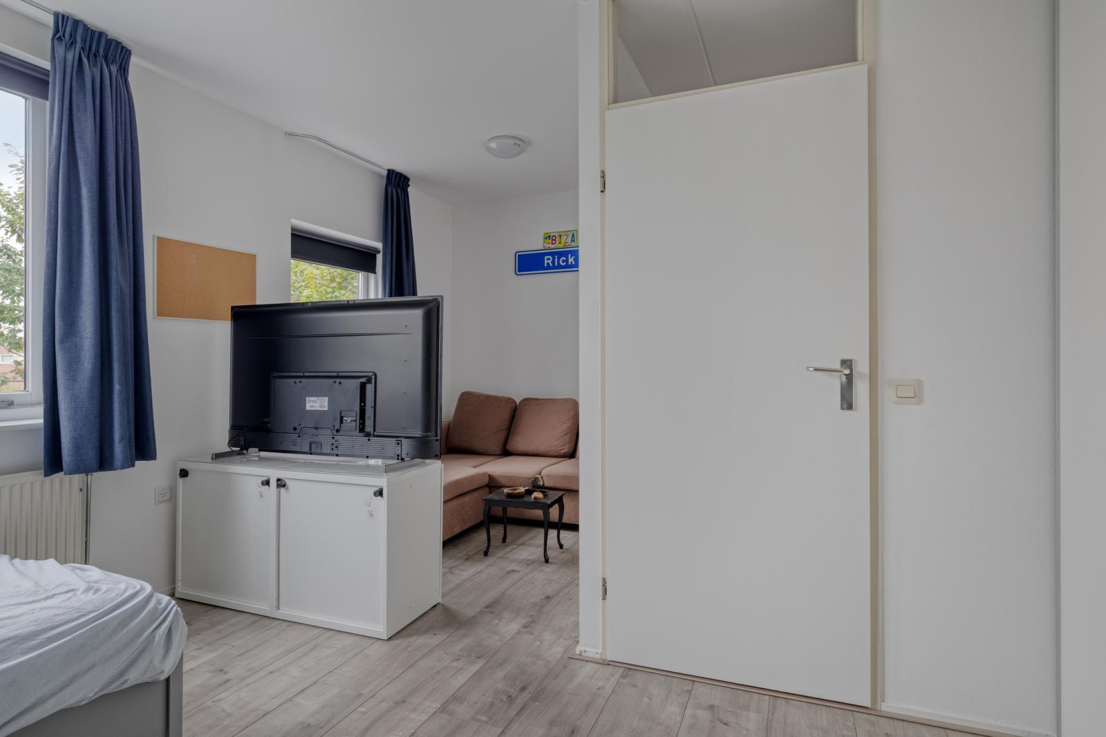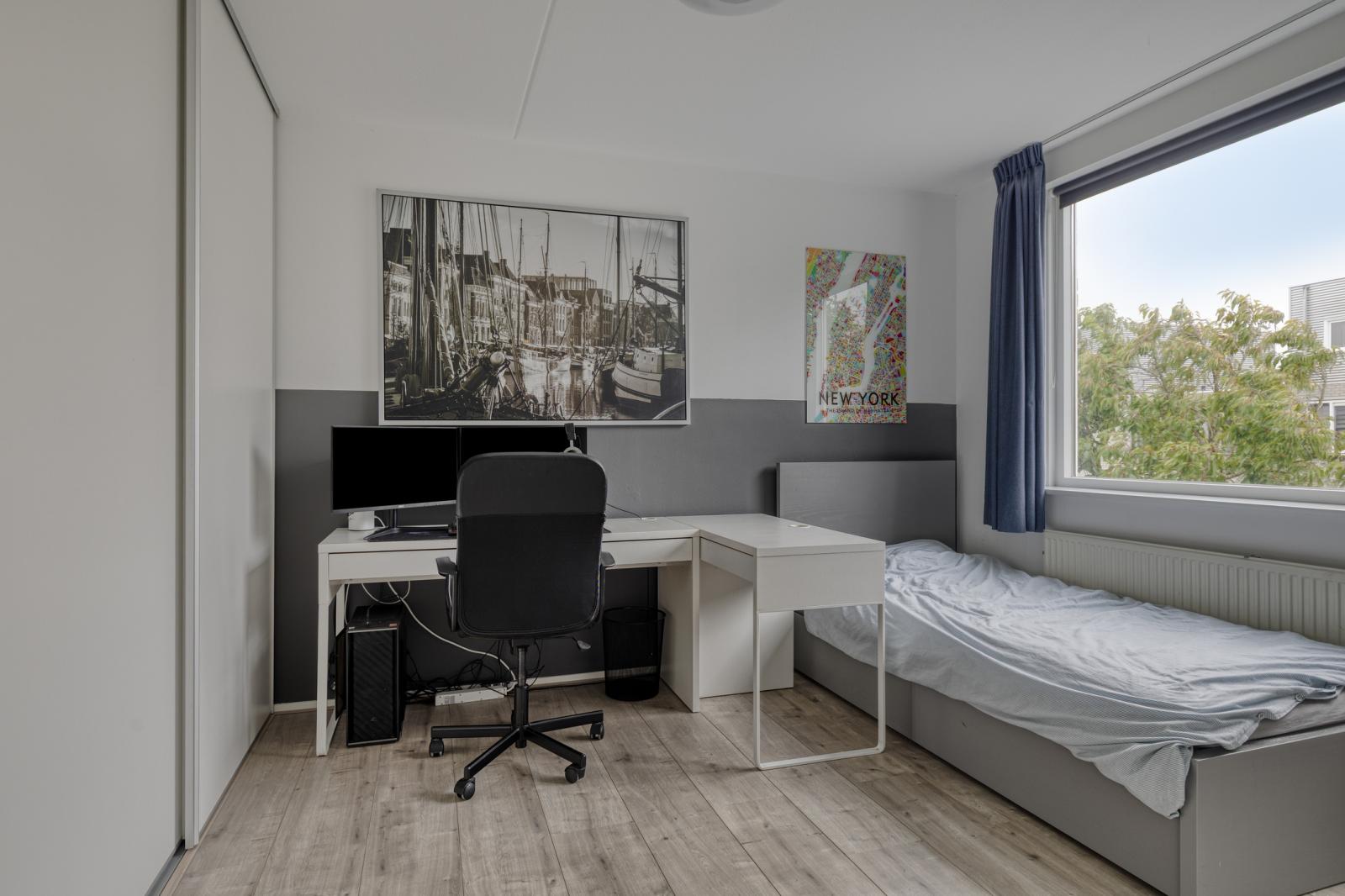 Eerste verdieping: overloop met vaste trap naar de tweede verdieping. Aan de voorzijde van de woning een slaapkamer van ca. 17 m². Een moderne badkamer voorzien van inloopdouche, wastafel(meubel) en toilet. Aan de achterzijde twee slaapkamers respectievelijk ca. 6,8 m² en ca. 9 m². Tevens is er nog een handige ruimte voor de wasmachine en de droger, hier bevindt zich ook de CV-ketel (2021).