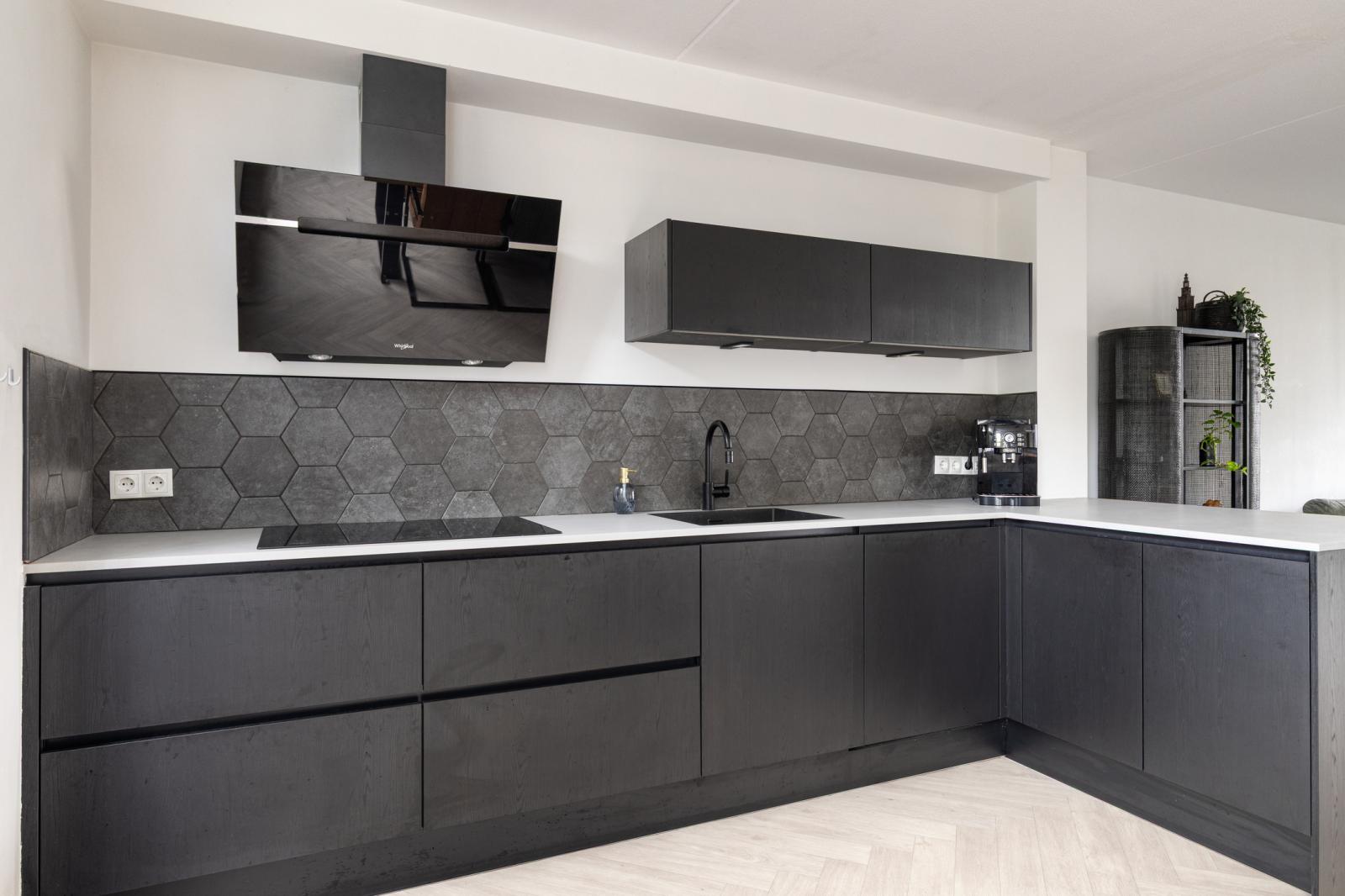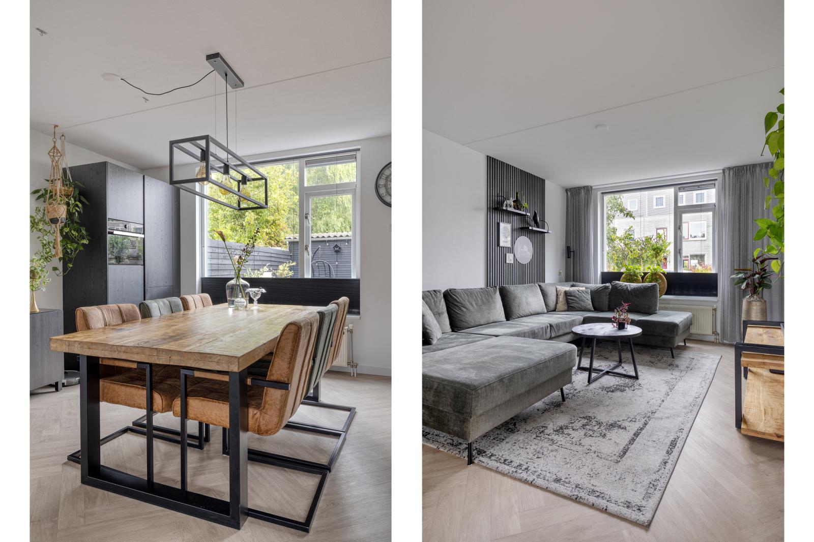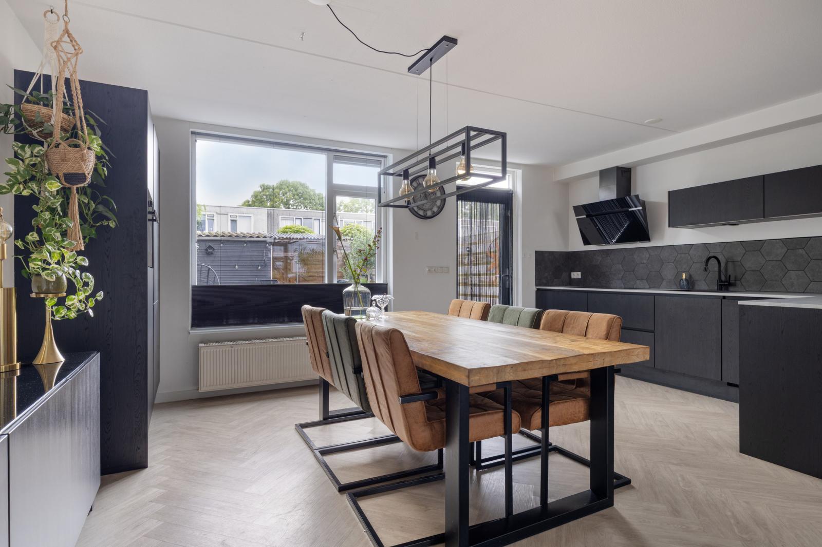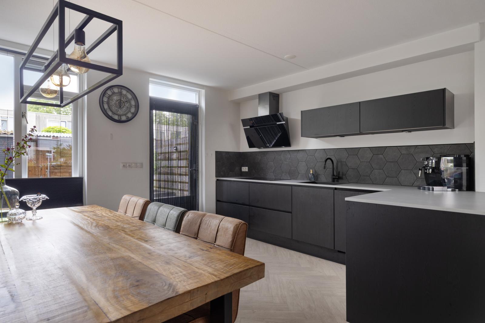 Begane grond: entree/hal met meterkast, toilet en trap naar de eerste verdieping. De ruime en sfeervolle woonkamer met open keuken heeft veel lichtinval. De open keuken is in 2021 geplaatst en is zeer compleet uitgerust en beschikt over diverse inbouwapparatuur, zoals vaatwasser, inductiekooplaat, afzuigkap, vriezer, combi-oven, een zeer grote koelkast en een elektrische boiler. Vanuit de keuken bereik je de achtertuin gelegen op het noordwesten. Woonkamer en open keuken zijn gezamenlijk ca. 41 m².