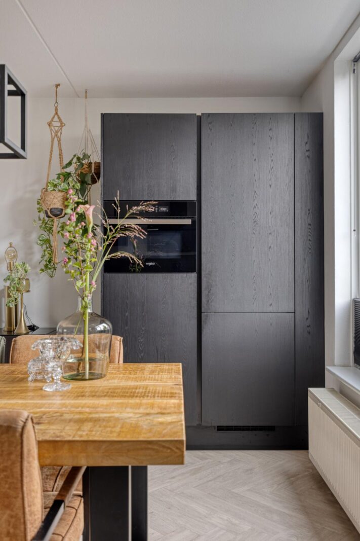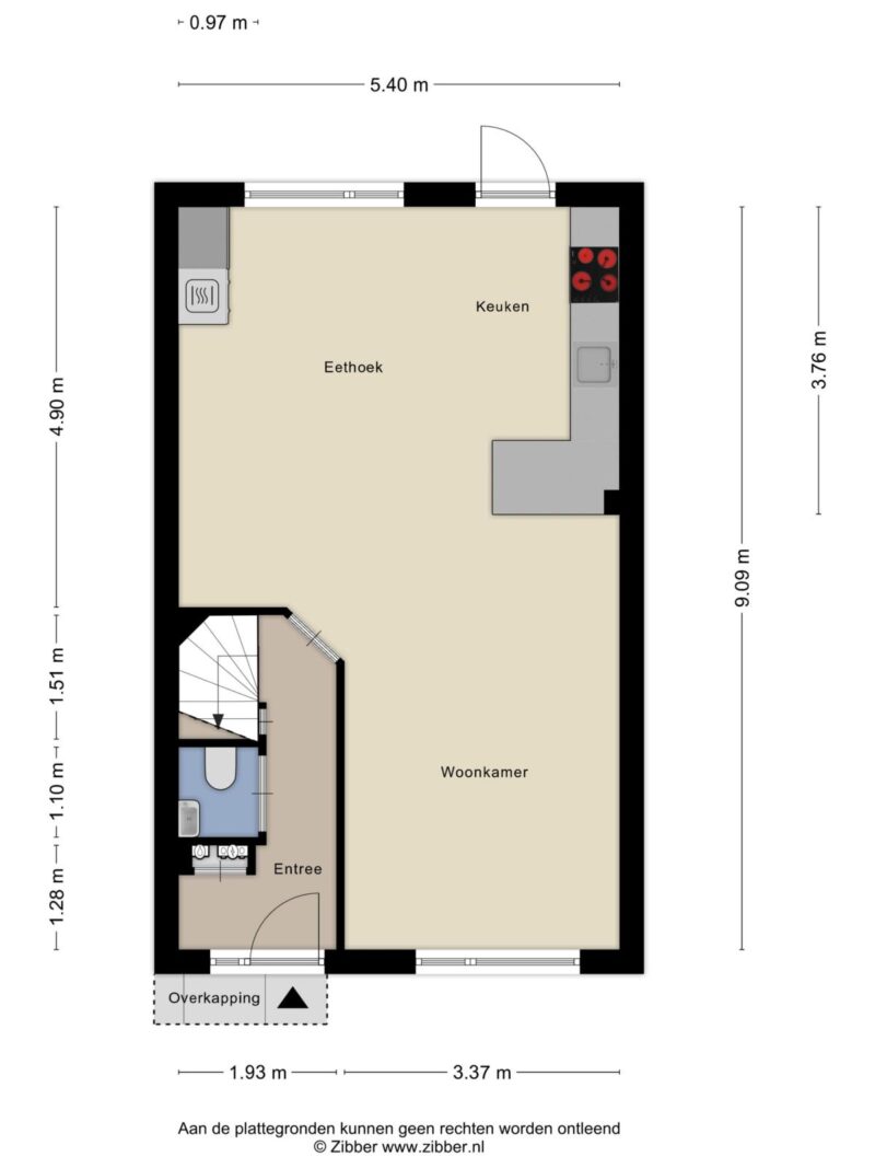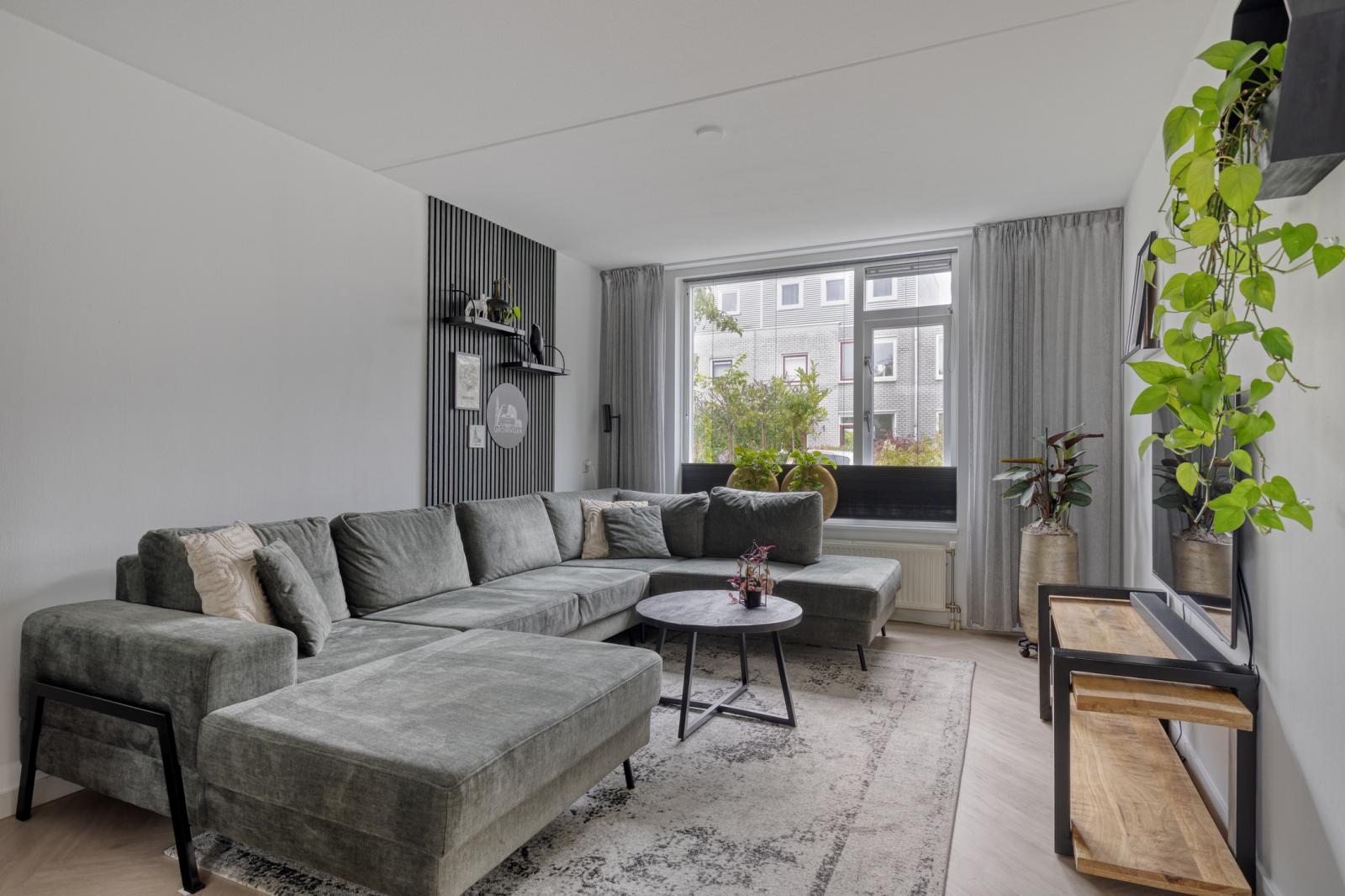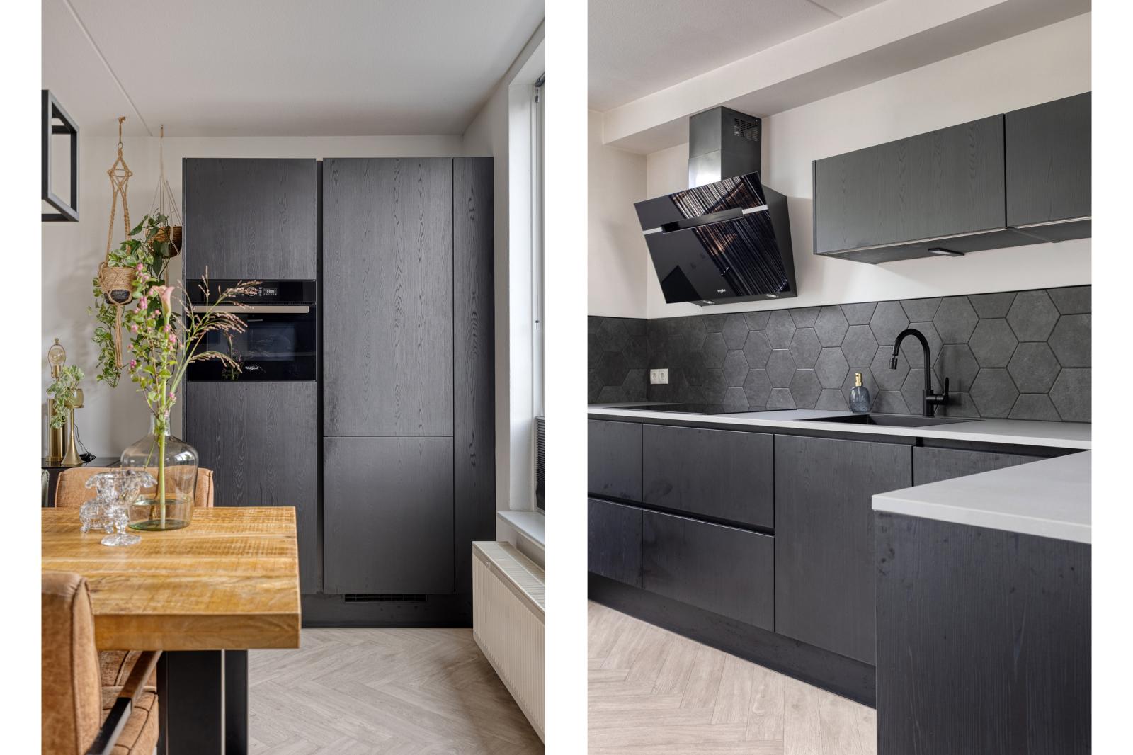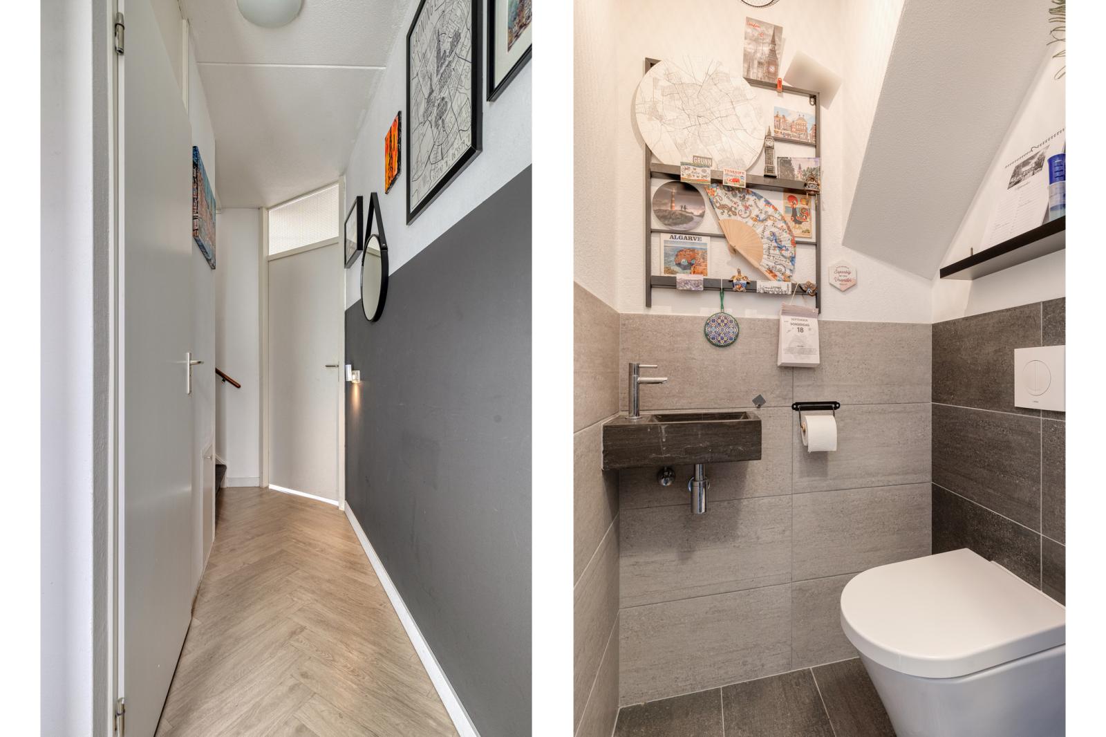 Begane grond: entree/hal met meterkast, toilet en trap naar de eerste verdieping. De ruime en sfeervolle woonkamer met open keuken heeft veel lichtinval. De open keuken is in 2021 geplaatst en is zeer compleet uitgerust en beschikt over diverse inbouwapparatuur, zoals vaatwasser, inductiekooplaat, afzuigkap, vriezer, combi-oven, een zeer grote koelkast en een elektrische boiler. Vanuit de keuken bereik je de achtertuin gelegen op het noordwesten. Woonkamer en open keuken zijn gezamenlijk ca. 41 m².