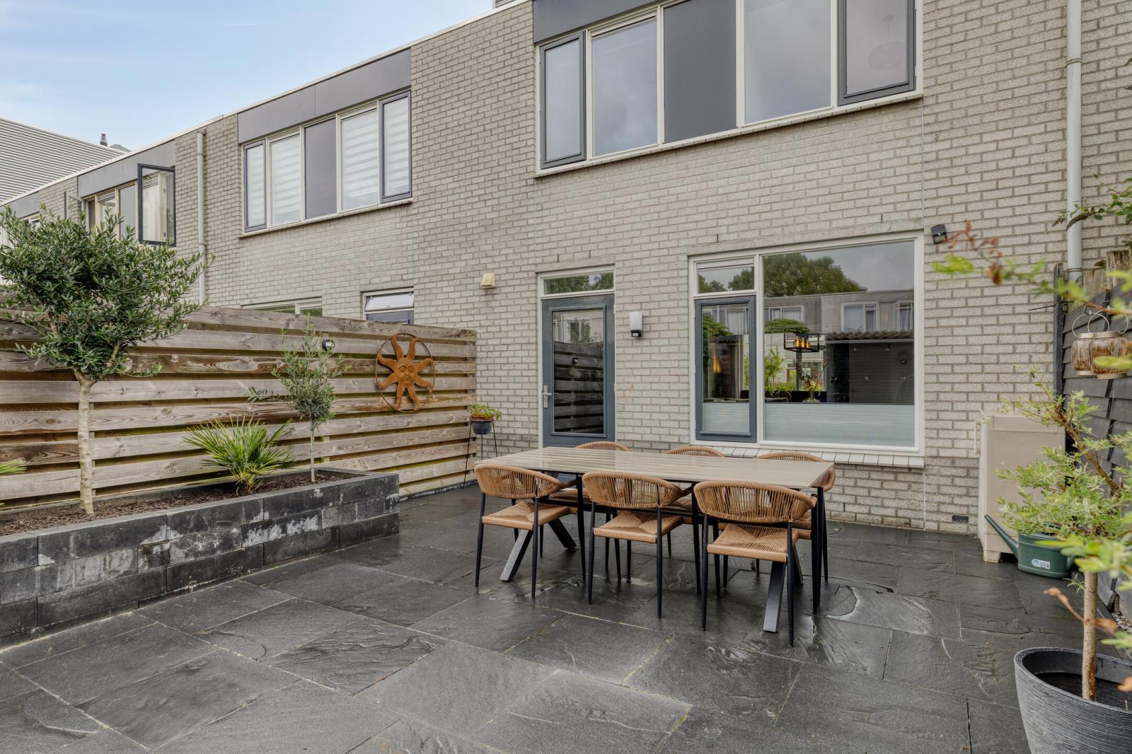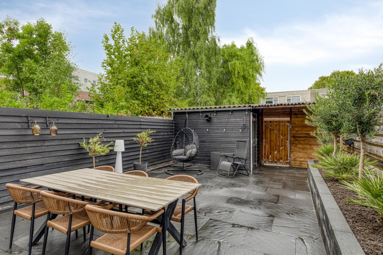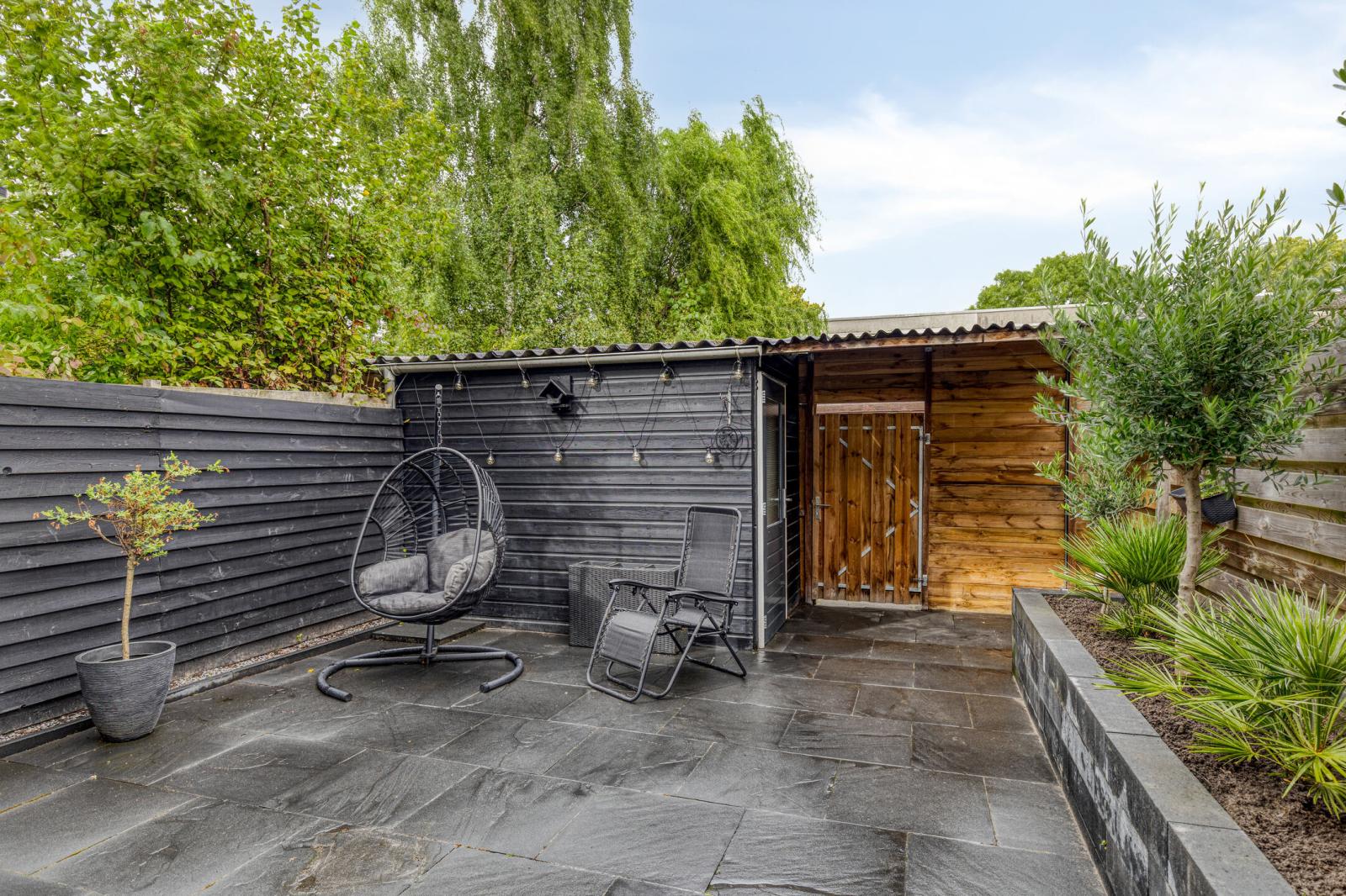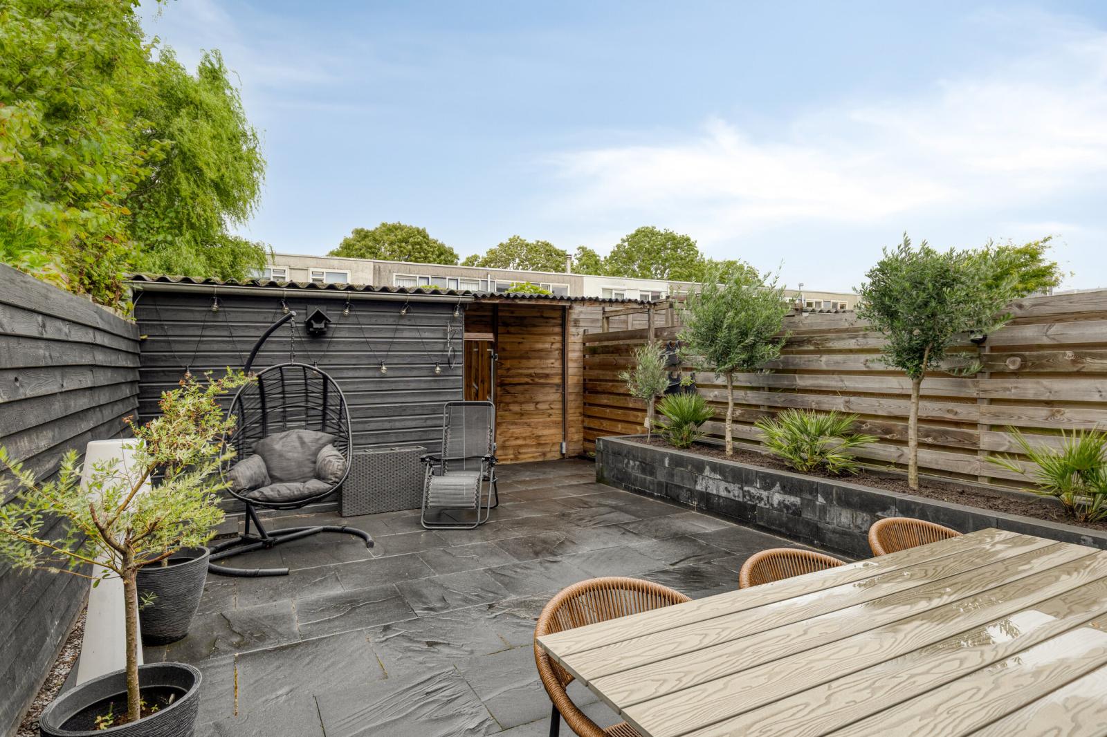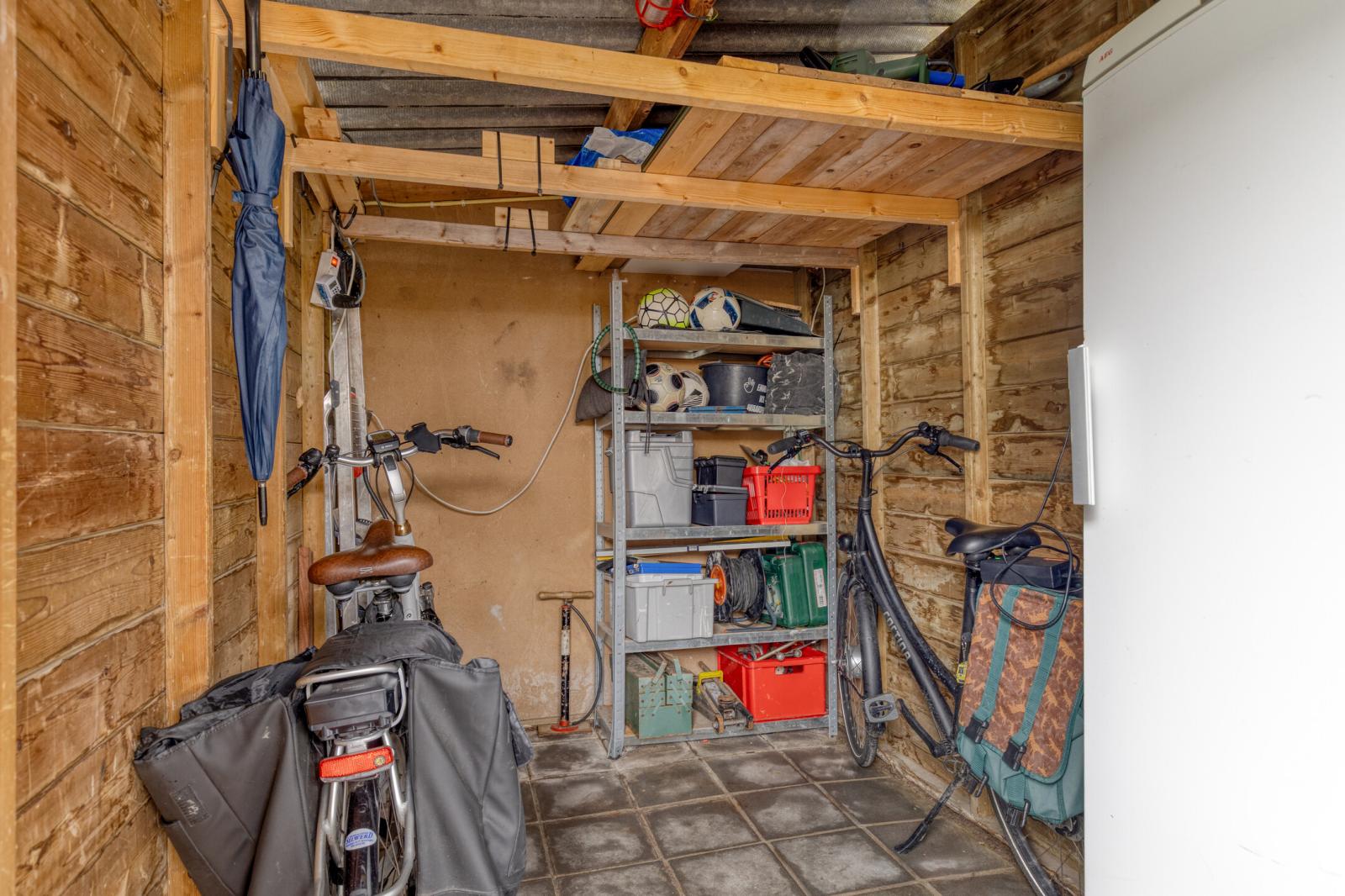 Rondom de woning: fraai aangelegde achtertuin gelegen op het noordwesten. In de tuin is een ruime berging geplaatst, waar je gemakkelijk je tuinspullen kwijt kan. Zowel de voor- en achtertuin zijn onderhoudsvrij.
