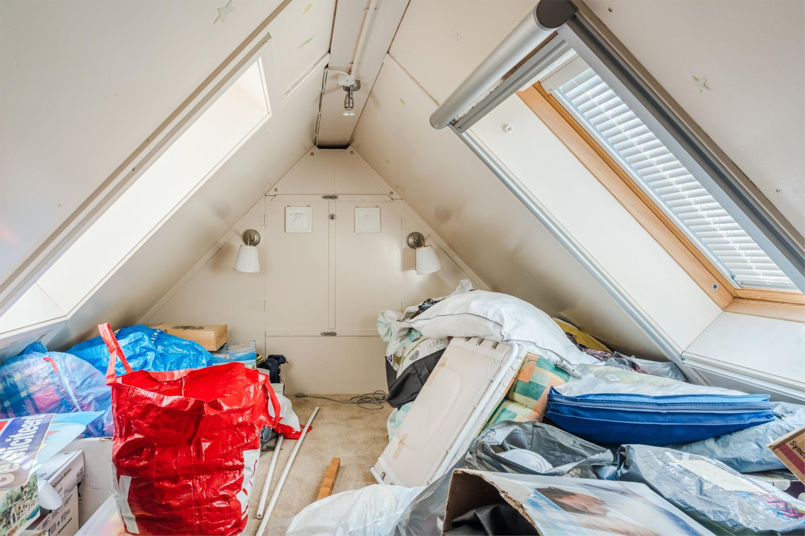 De 2e etage herbergt een grote slaapkamer met een ruime zolder, evenals een berging met de CV ketel en aansluitpunten voor wasdroger en wasmachine.