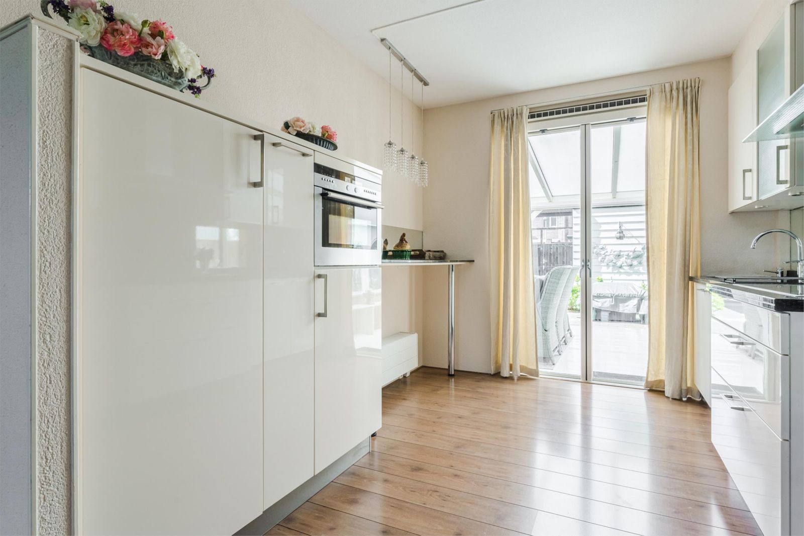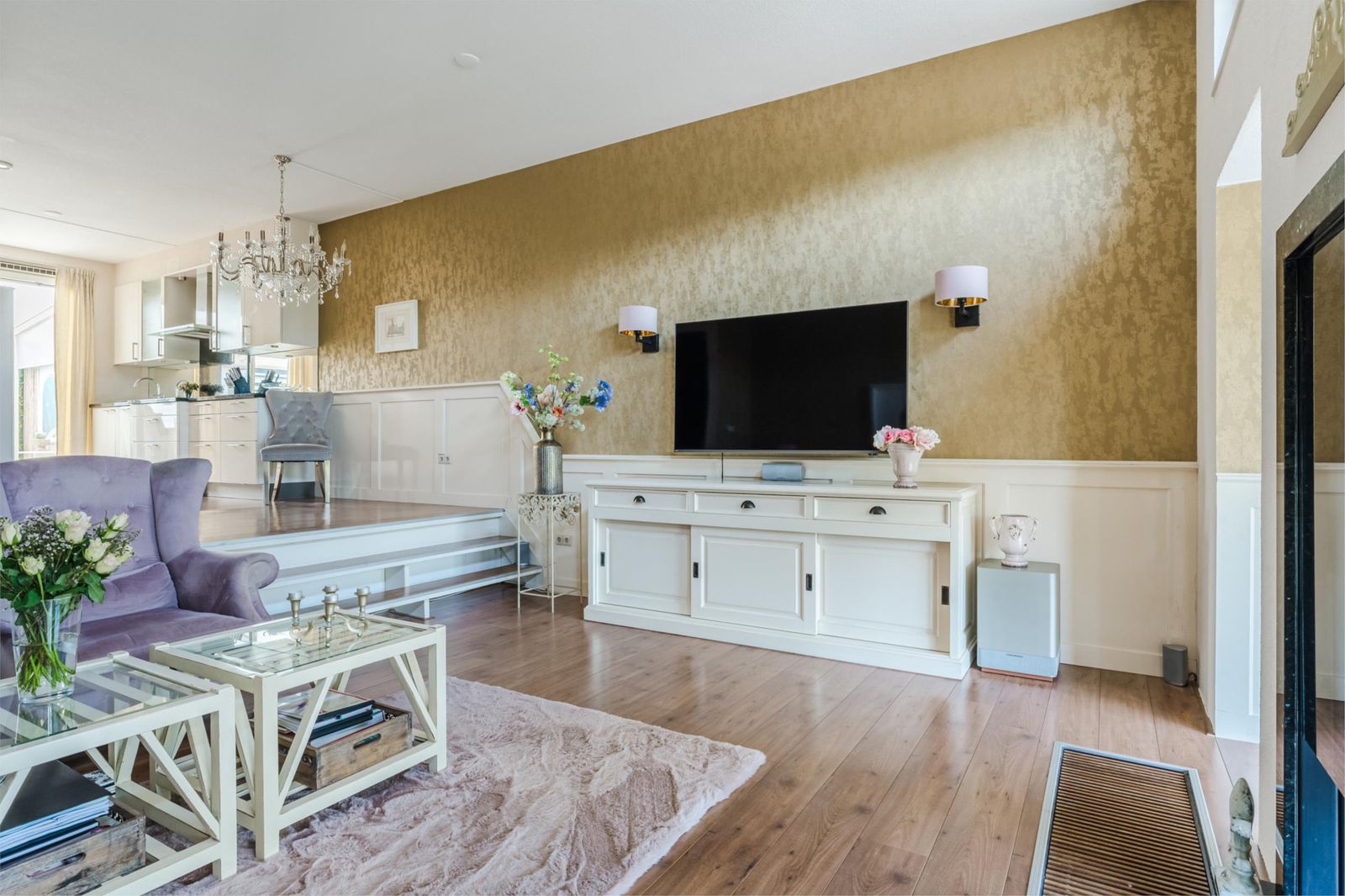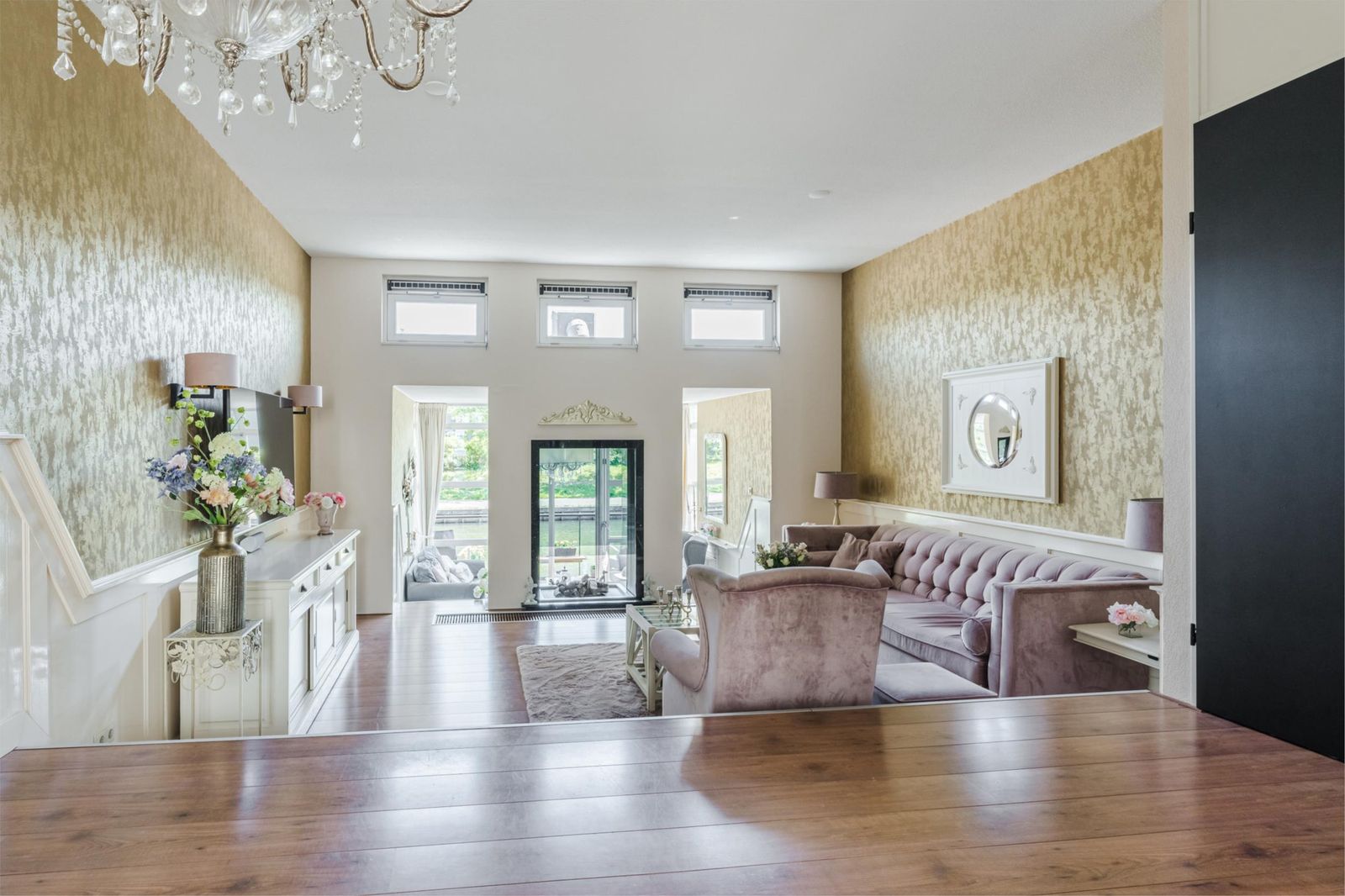 Woonkamer: Via een trap met 2 treden komt u op het 2e niveau, waar de living zich bevindt. De tunnel gas openhaard en de vele raampartijen, deels in de woonkamer en Serre, zorgen voor een prachtige lichtinval.