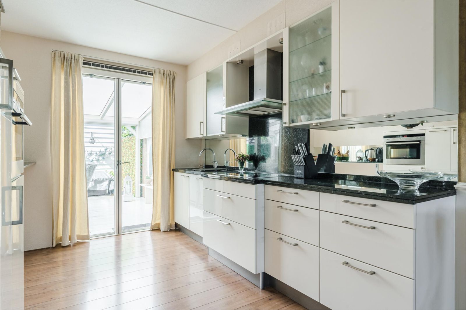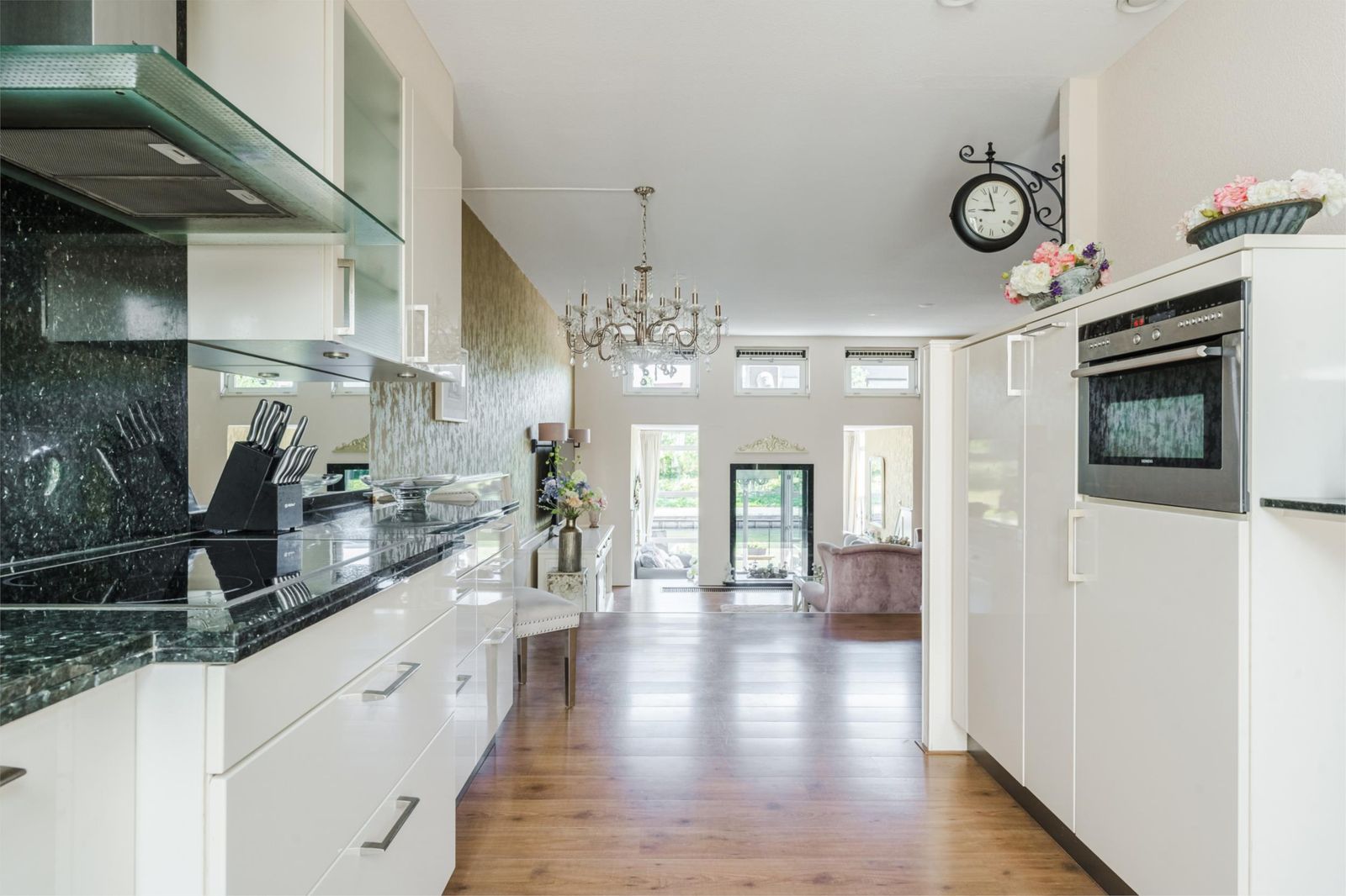 Keuken: De royale keuken is compleet uitgerust met moderne apparatuur en biedt ruimte om een eetkamer te creëren. De openslaande deuren geven toegang tot de overkapping, waar u heerlijk kunt genieten van het buitenleven.