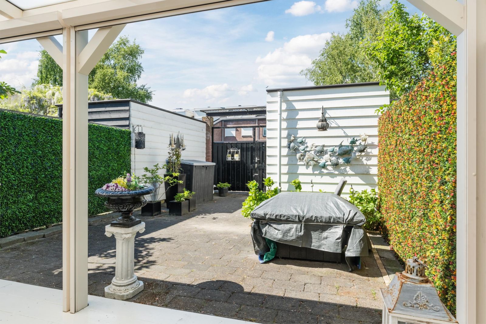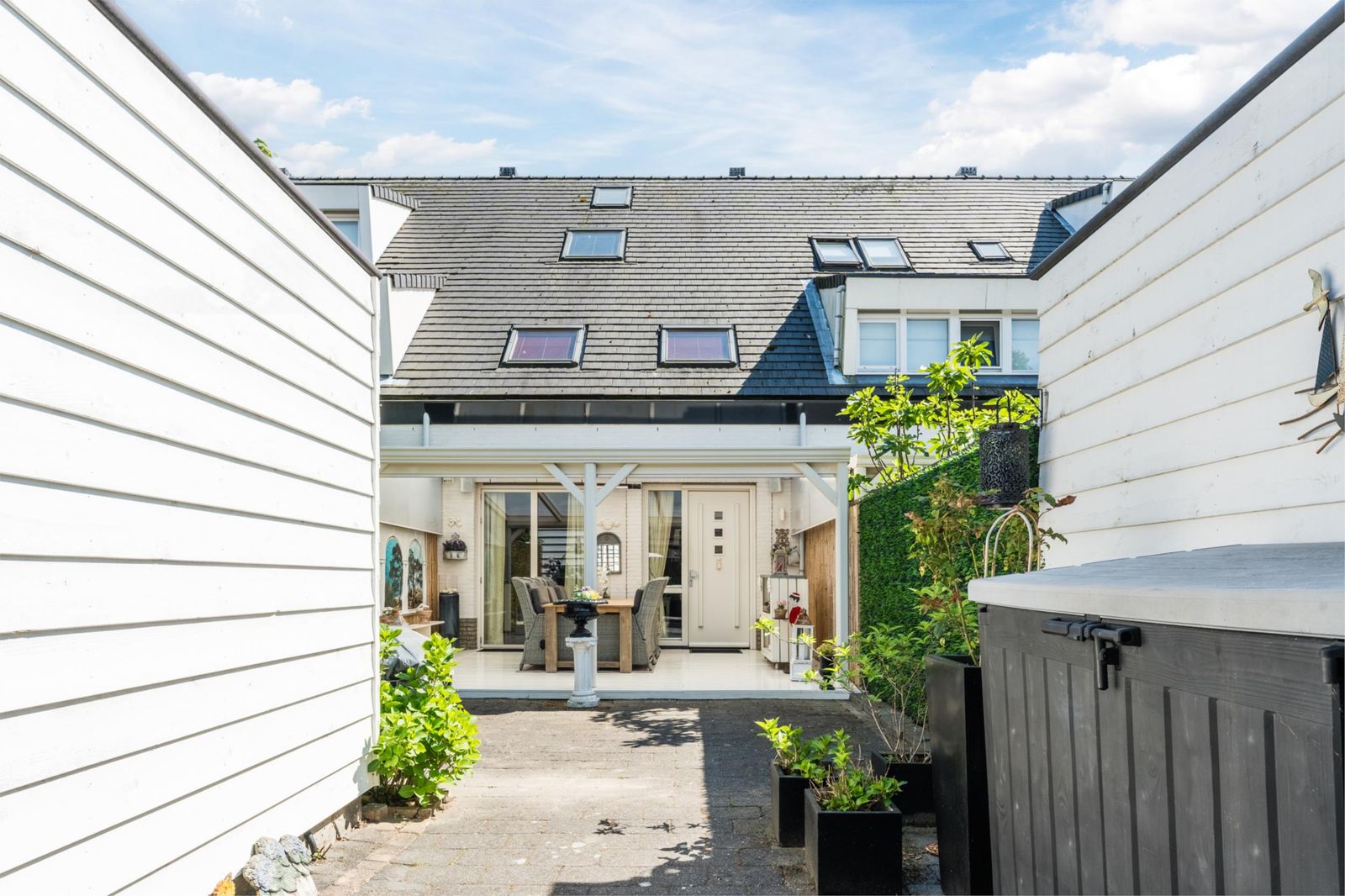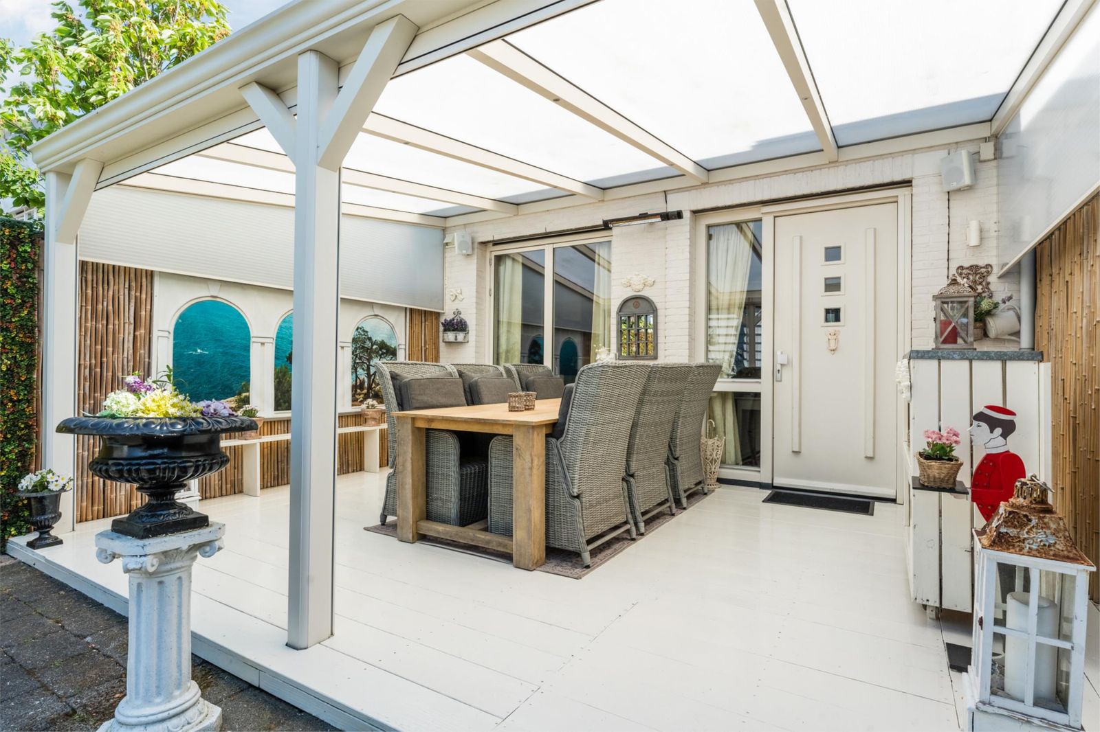 Zodra u de tuindeur opent , wordt u verwelkomt door een gezellige overkapping met een houten vlonder. De woning beschikt tevens over een berging, en het terras is geheel bestraat voor extra gemak.