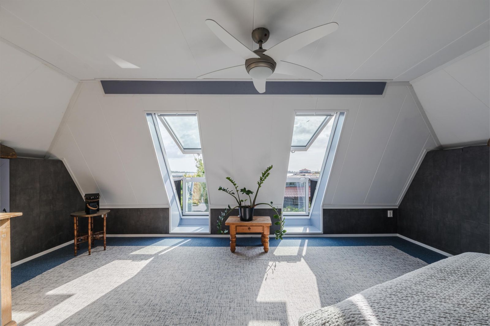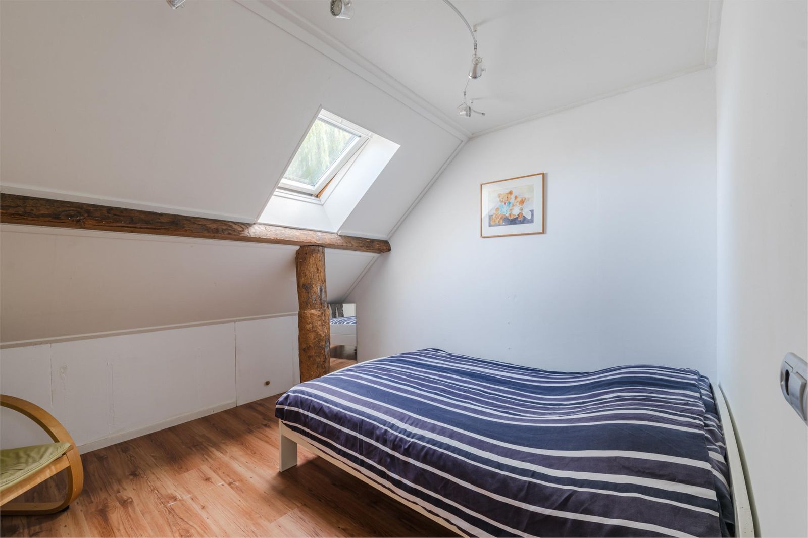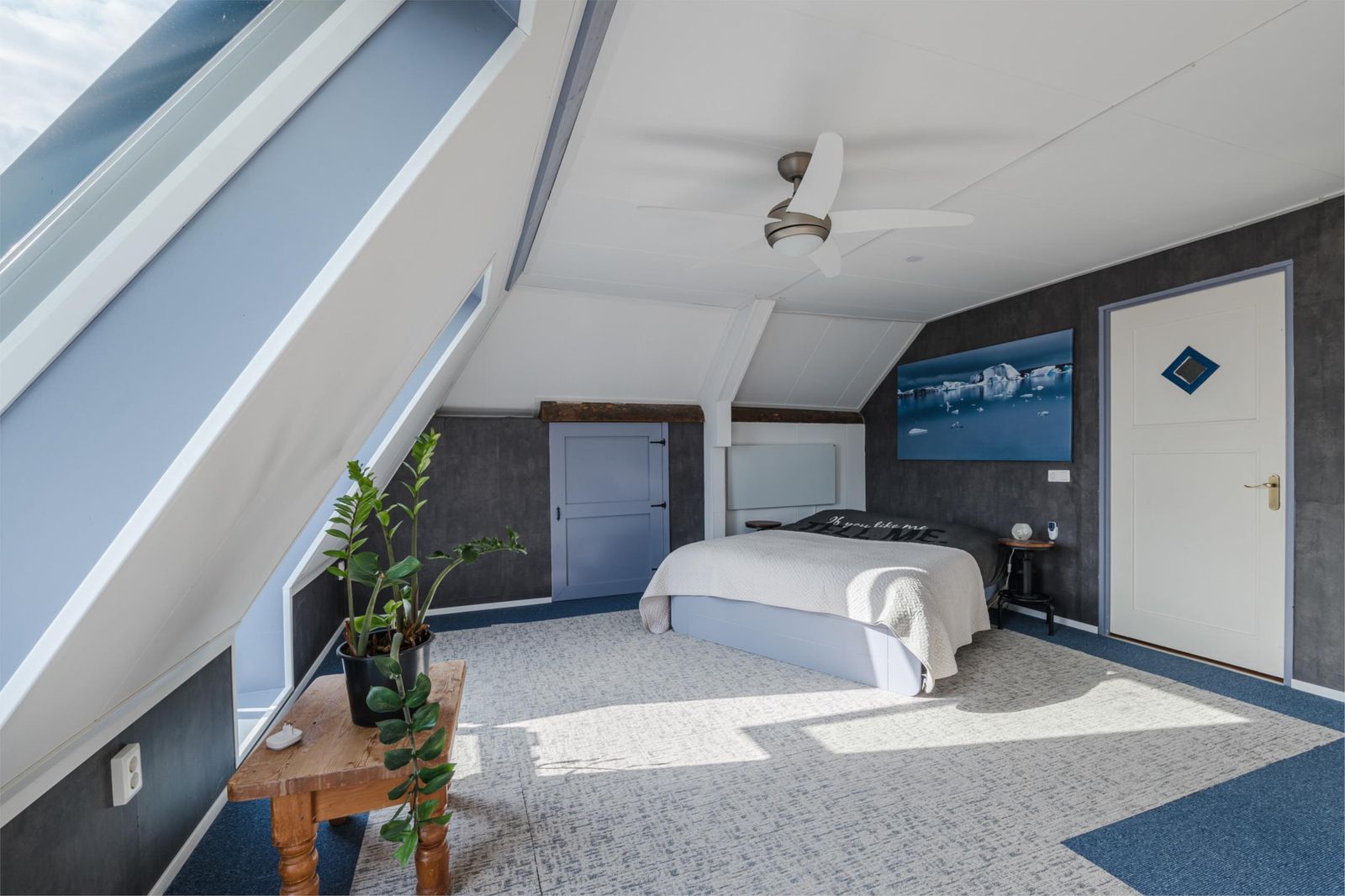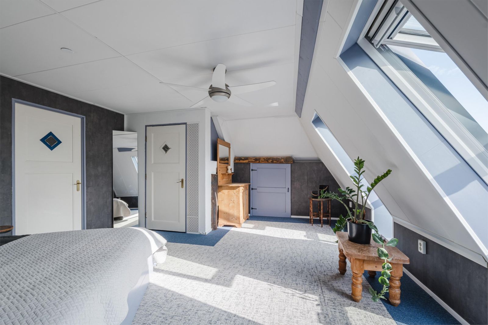 Masterbedroom (38 m2) met inloopkast, uniek uitzicht via twee Velux cabrio balkonvensters (2022)
