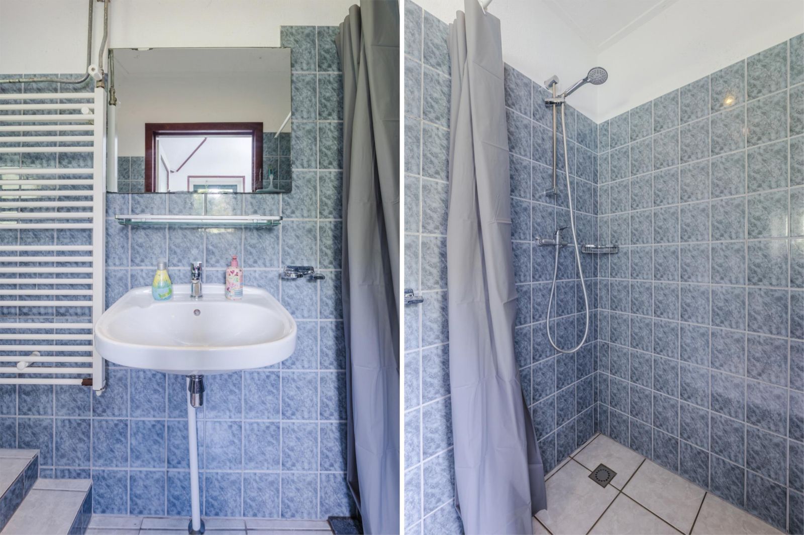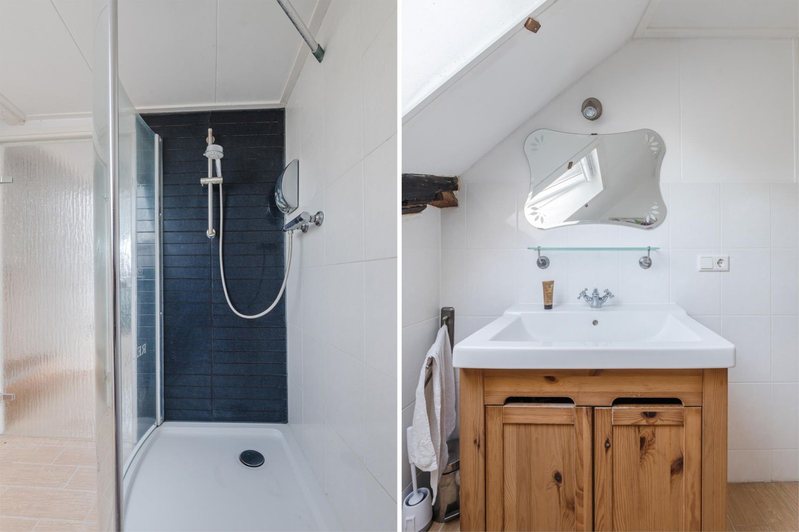 Via de entree toegang tot badkamer met douche, toilet en wastafel