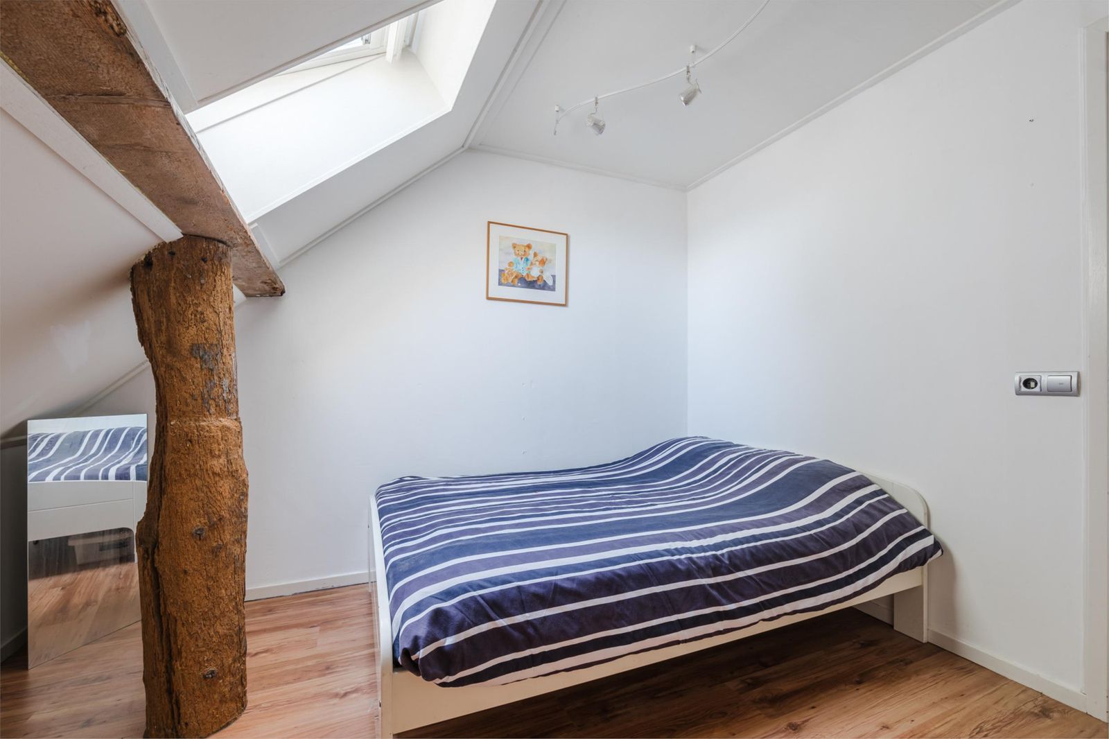 Zeer ruim opgezette slaapkamer met twee dakkapellen en vaste kast. Desgewenst om te vormen naar twee ruime slaapkamers