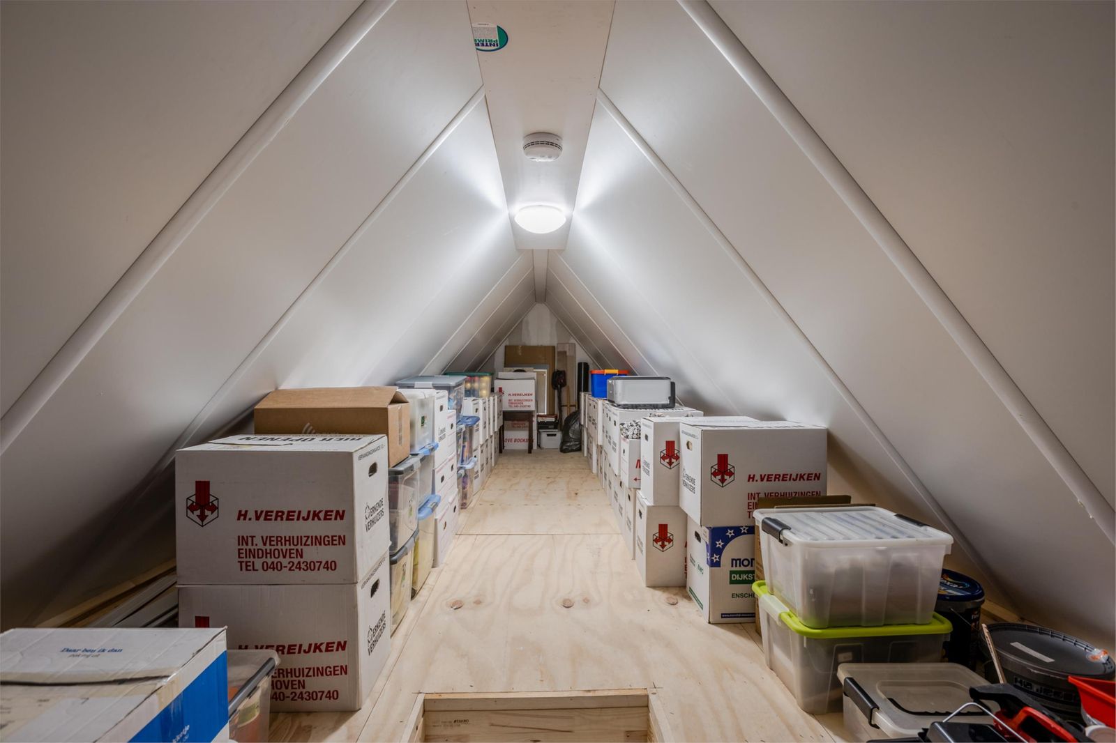 Tevens geeft een vlizotrap toegang naar een volledig toegankelijke bergzolder met stahoogte en automatische verlichting.