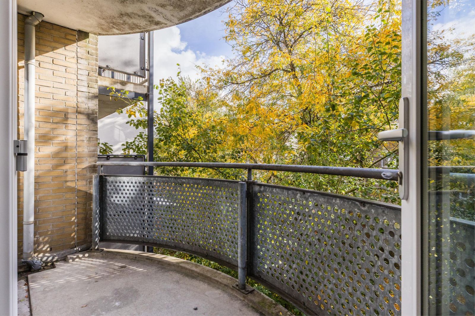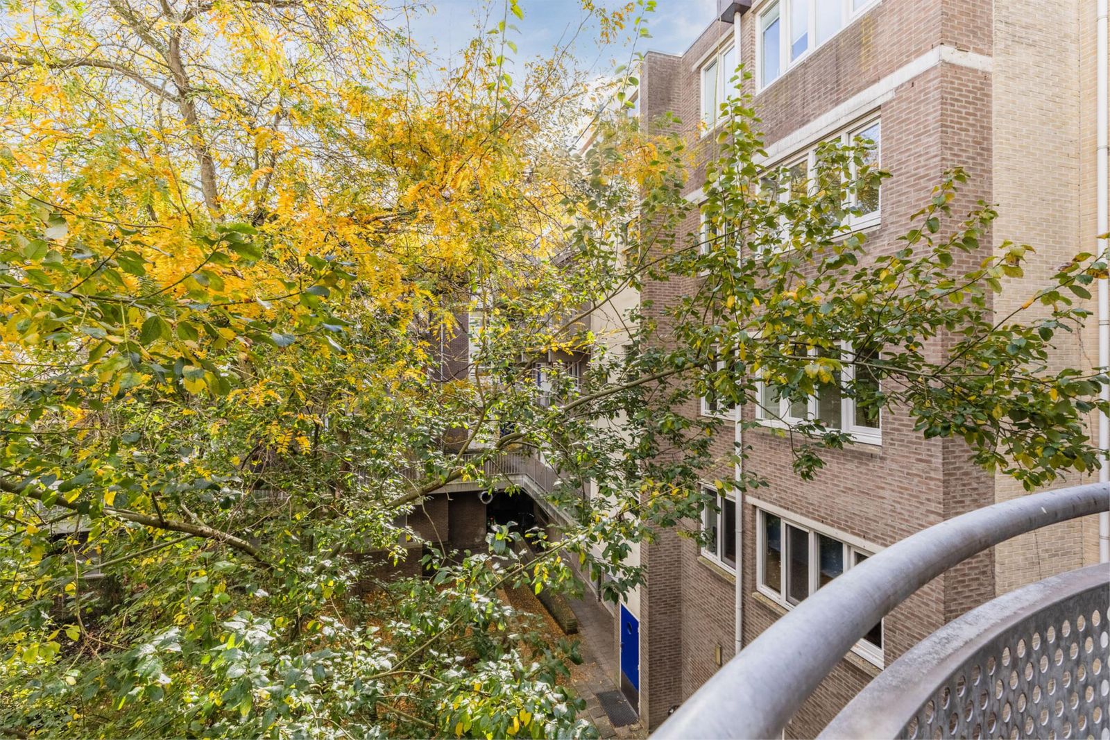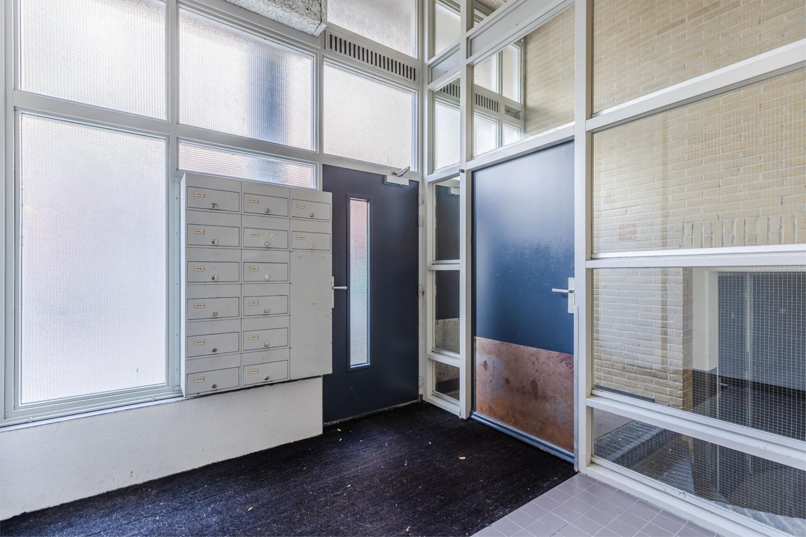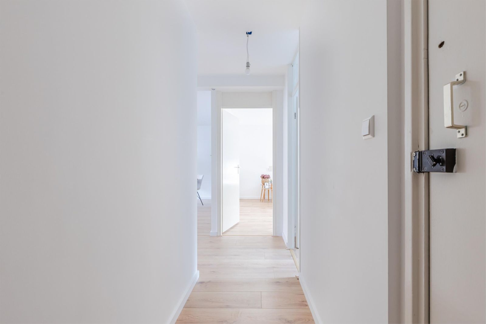 Via de gemeenschappelijke entree en trap bereik je de derde verdieping. Je komt binnen in de hal met toegang tot het aparte toilet en de badkamer met douche en wastafel. Aan de achterzijde liggen twee slaapkamers, waarvan één toegang biedt tot het zonnige balkon op het zuiden. Aan de straatzijde vind je de ruime woonkamer met een handige bergkast en de dichte keuken met aansluiting voor de wasmachine. In de onderbouw beschik je over een eigen berging.