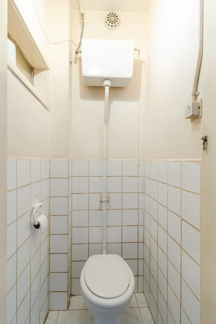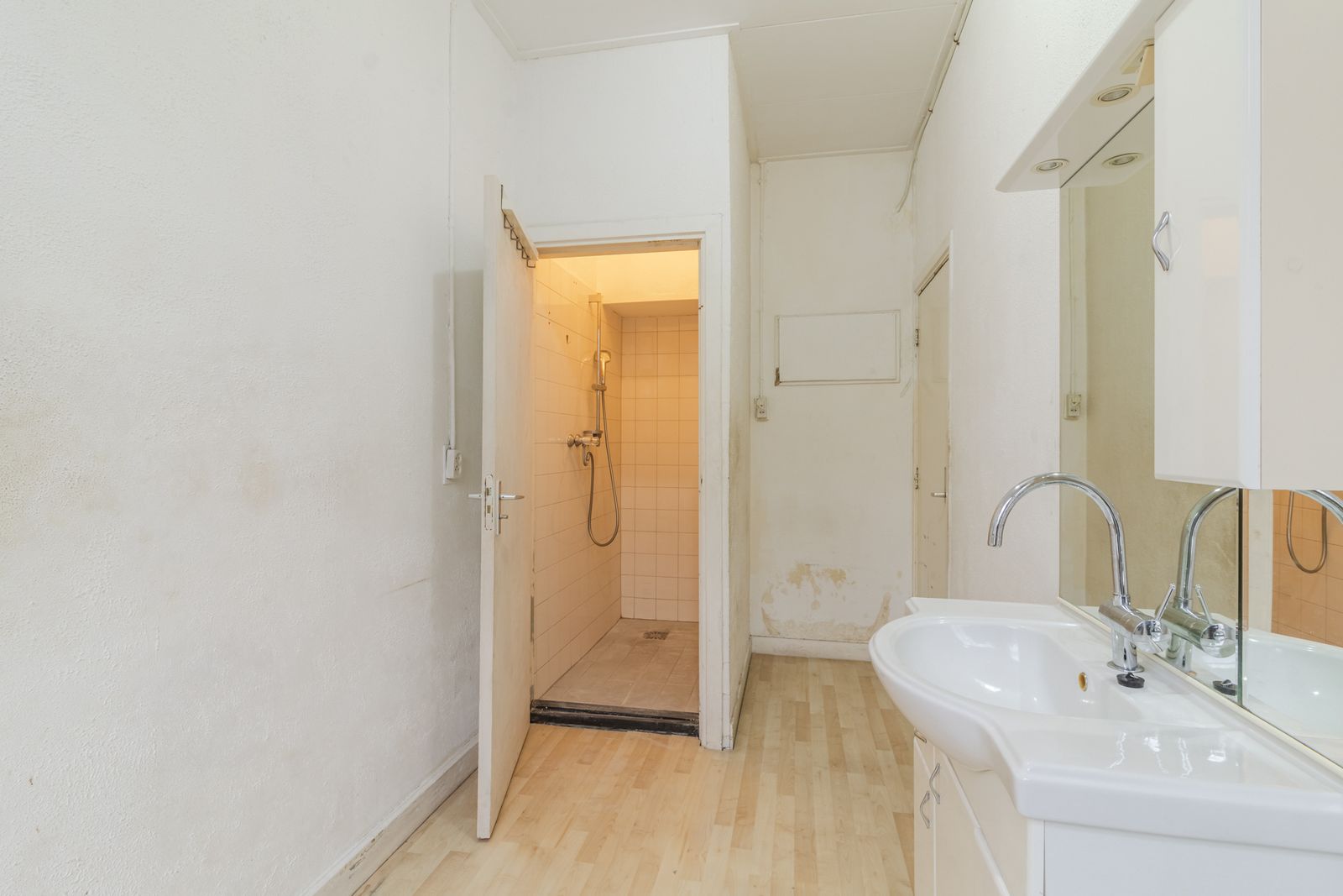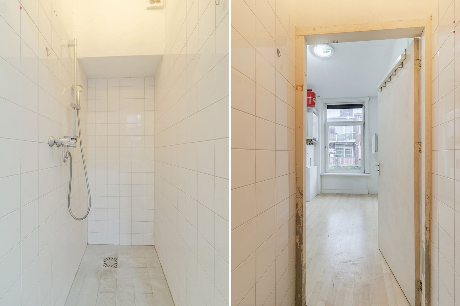 - Naastgelegen slaapkamer (ca. 4,46 x 1,87 m) met toegang tot de geheel betegelde badkamer (ca. 1,58 x 0,85 m) en voorzien van wasmachineaansluiting;