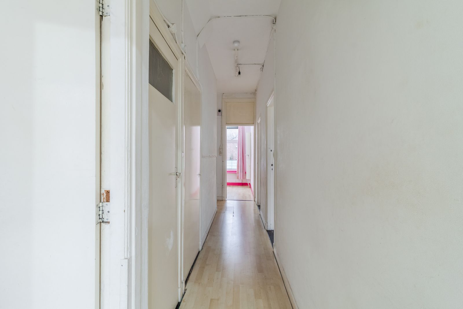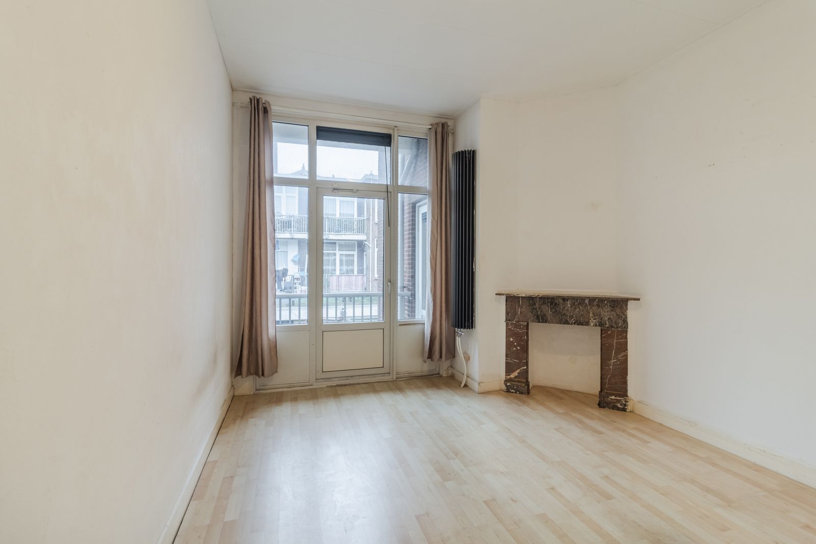 ?- Ruime en lichte woonkamer (voormalige kamer en suite) (ca. 9,53 x 3,38 m) met toegang tot het zonnige balkon (ZW);