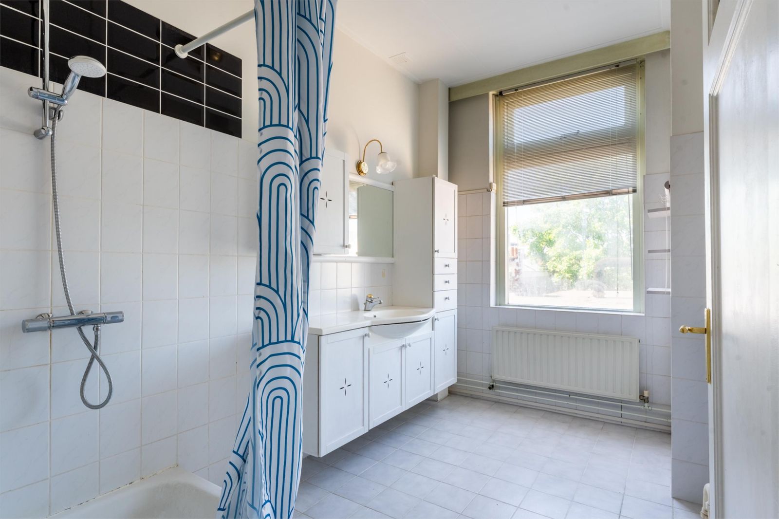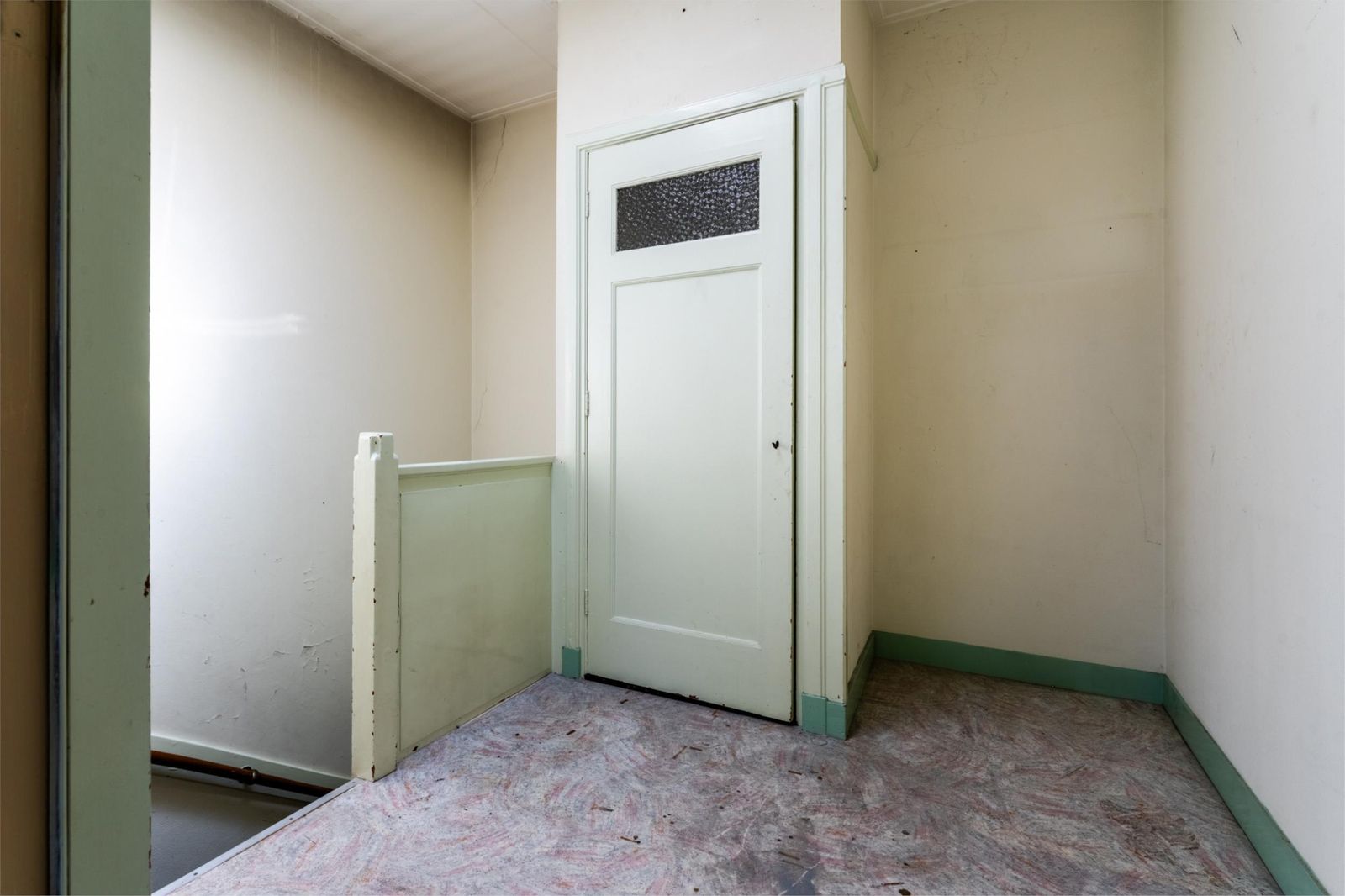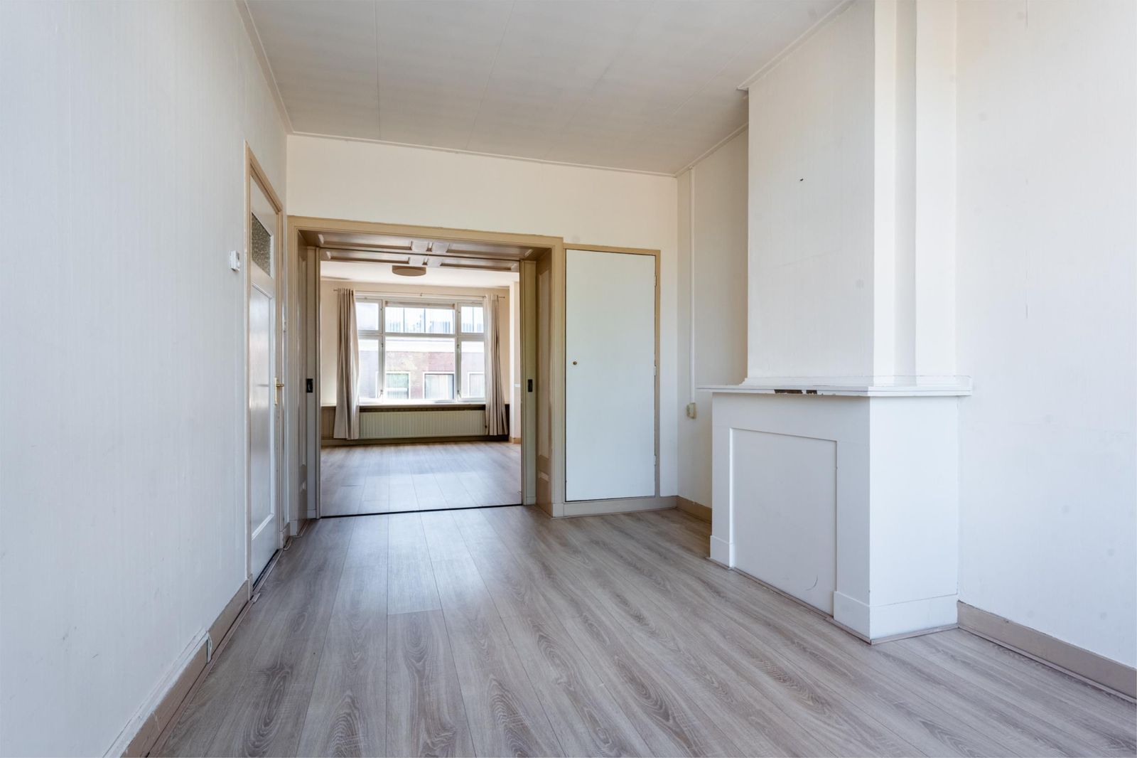 Hal met vaste kast, fraaie lichtinval via het dakraam met glas-in-lood, tussengang met vaste kast en toiletruimte, ruime woonkamer en-suite met originele schuifseparatie met glas-in-lood en originele schouwen, bestaande uit een achterkamer (ca. 5.00 x 3.04) en een voorkamer (ca. 5.50 x 4.00), ruime slaapkamer aan de voorzijde (ca. 3.70 x 3.13), wit betegelde badkamer (ca. 3.30 x 2.00) voorzien van douche wastafelmeubel, aansluiting wasmachine, dichte keuken (ca. 3.30 x 2.00) in rechte opstelling met vaste kast.