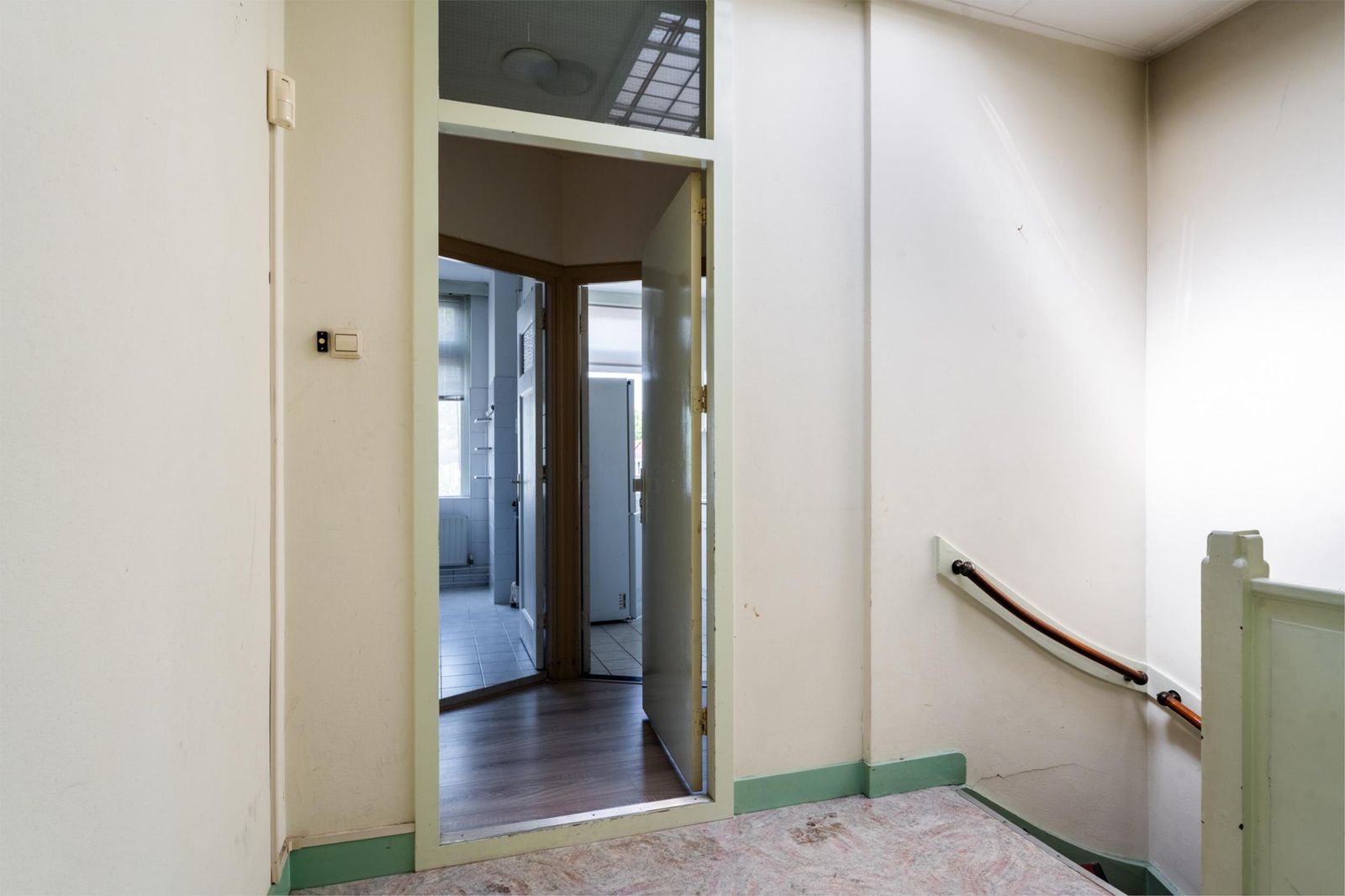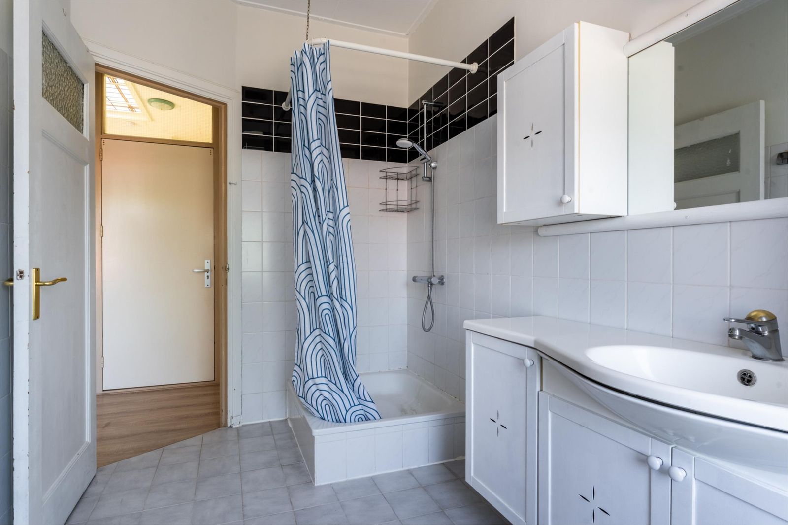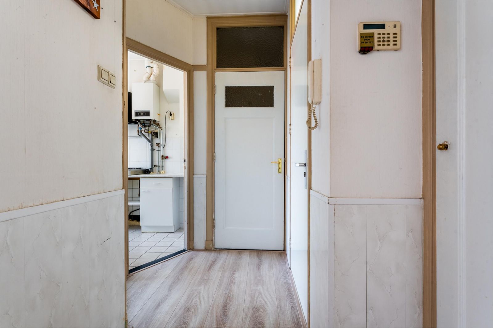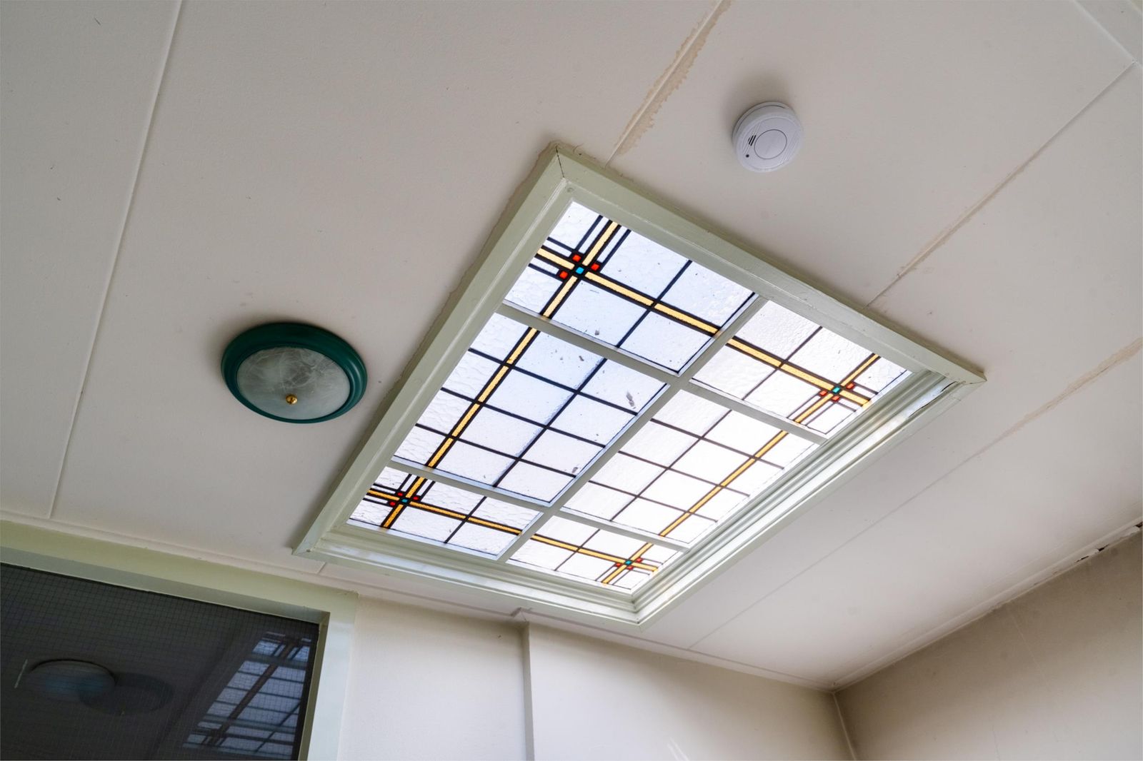 Hal met vaste kast, fraaie lichtinval via het dakraam met glas-in-lood, tussengang met vaste kast en toiletruimte, ruime woonkamer en-suite met originele schuifseparatie met glas-in-lood en originele schouwen, bestaande uit een achterkamer (ca. 5.00 x 3.04) en een voorkamer (ca. 5.50 x 4.00), ruime slaapkamer aan de voorzijde (ca. 3.70 x 3.13), wit betegelde badkamer (ca. 3.30 x 2.00) voorzien van douche wastafelmeubel, aansluiting wasmachine, dichte keuken (ca. 3.30 x 2.00) in rechte opstelling met vaste kast.