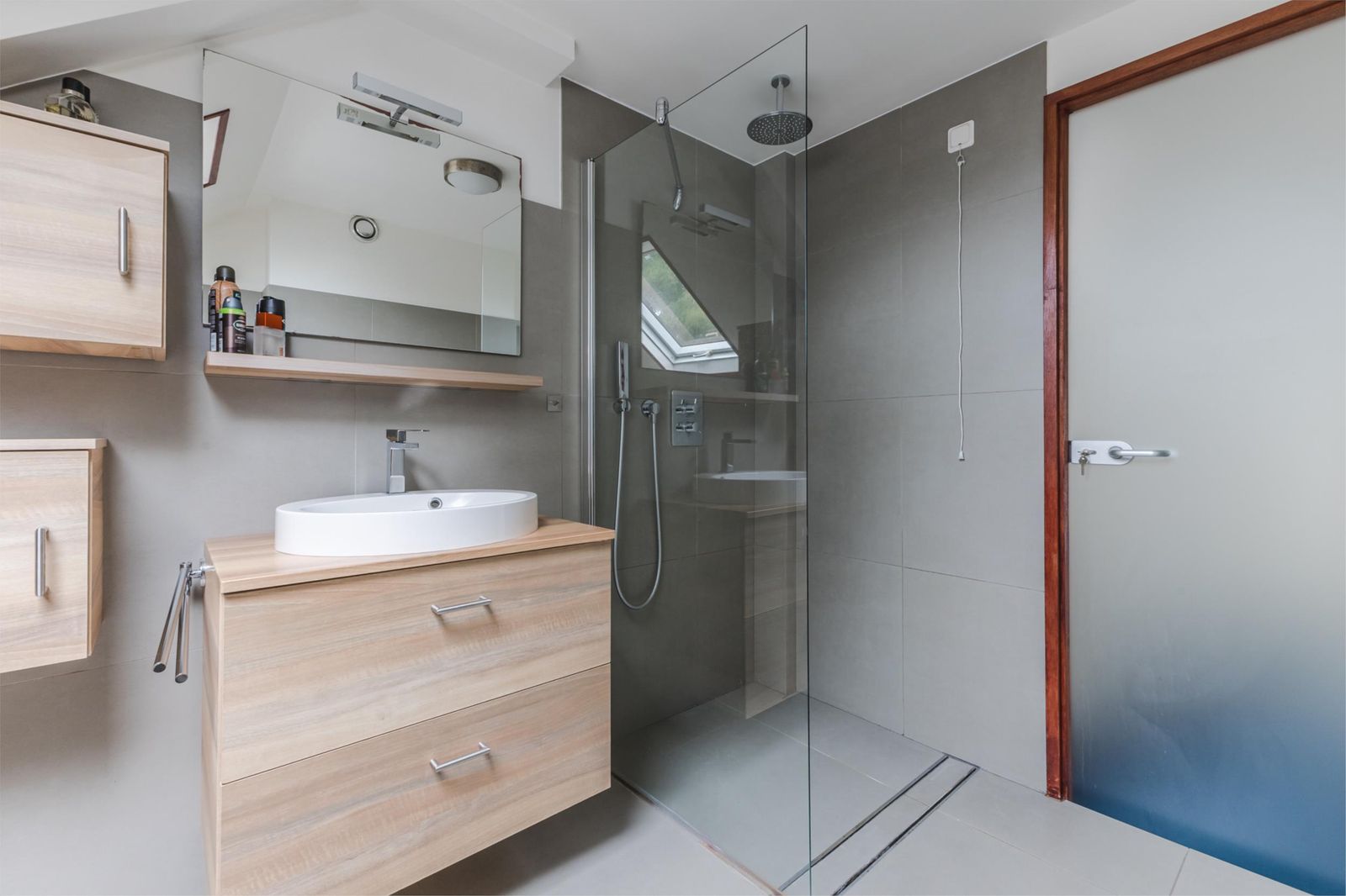 Op de eerste verdieping vind je drie fijne slaapkamers en een moderne, tijdloze badkamer met regendouche, vloerverwarming, tegeldrain en een groot kunststof dakraam dat voor veel daglicht zorgt.