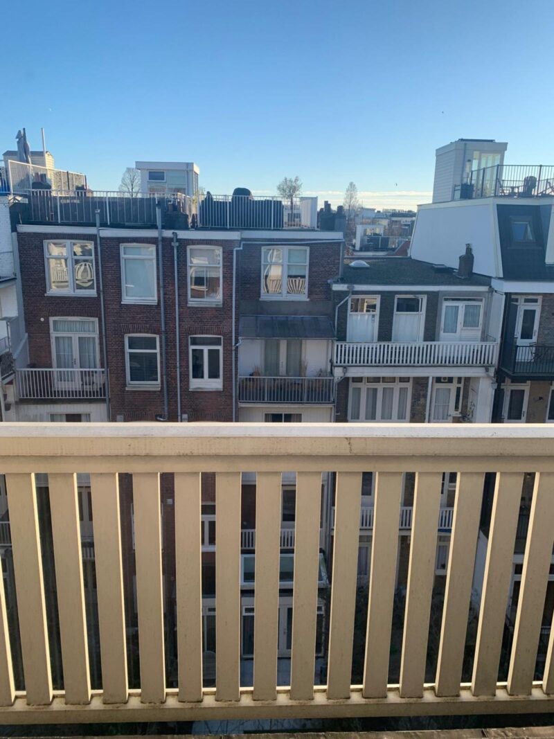 De hoofdslaapkamer aan de achterzijde is zeer royaal te noemen en beschikt over een werkhoek en dubbele, openslaande deuren naar een balkon uitkijkend over de groene binnentuinen. Het is hier altijd heerlijk rustig slapen, zelfs met het raam open!