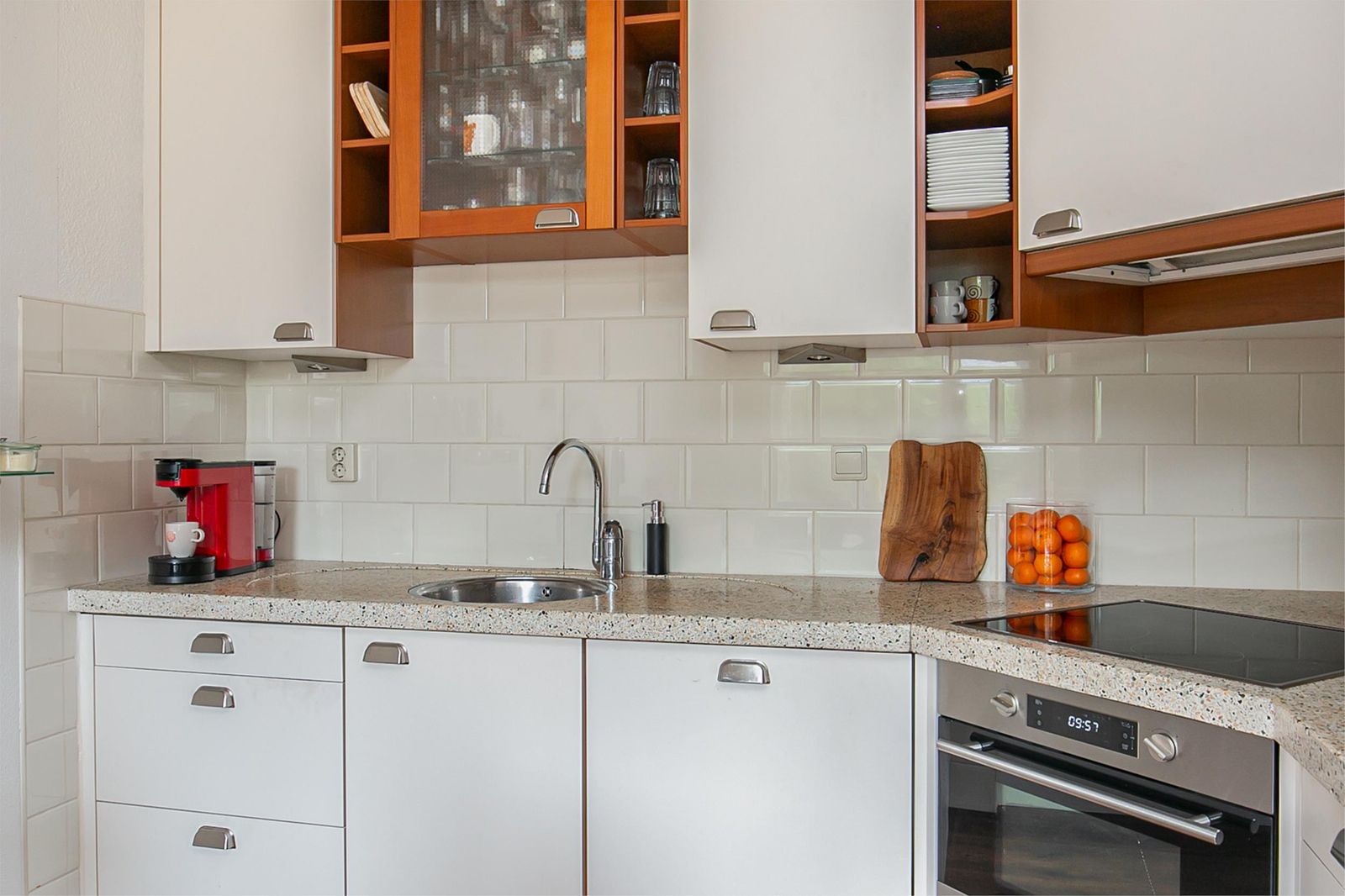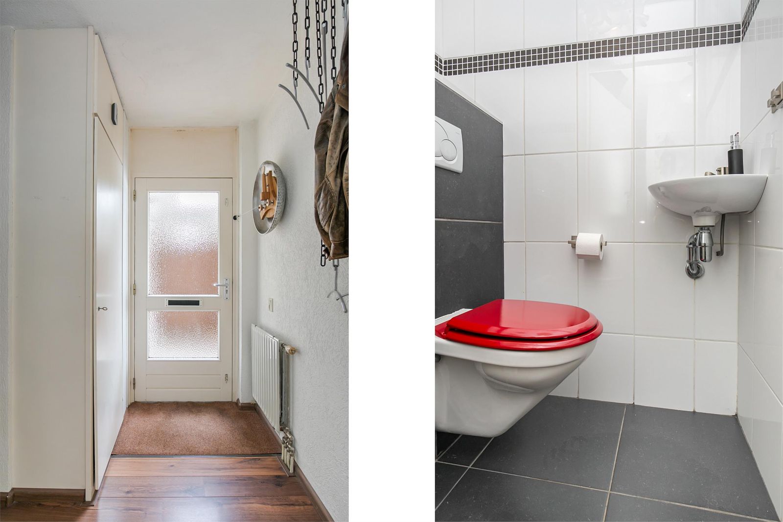 De hele begane grond is voorzien van een mooie laminaatvloer. De toiletruimte is recent onder handen genomen en beschikt over een zwevend toilet. Naast de meterkast is er de genoemde gezellige woonkamer met open-haard en de complete keuken.