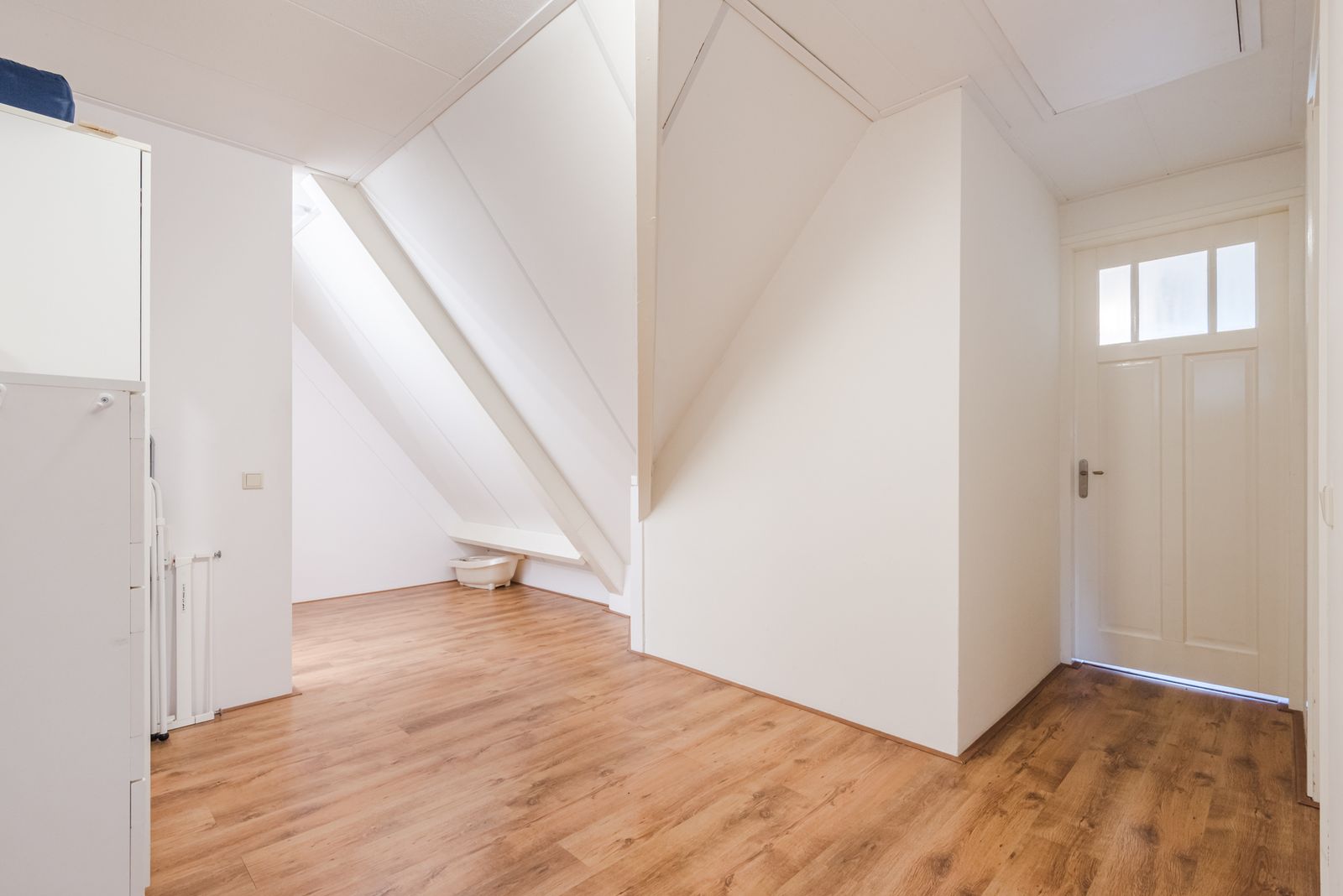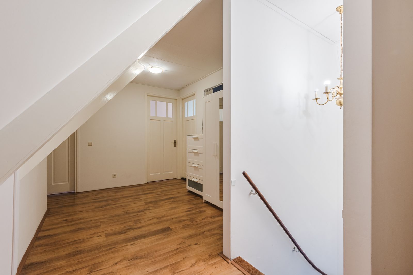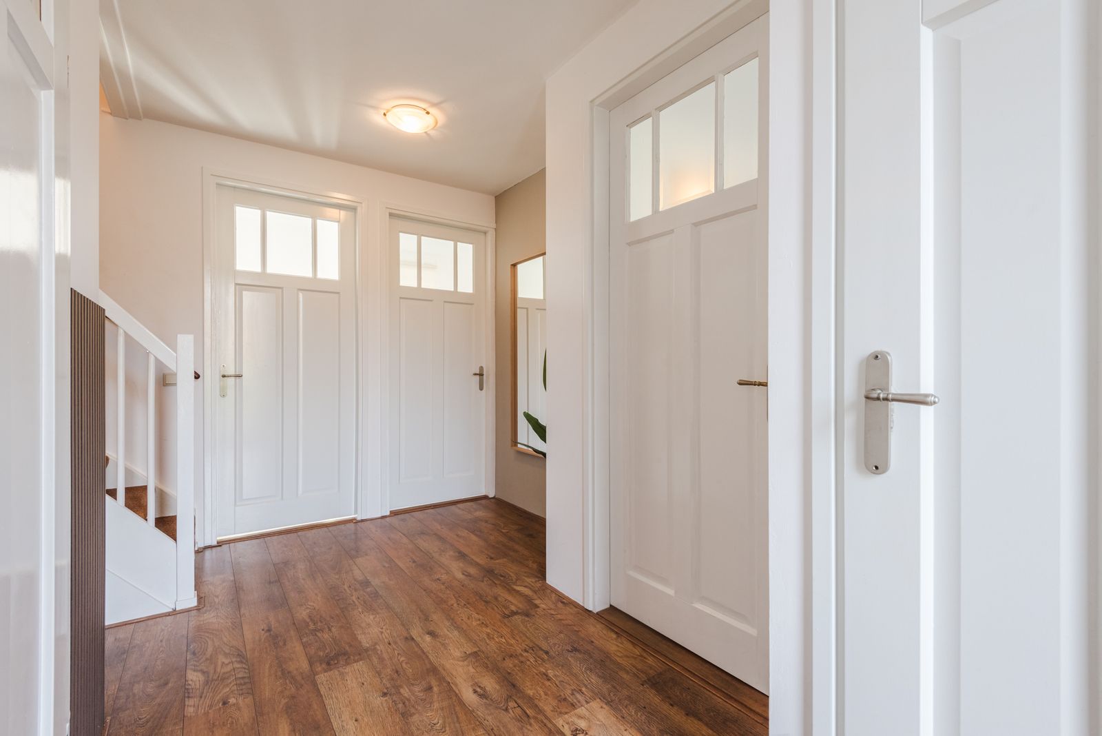 Via de entree komt u in de hal met toilet, meterkast en vaste trap naar de eerste verdieping, met praktische bergruimte onder de trap.