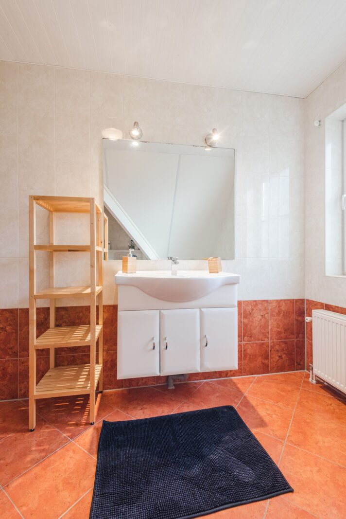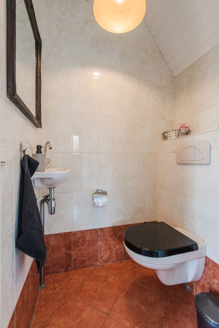 Op de begane grond bevindt zich tevens een slaapkamer met badkamer en-suite, voorzien van een wastafelmeubel en inloopdouche.