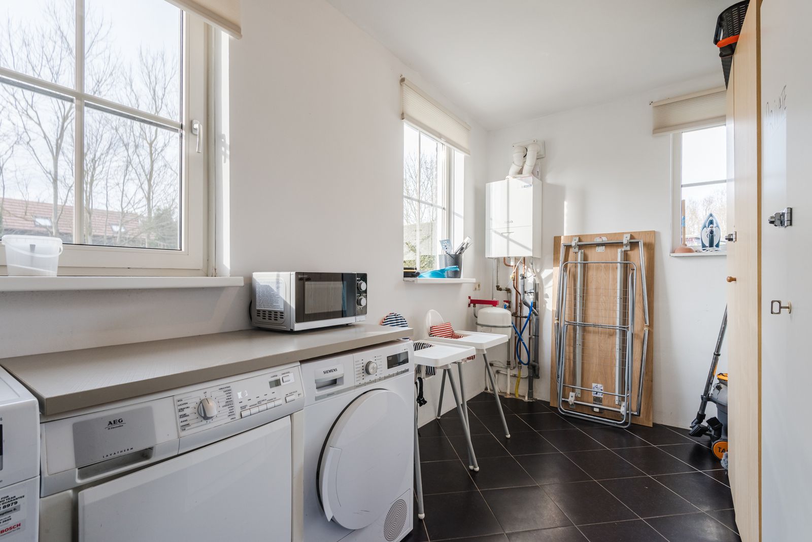 Verder is er een ruime bijkeuken met opstelling van de Atag cv-ketel (2018) en aansluitingen voor wasmachine en droger.