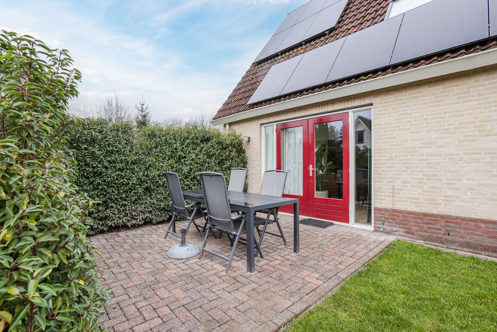 De circa 500 m² grote tuin met twee terrassen biedt volop mogelijkheden om de hele dag van de zon te genieten. Tuin is makkelijk in onderhoud. Een robotmaaier doet zijn werk.