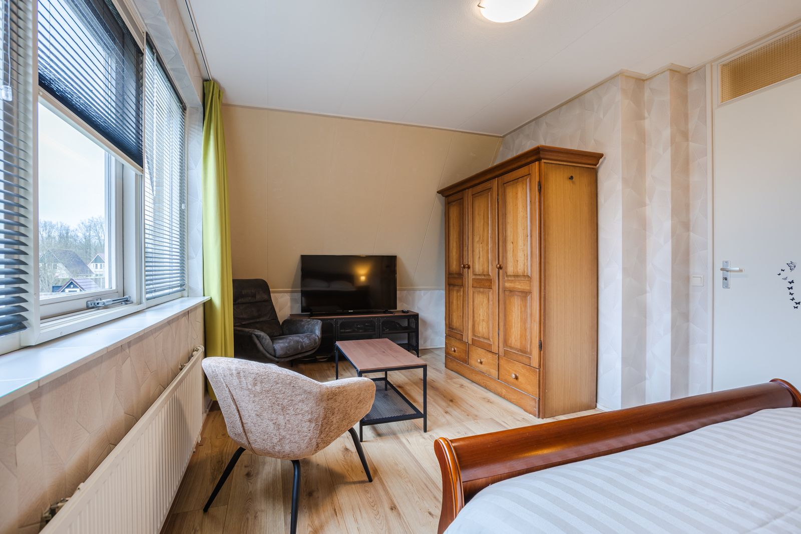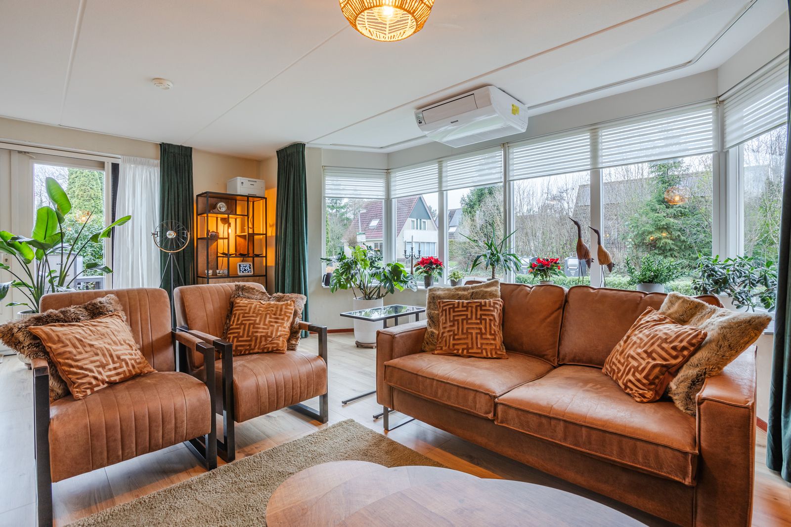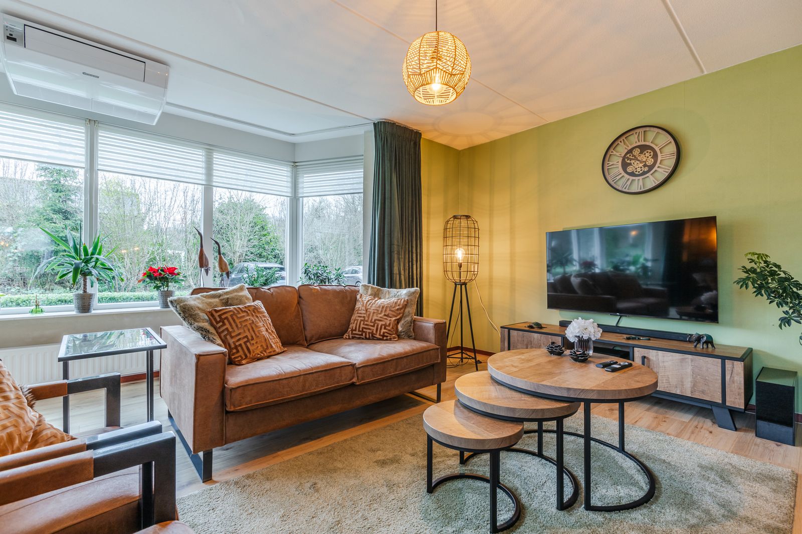 De lichte woonkamer is voorzien van een nieuwe laminaatvloer, een erker, grote raampartijen en een schuifpui naar de tuin. Een heerlijke plek om tot rust te komen.