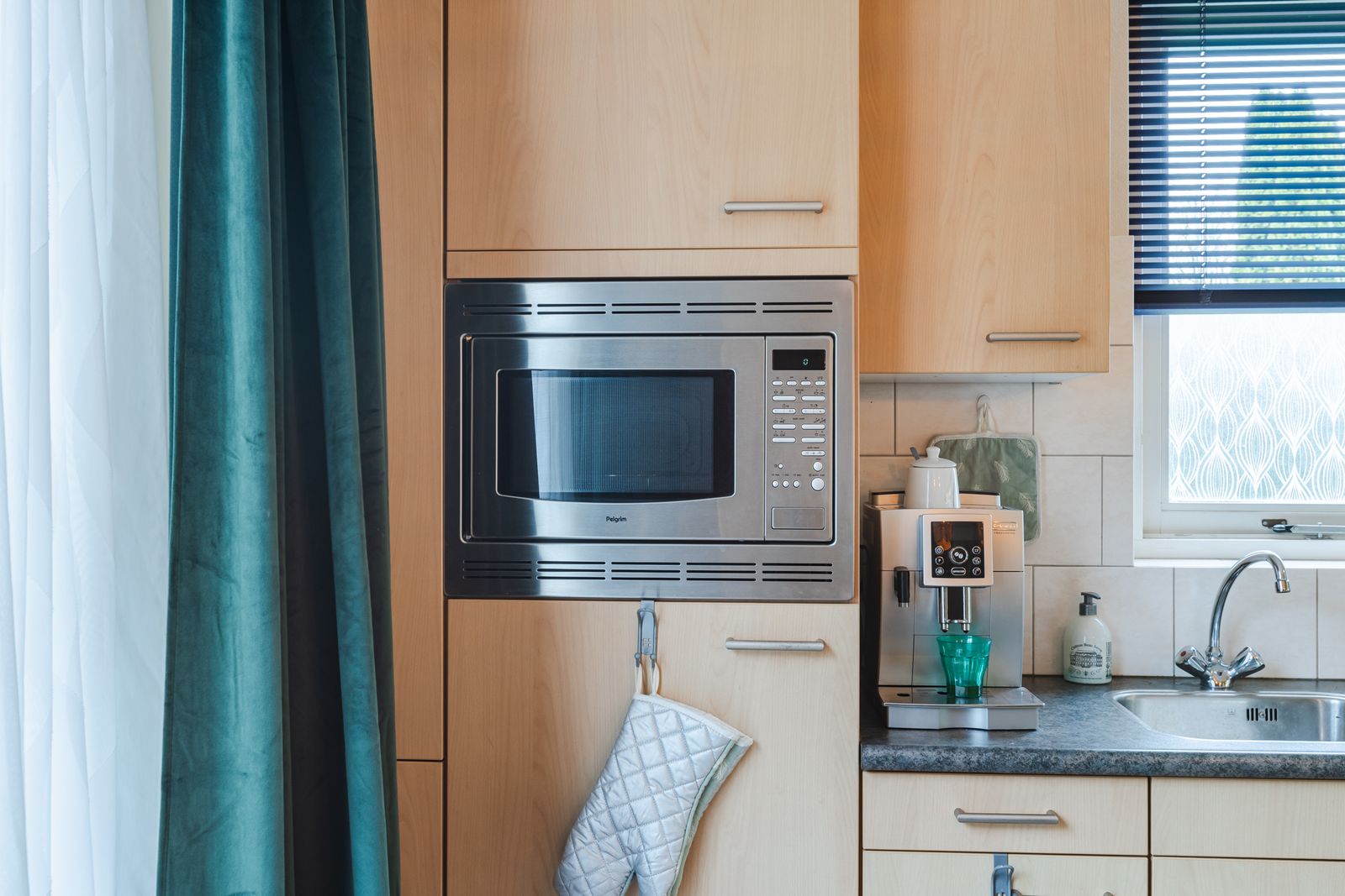De keuken beschikt over een vaatwasser, 4-pits kooktoestel, afzuigkap, combimagnetron en een plavuizenvloer, zodat u van alle comfort bent voorzien.