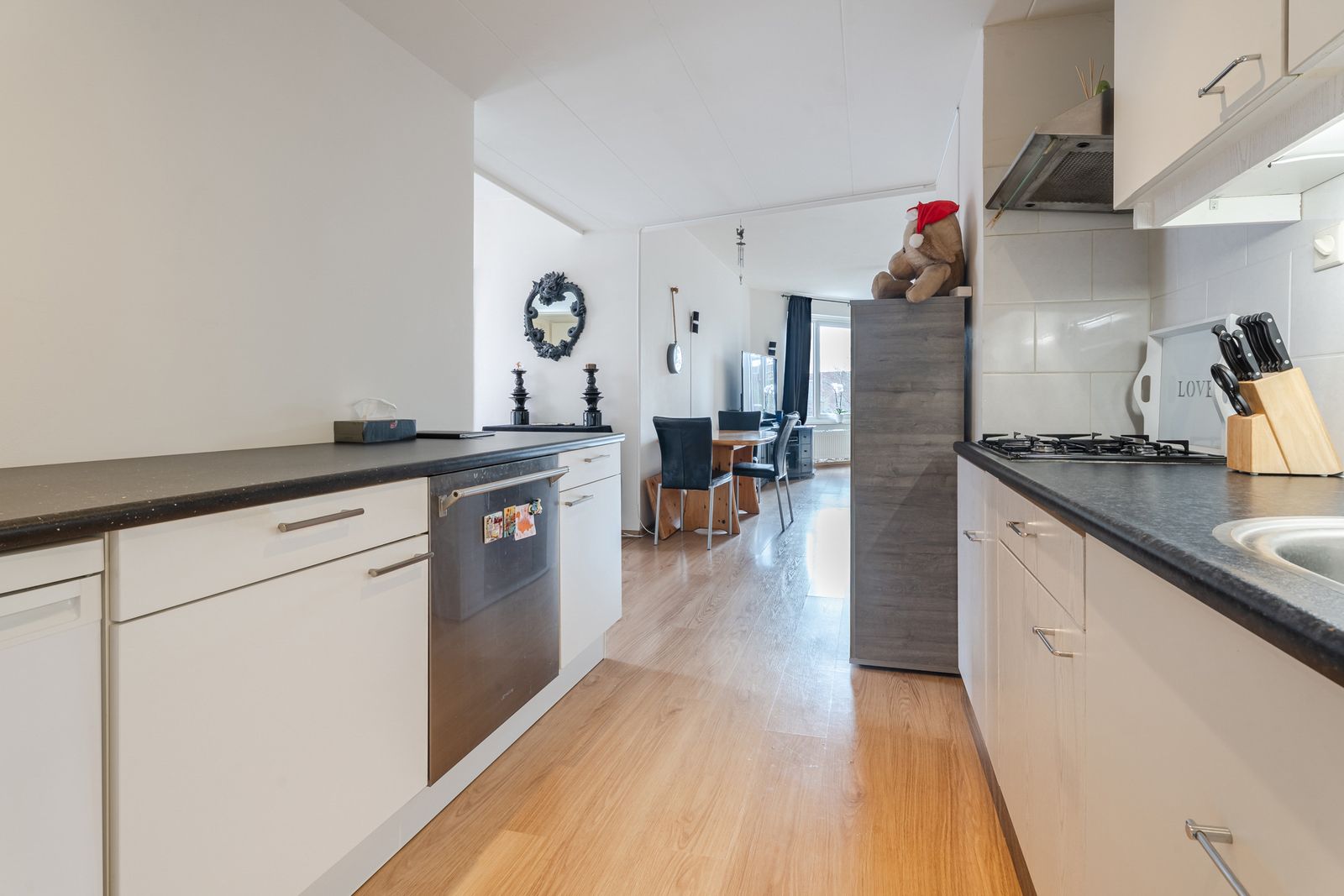 Vanuit de woonkamer is daarnaast een balkon bereikbaar, gelegen op het zuiden. Het kleine balkon dat toegankelijk is vanuit slaapkamer is gelegen op het noorden. In de overdekte parkeergarage bevindt zich een eigen parkeerplaats, waardoor parkeren nooit een probleem is. Tevens is er een privéberging in de kelder van het complex aanwezig. Kortom, dit appartement biedt alles wat je nodig hebt voor comfortabel wonen.