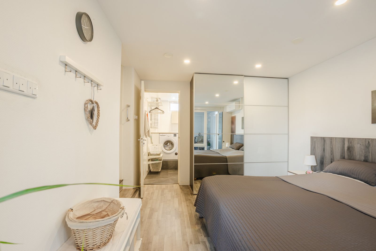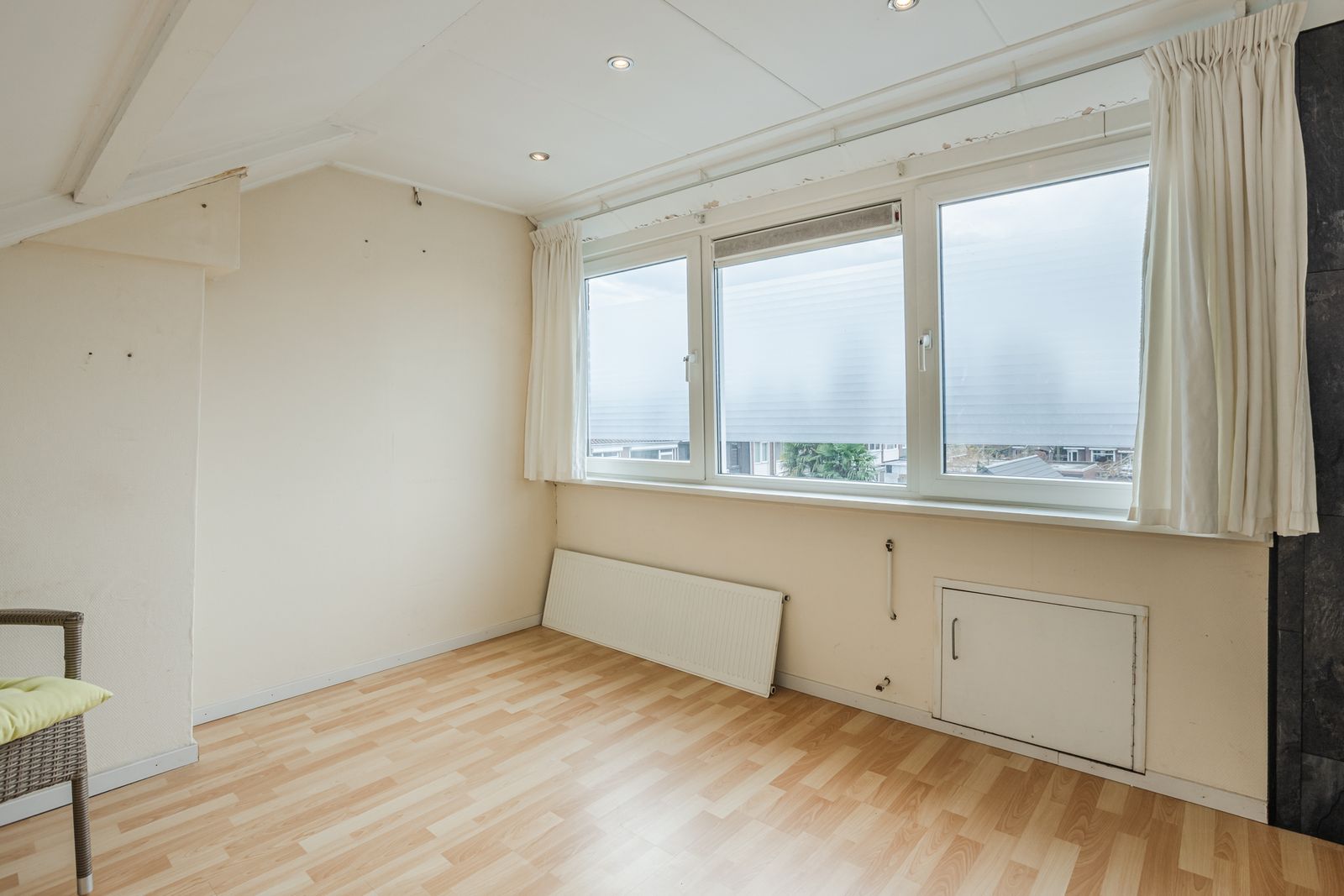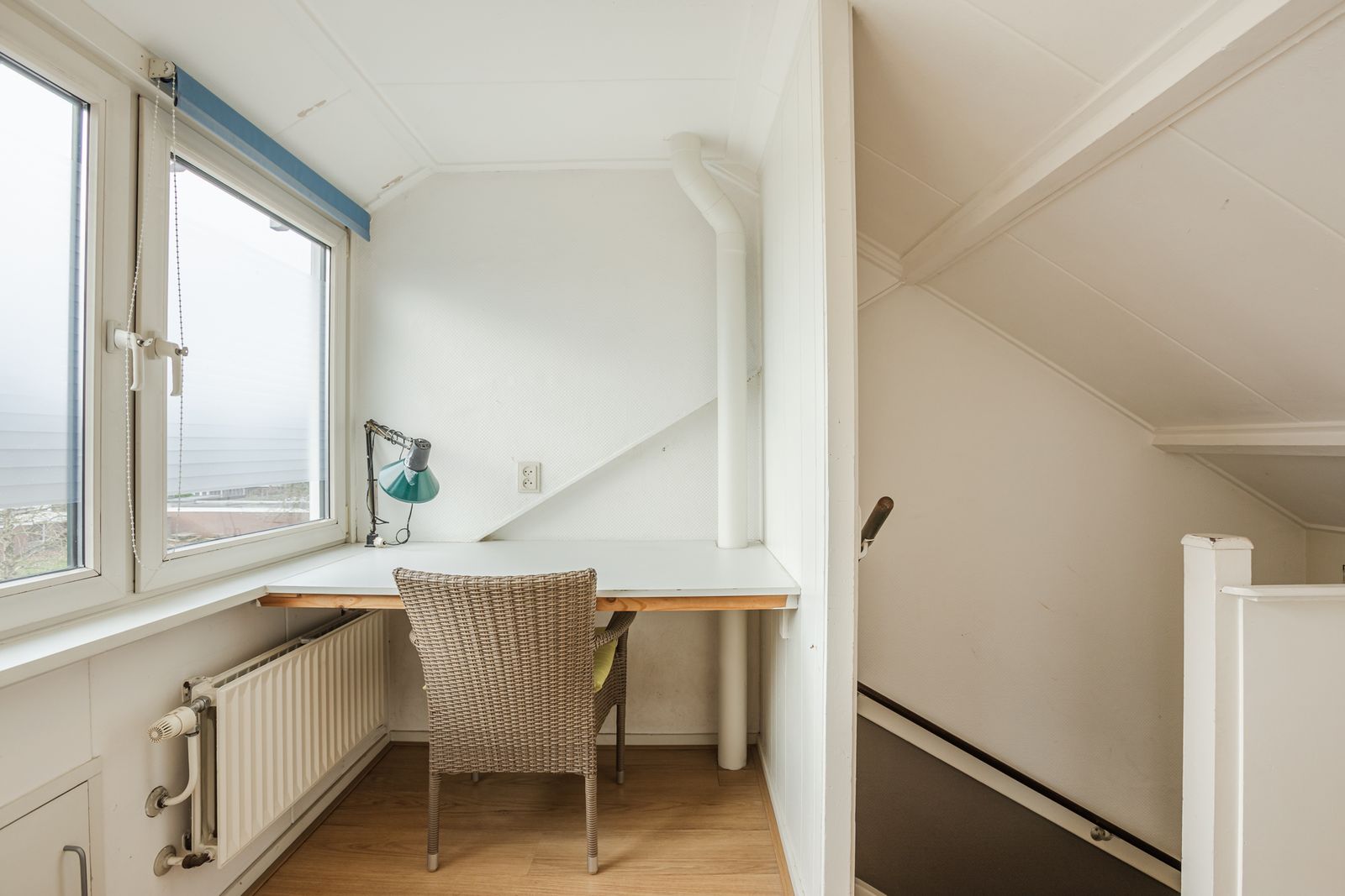 Via een vaste trap bereik je de tweede verdieping. Hier vind je een overloop en een ruime slaapkamer met wastafel. Dankzij de dakopbouw voelt deze verdieping extra ruim aan en is dit een ideale plek voor een master bedroom, tienerkamer of rustige werkruimte.