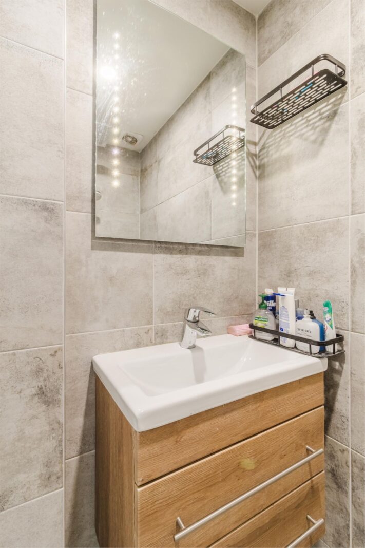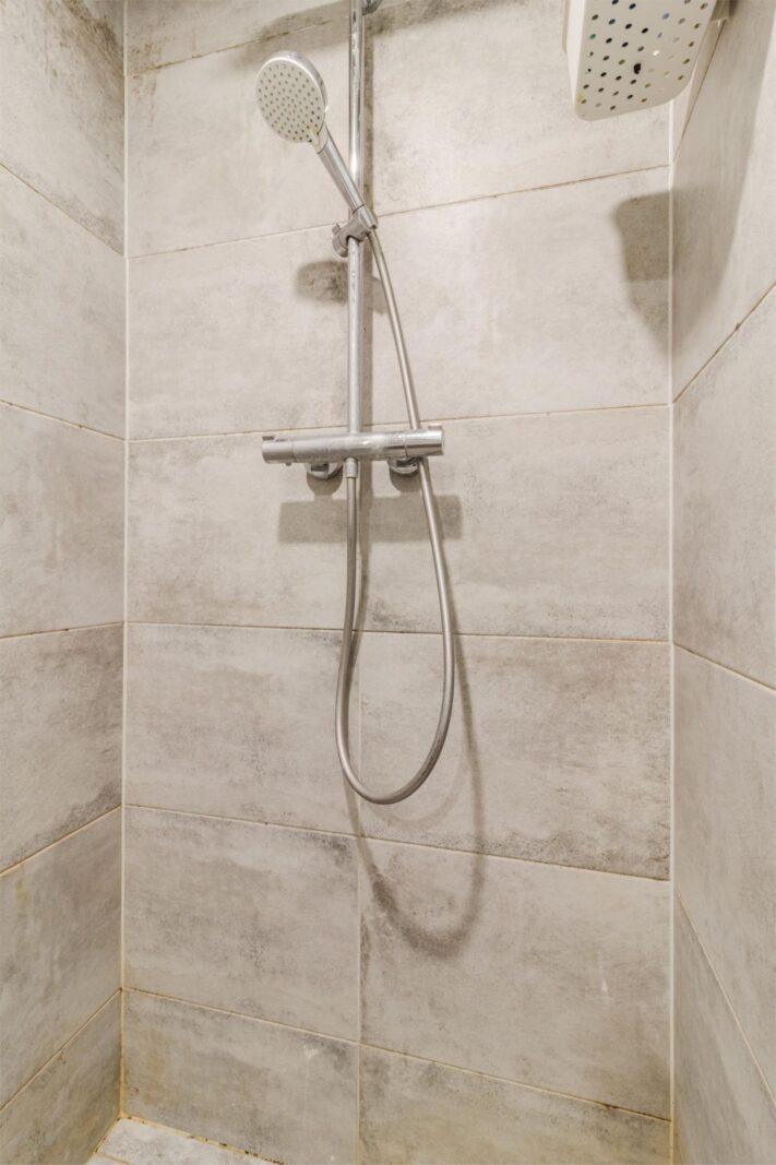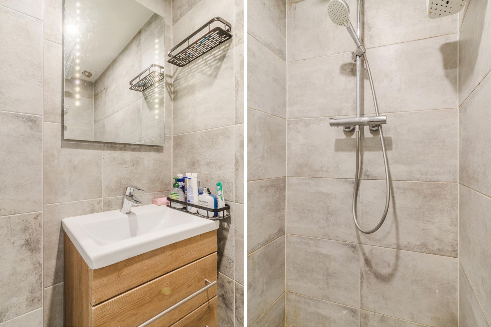 De keuken is voorzien van inbouwapparatuur (ijskast, magnetronoven, vaatwasser), gaskookplaat en moderne afzuigkap. Aan de keuken grenst ook een klein balkonnetje met zicht op de voorzijde. Hier komt de zon vanaf de tweede helft van de middag tot en met de avond.