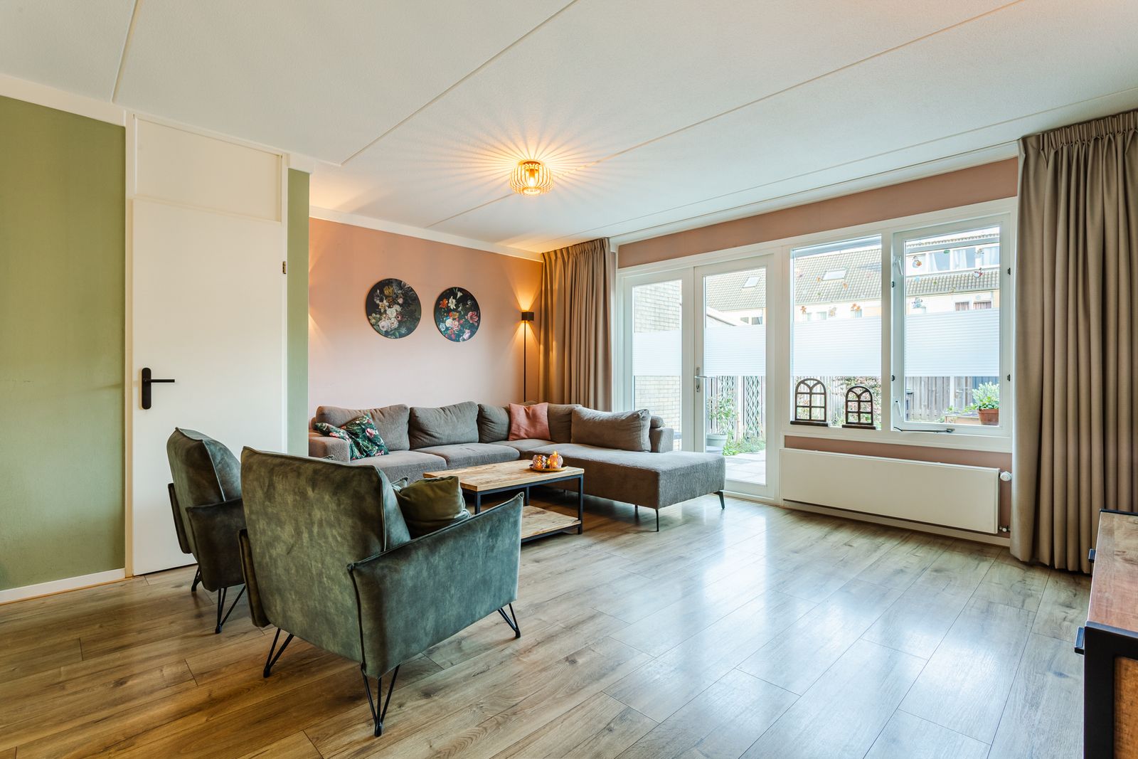 ''Wij zijn voor deze woning gevallen in de zomer van 2020. Omdat de bewoonster pas in maart 2021 in haar gekochte woning kon duurde het nog even en dat vonden wij het waard. Het is een fijne lichte en ruime woning. In de jaren dat wij hier woonde hebben wij het aangepast de buitenkant is geheel gerenoveerd en geschilderd, ook binnen hebben wij het opgeknapt tot een fijn huis waar we ons thuis voelen. De tuin is ruim en begin dit jaar opnieuw ingedeeld met onder andere mooie beplanting en met een ruime bestaande berging en een tuinhuisje die achterblijft. De voortuin is ook geheel op nieuw aangelegd afgelopen jaren met beplanting die in de zomer mooi in bloei staat!