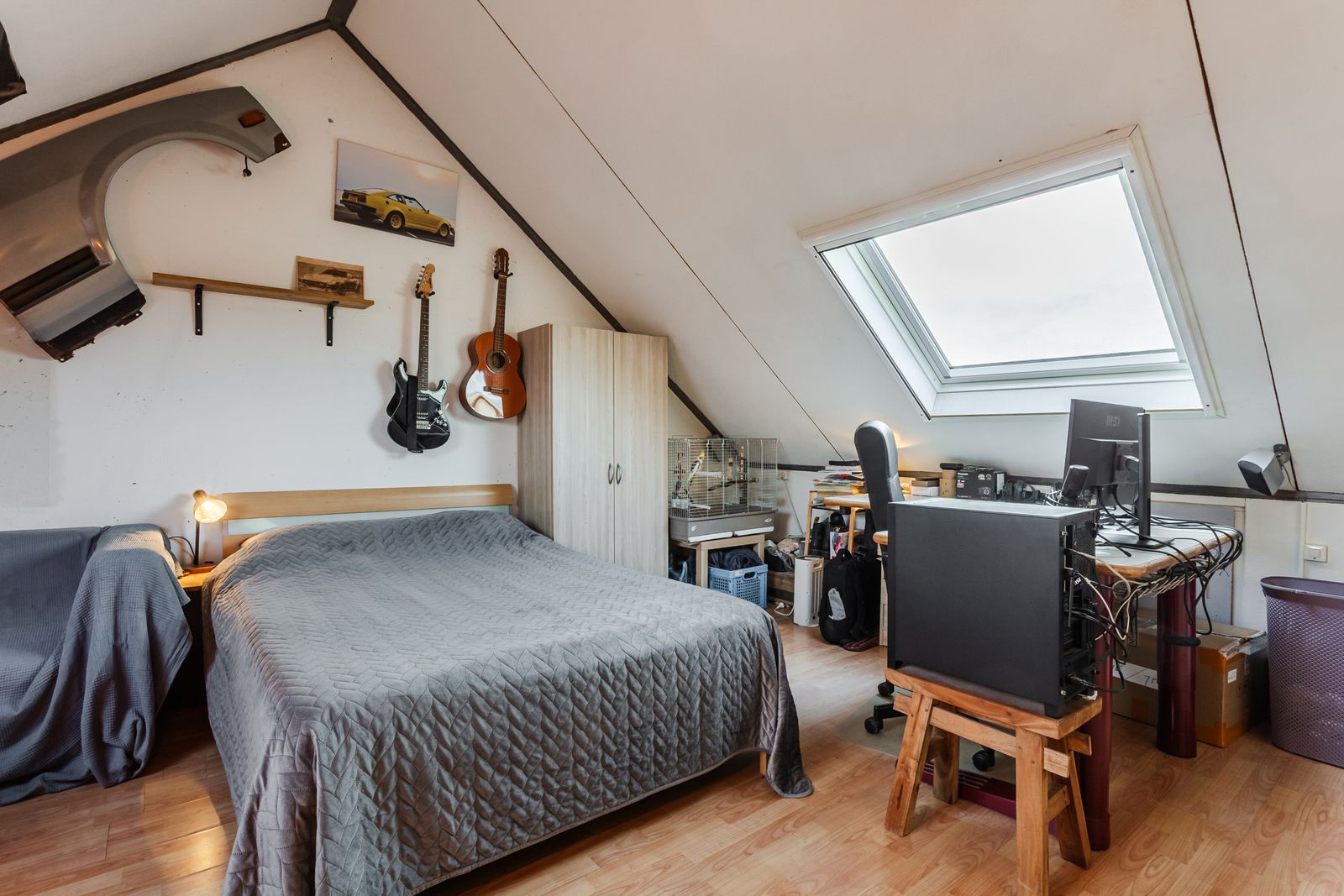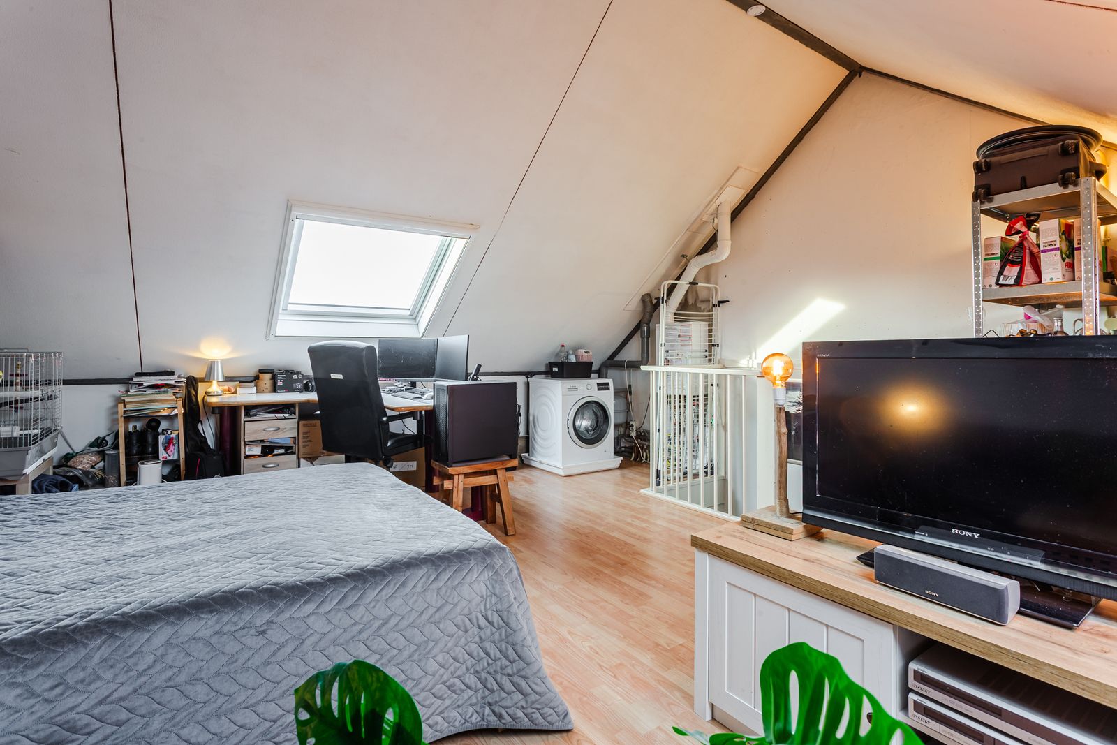 Op de tweede etage treft u de zolder en daar vindt u de aansluiting voor een wasmachine en droger.