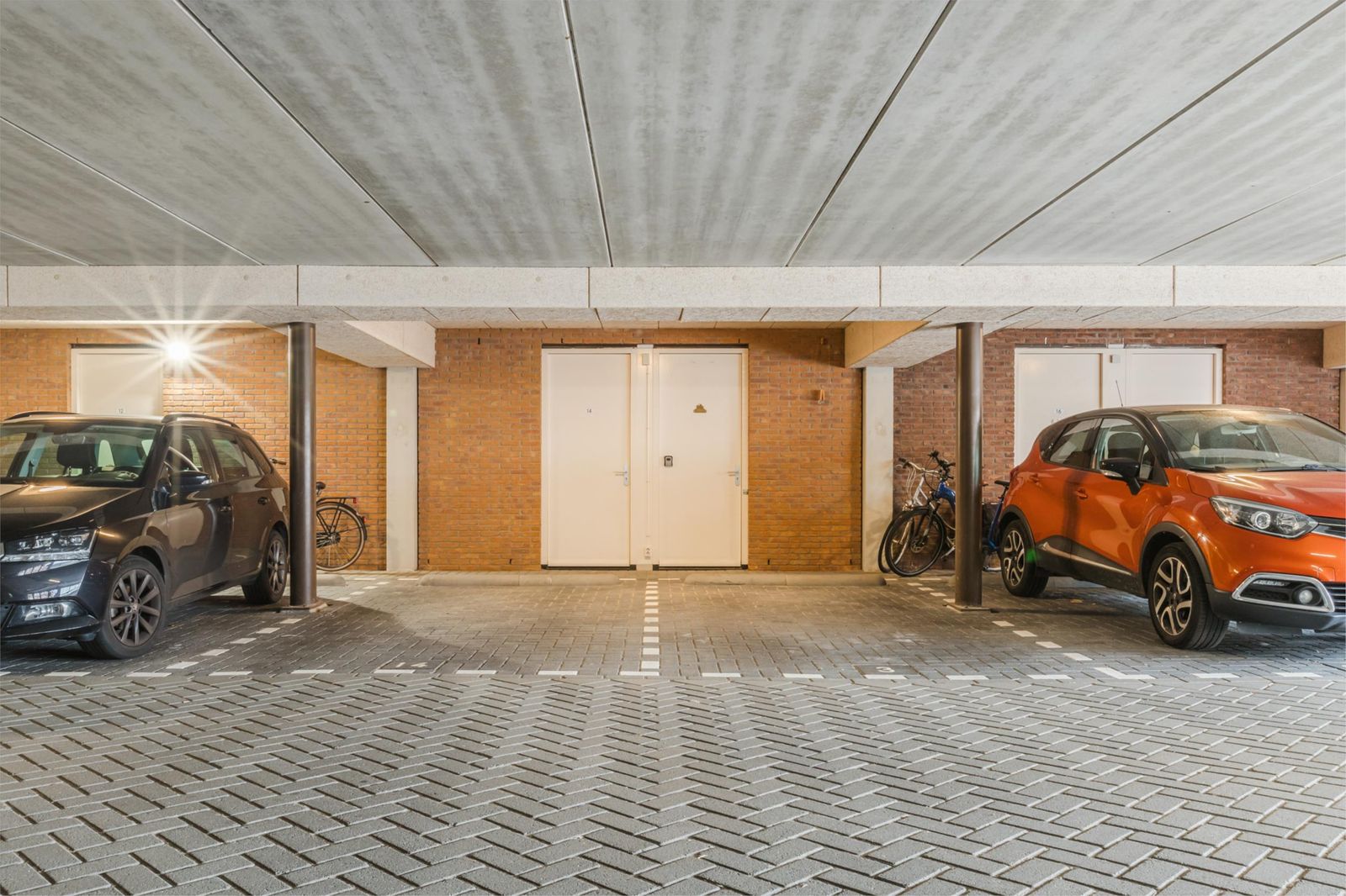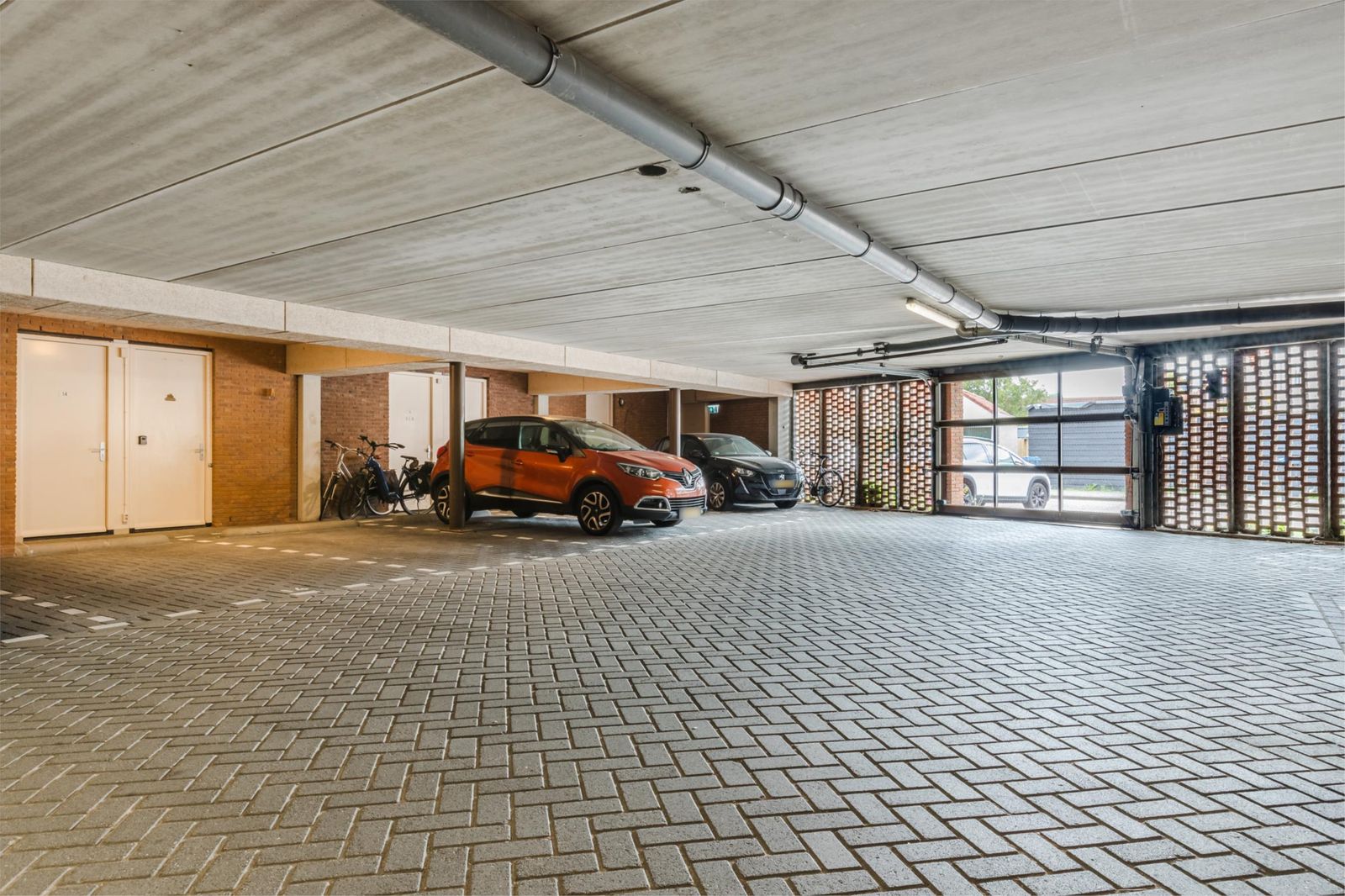 Hier bevindt zich tevens de toegang tot de parkeergarage met eigen parkeerplaats grenzend aan de achterdeur. Nooit meer zoeken naar een parkeerplaats, krabben en droog je boodschappen in huis halen!