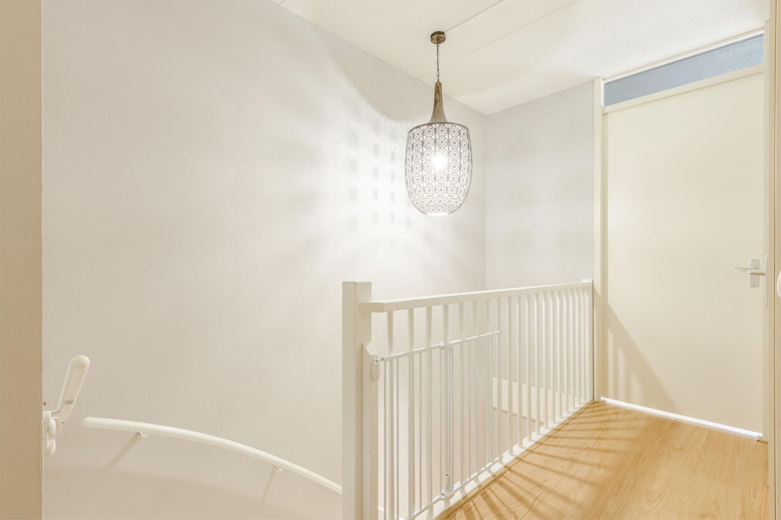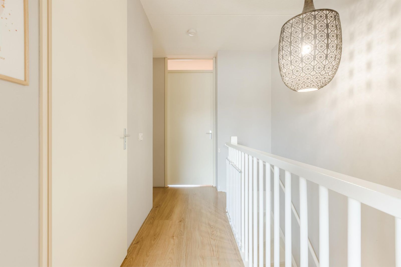Overloop met toegang tot 3 royale slaapkamers. De masterbedroom beschikt over een grote inbouwkast over de volle breedte. Alle slaapkamers zijn voorzien van horren en elektrische rolluiken op zonne- energie (2024).