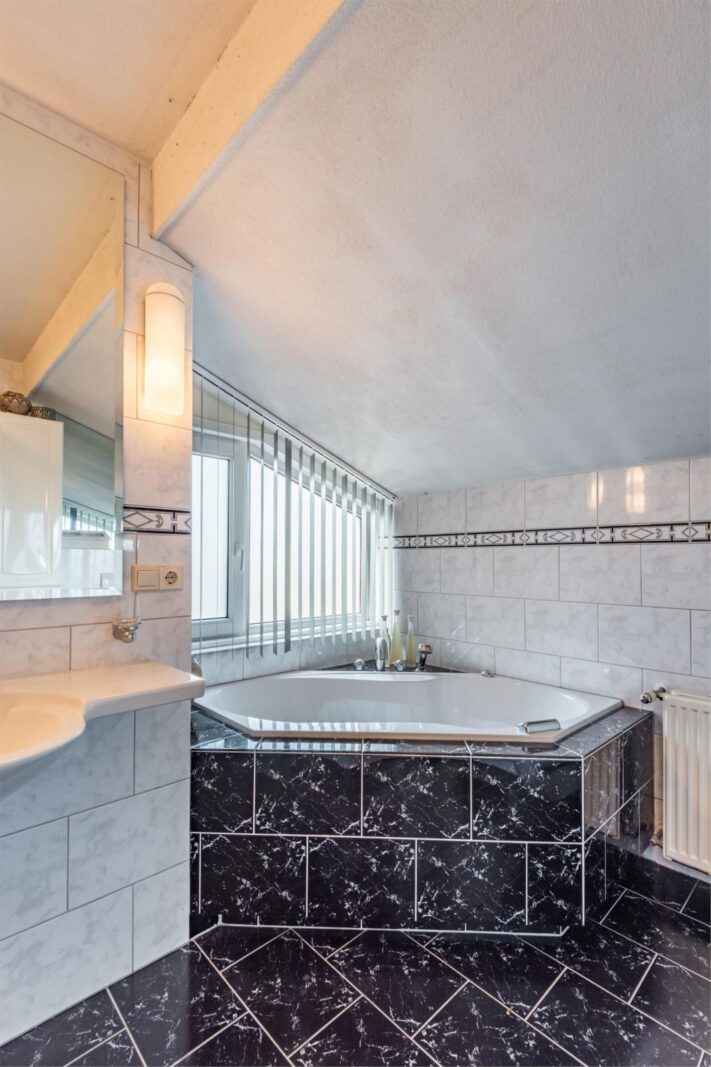 Je komt binnen via een tochtportaal met garderobe. De ruime L-vormige woonkamer met open haard en open keuken heeft een fijne lichtinval en zicht op de tuin. Op de eerste verdieping bevinden zich drie slaapkamers en een badkamer met ligbad, douche en toilet. De zolderverdieping beschikt over een vierde kamer en extra bergruimte. De aangebouwde garage is vanuit de voortuin bereikbaar.
