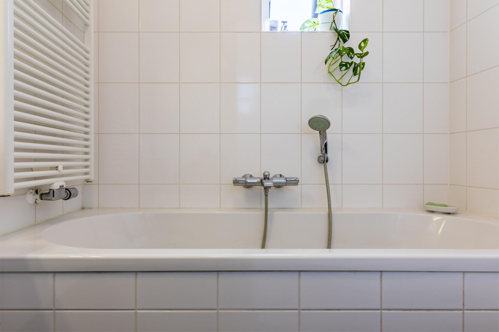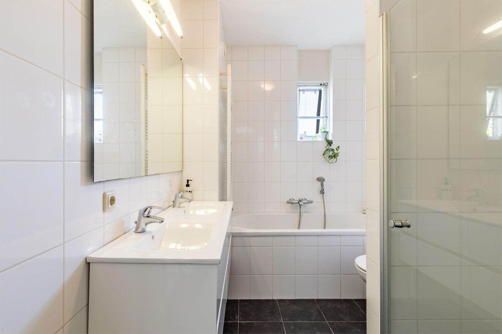 Op de eerste verdieping vind je drie fijne slaapkamers. Ze hebben allemaal laminaatvloer. De badkamer is helemaal af met een dubbele wastafel, inloopdouche met stortdouche en een ligbad.