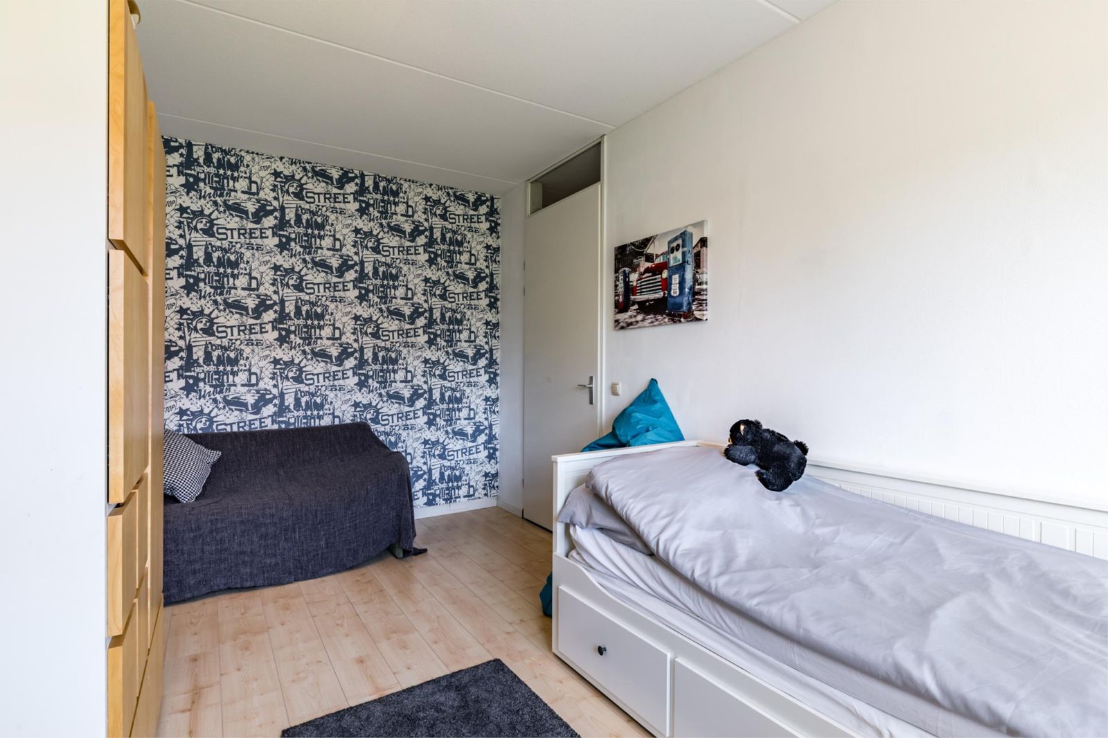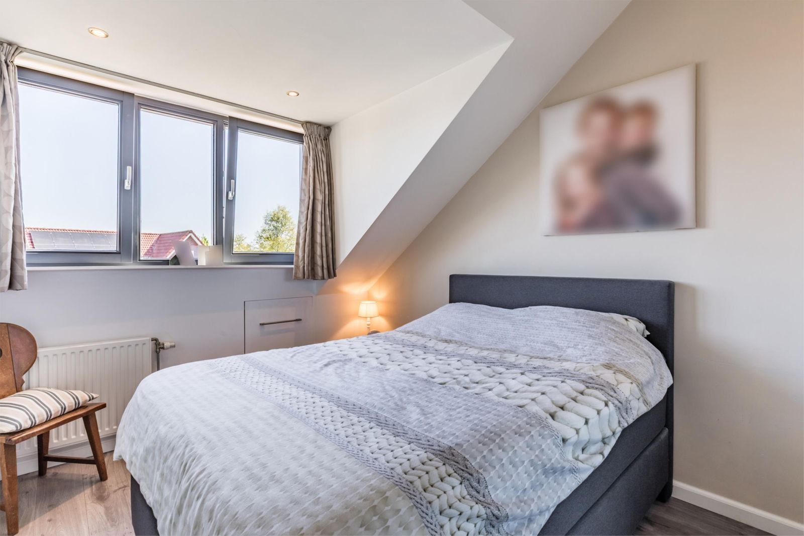Boven zijn er nog 2 slaapkamers waarvan 1 met dakkapel en een met een dakraam met verduistering. Daarnaast is er een aparte ruimte waar de wasmachine en droger kunnen staan.