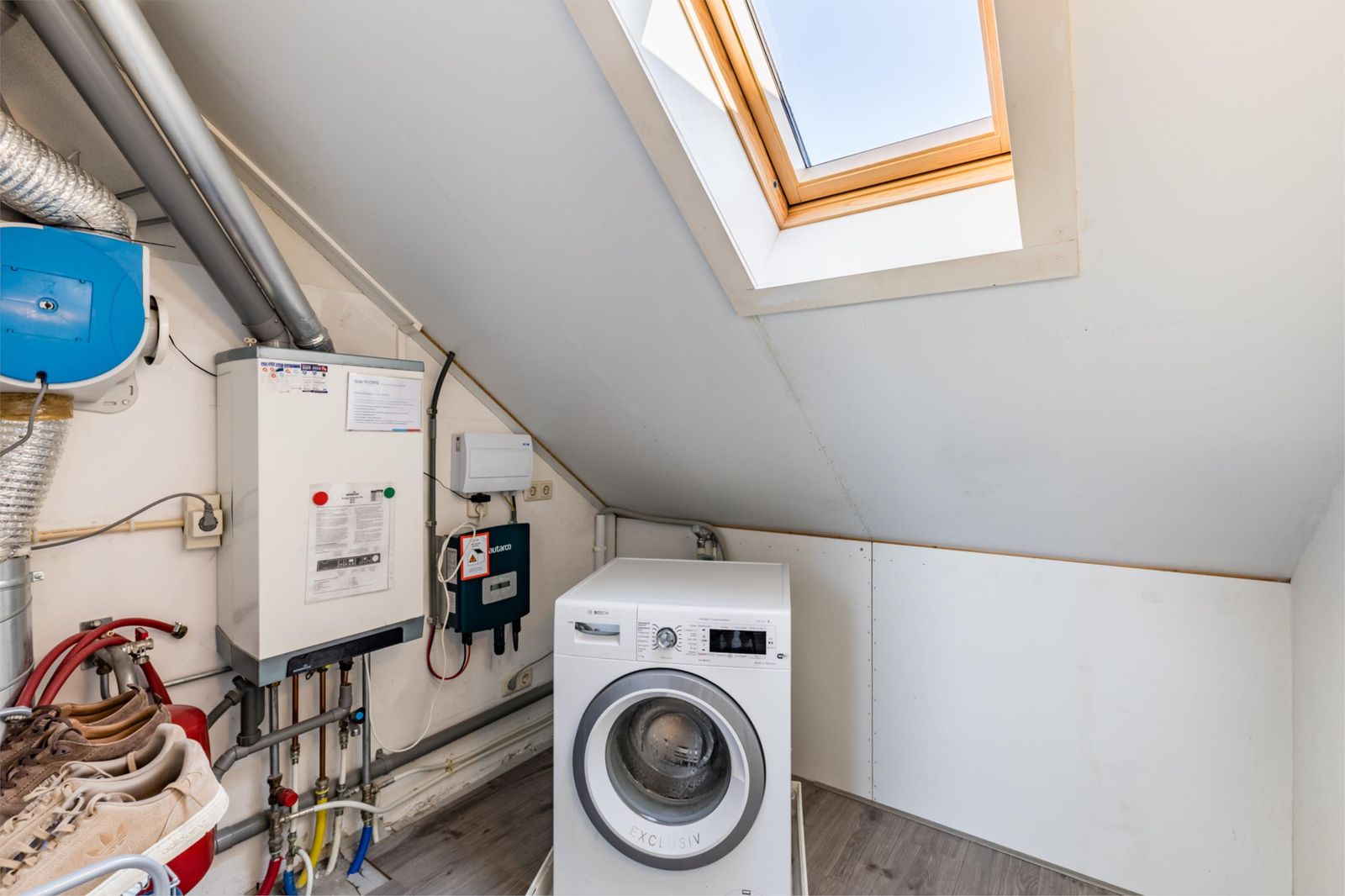 Hier staat ook de CV ketel en de omvormers van de de zonnepanelen mooi bij elkaar.