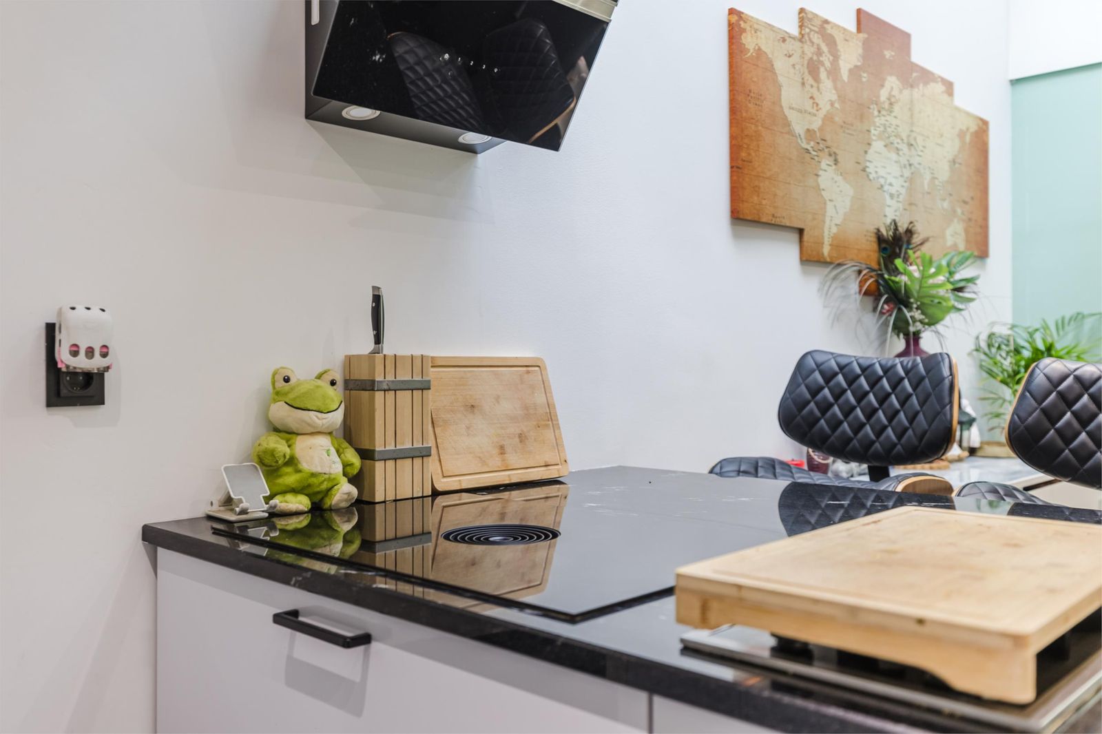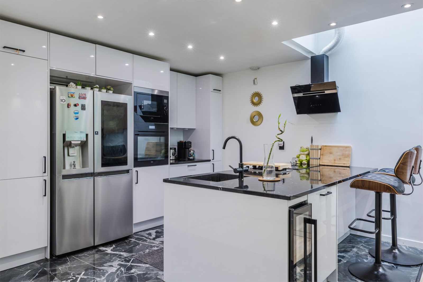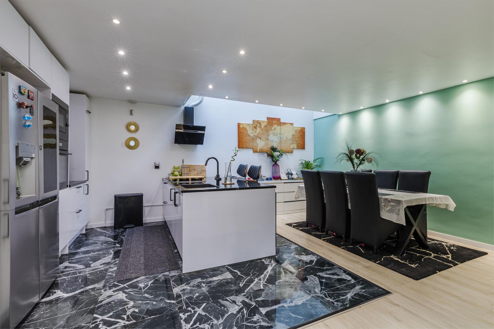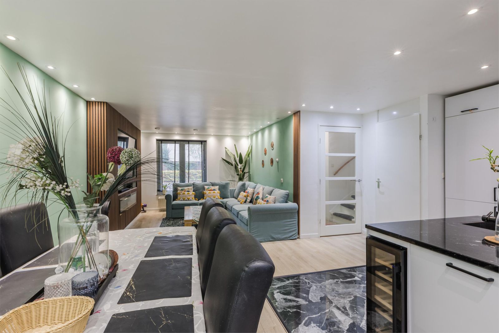 De open keuken (volledig vernieuwd in 2022) is een echte eyecatcher – uitgerust met een vaatwasser, Amerikaanse koelkast, wijnkoeler, inbouwoven en magnetron. Vanuit de keuken is het zonnige terras op het zuiden bereikbaar – ideaal om te ontspannen of gasten te ontvangen – met direct uitzicht op de kinderspeelplaats achter de woning.