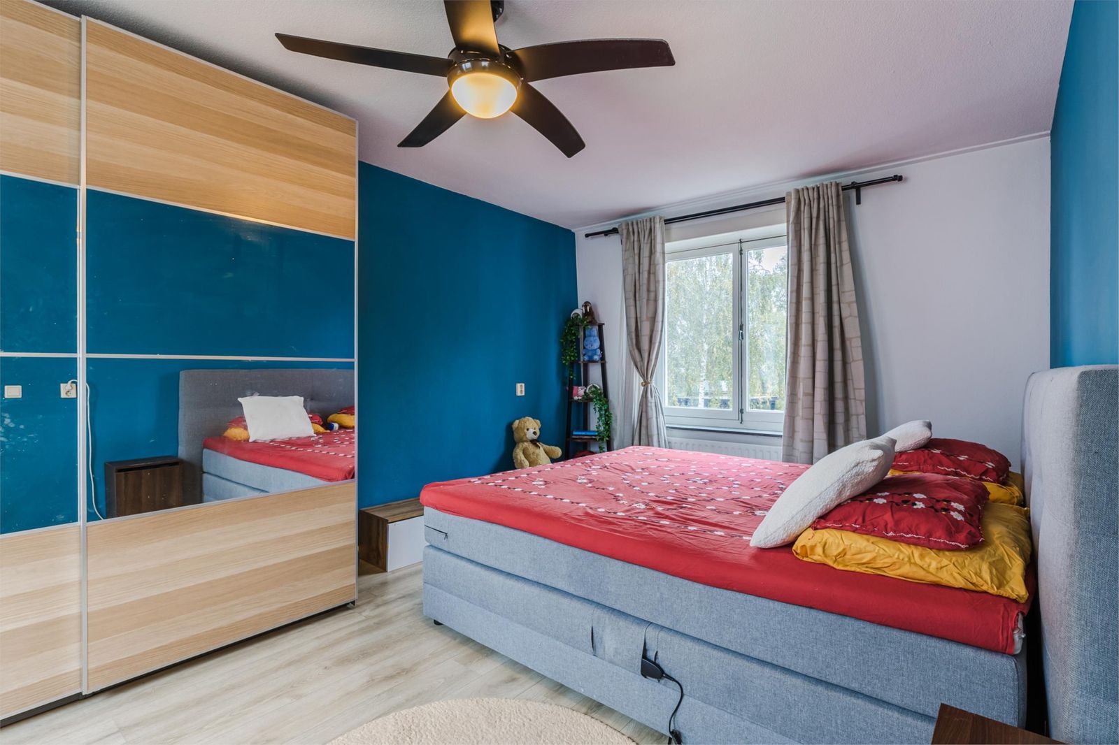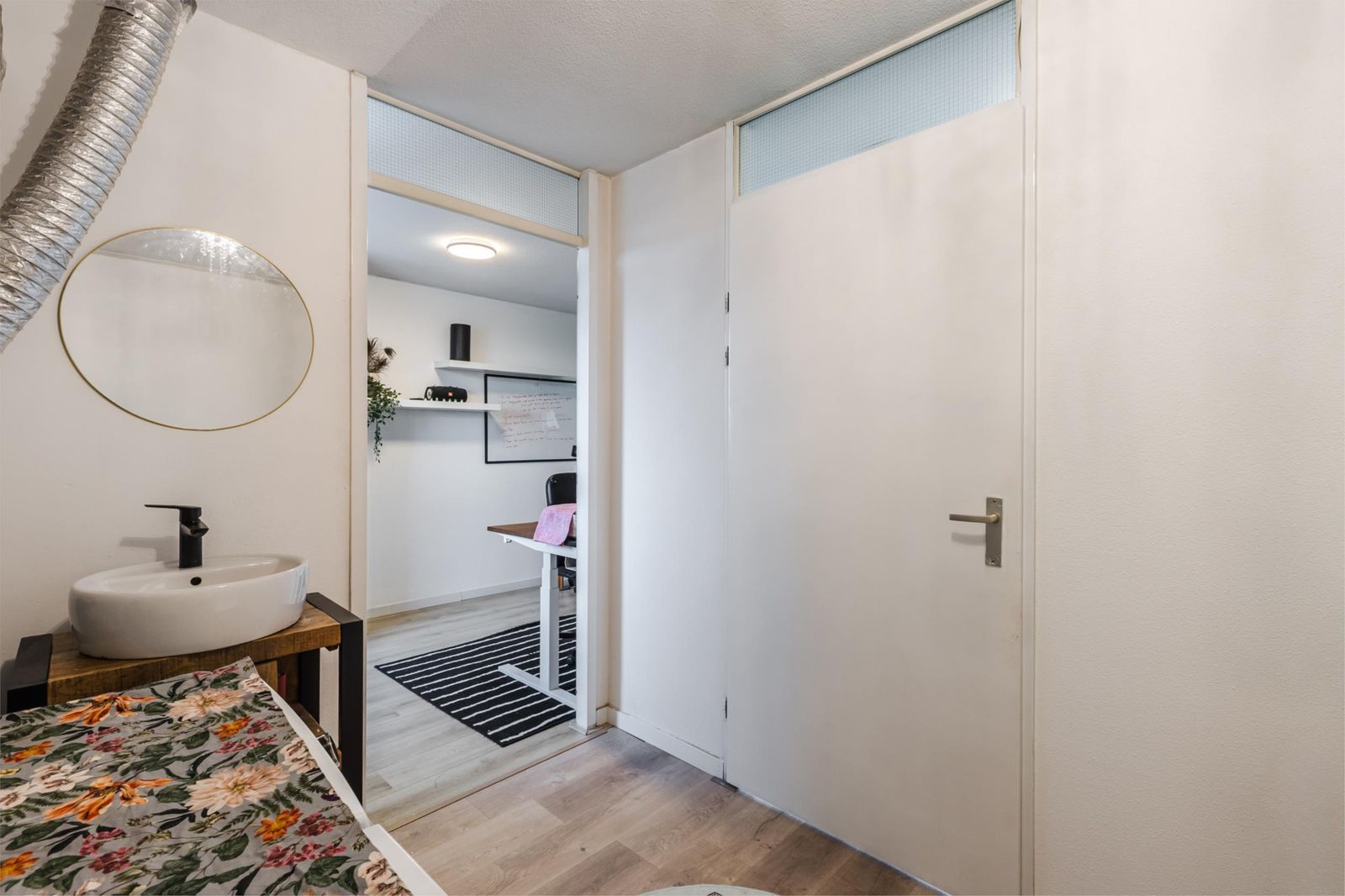 Drie comfortabele slaapkamers en een gemoderniseerde badkamer, recent vernieuwd met een nieuwe wastafel en spiegelset (2025).