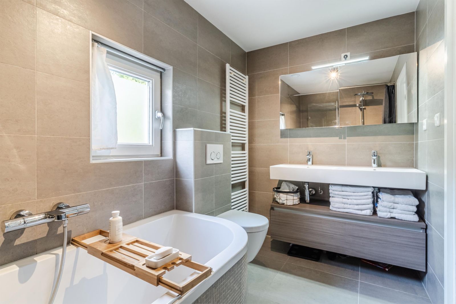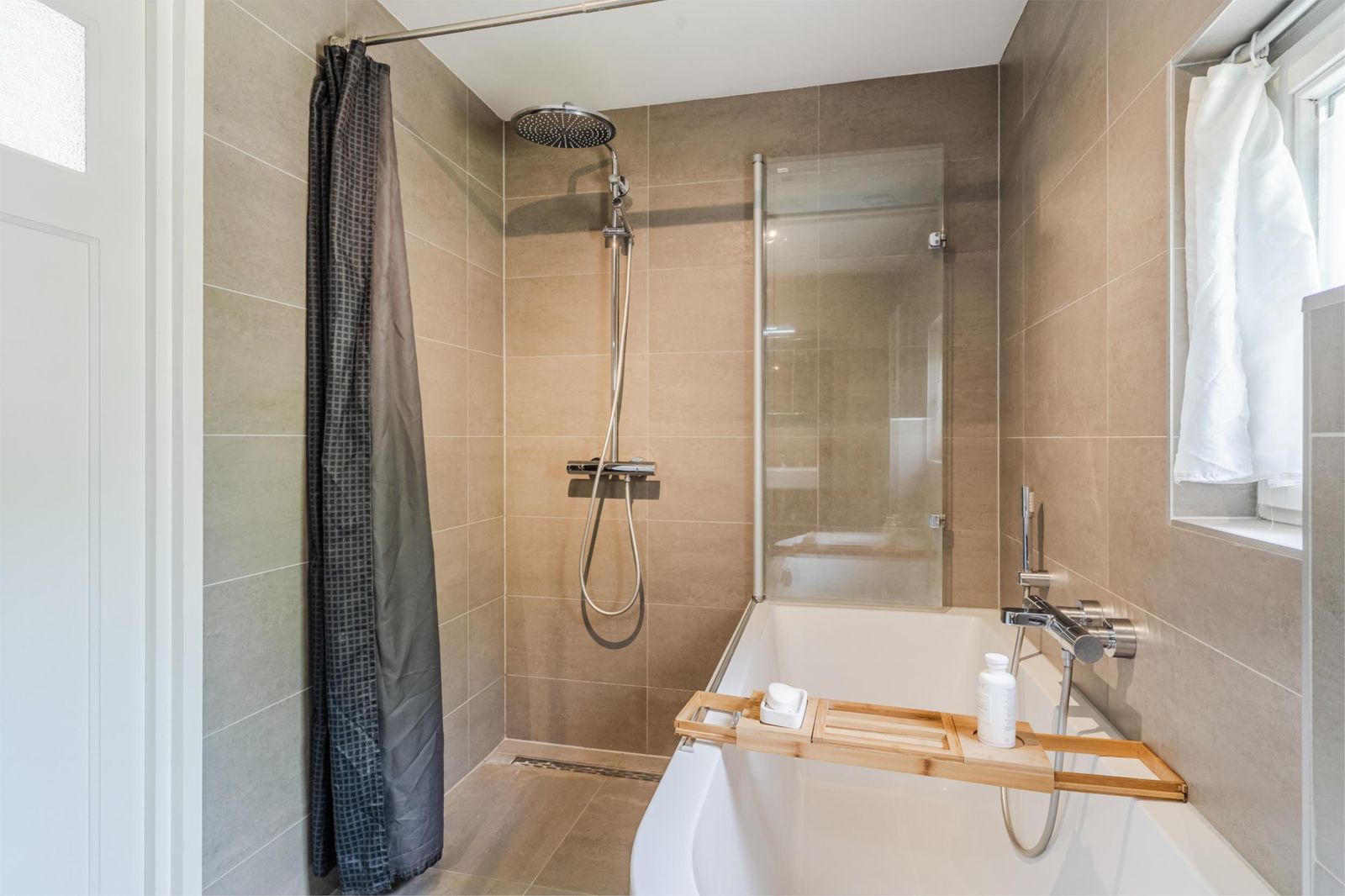 Op de 1e verdieping zijn er drie comfortabele slaapkamers, een complete badkamer met dubbele wastafel, ligbad, douche en toilet. Op de zolder – bereikbaar via een vlizotrap – is nog extra bergruimte beschikbaar. Het ruime dakterras biedt niet alleen een fijne buitenplek, maar ook uitbreidingsmogelijkheden voor bijvoorbeeld een extra kamer of kantoorruimte.