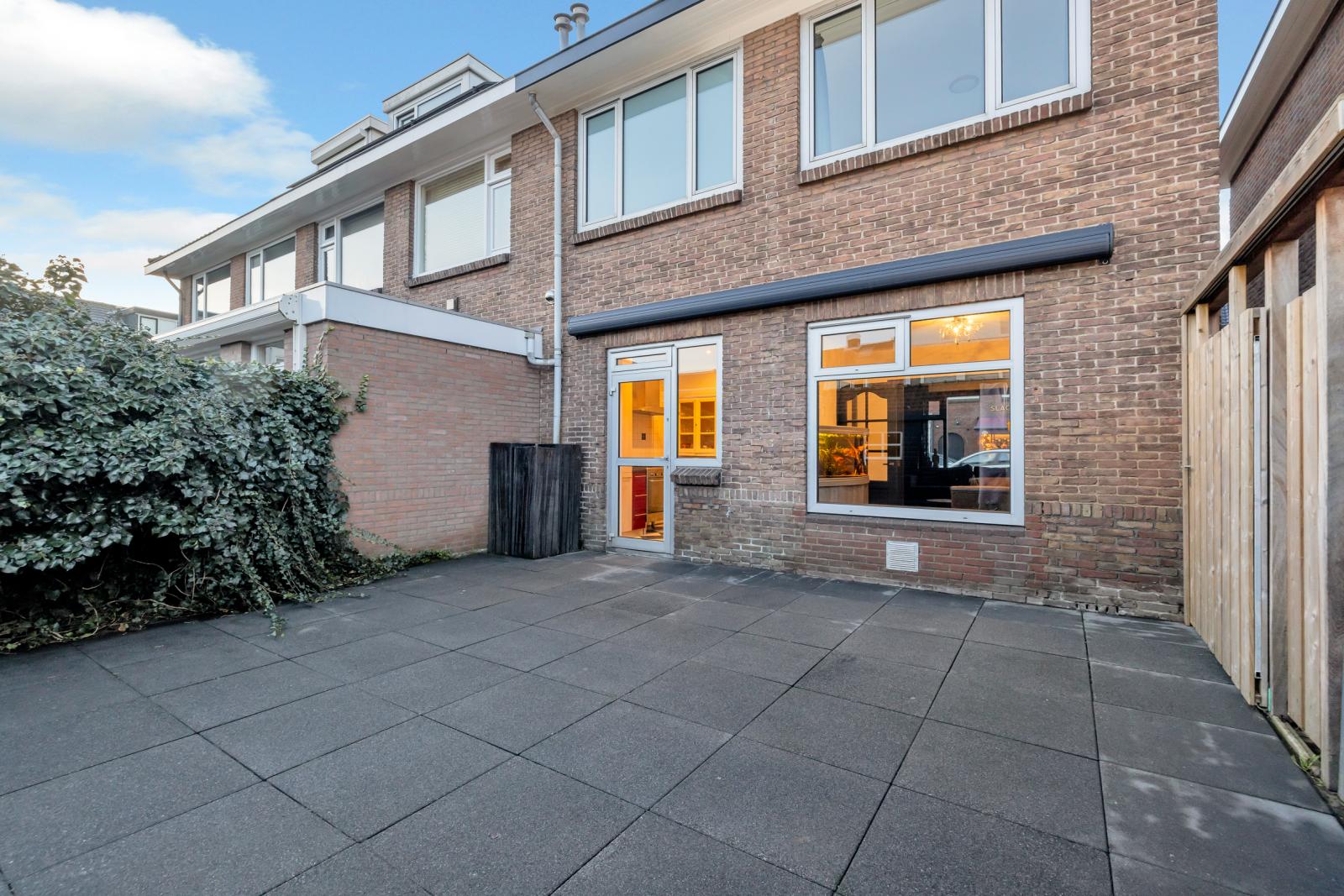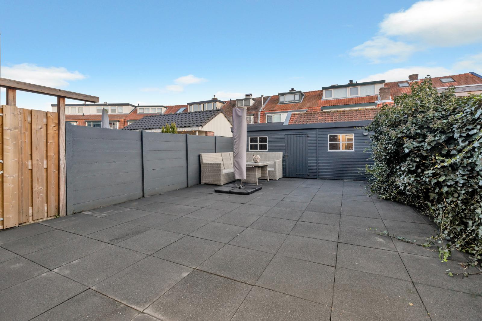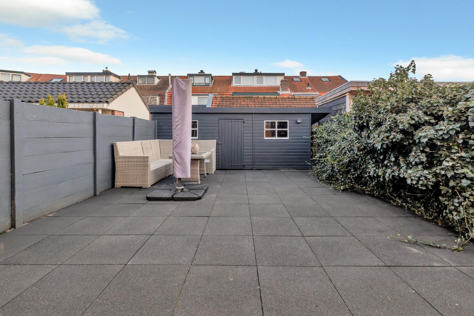 De achtertuin is gelegen op het zuidoosten en biedt gedurende de zomermaanden zon van circa 08:00 tot 18:30 uur. Via de steeg tussen de eindwoningen bereikt u de tuin via een brede poortdeur aan de zijkant, geschikt voor bijvoorbeeld motoren of fietsen. In de houten berging is voldoende ruimte voor opslag en hobby of kluswerkzaamheden.