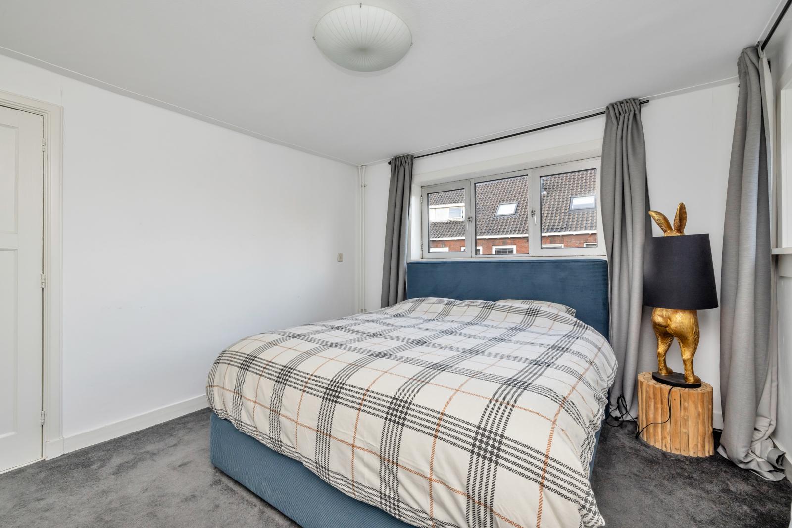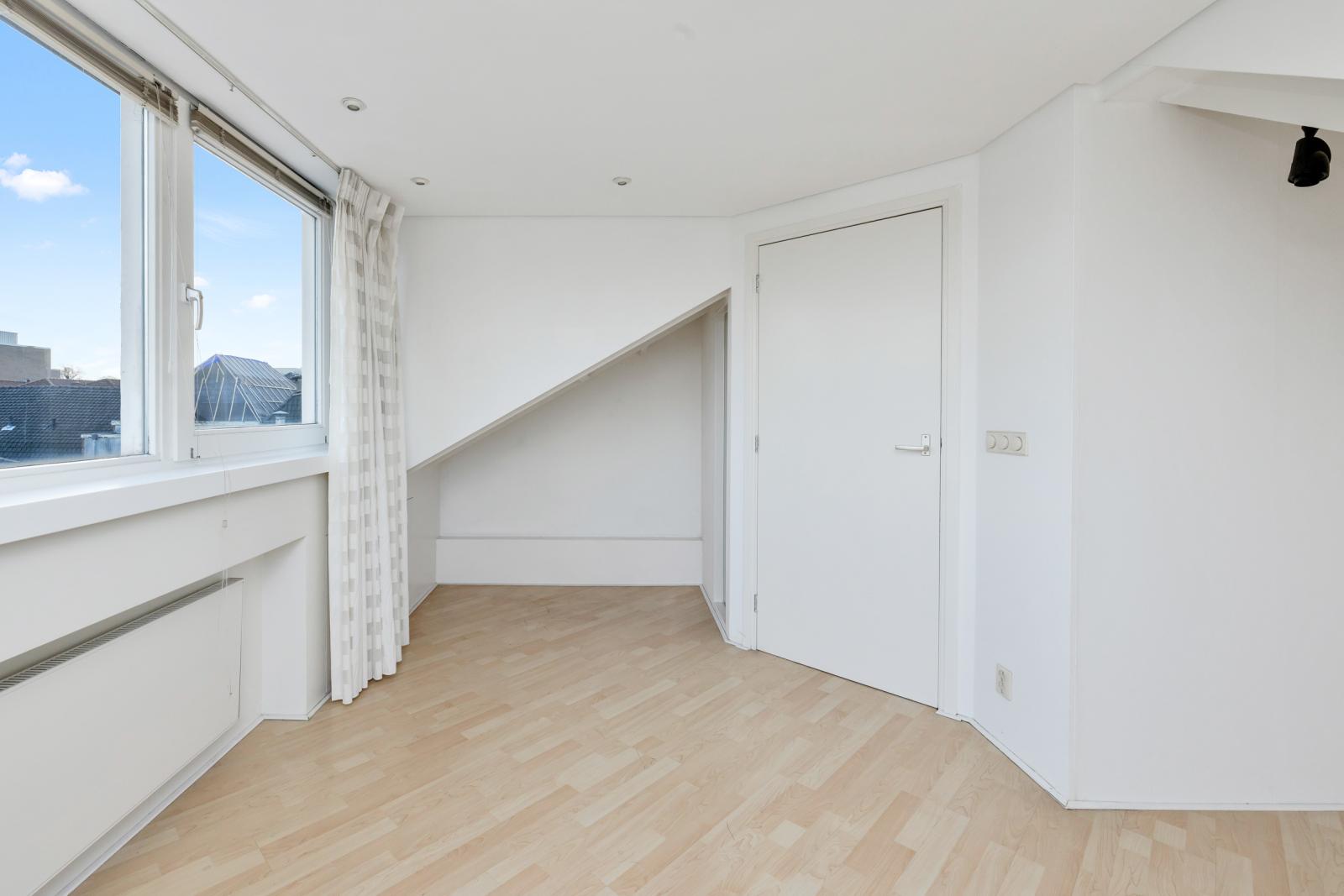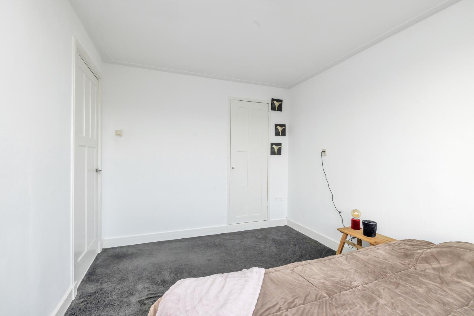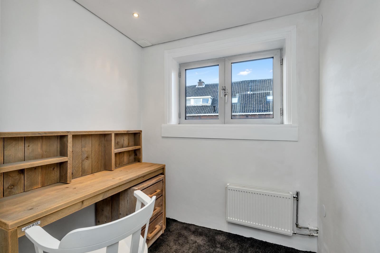 Via een vaste trap bereikt u de tweede verdieping. Op de overloop bevinden zich de opstelling voor wasmachine en droger en de cv ketel. De ruime slaapkamer is vergroot door een hoekdakkapel, wat zorgt voor extra licht en ruimte. Het bitumen van de dakkapel is recent vernieuwd. Daarnaast zijn er praktische knieschotten aanwezig voor extra bergruimte.